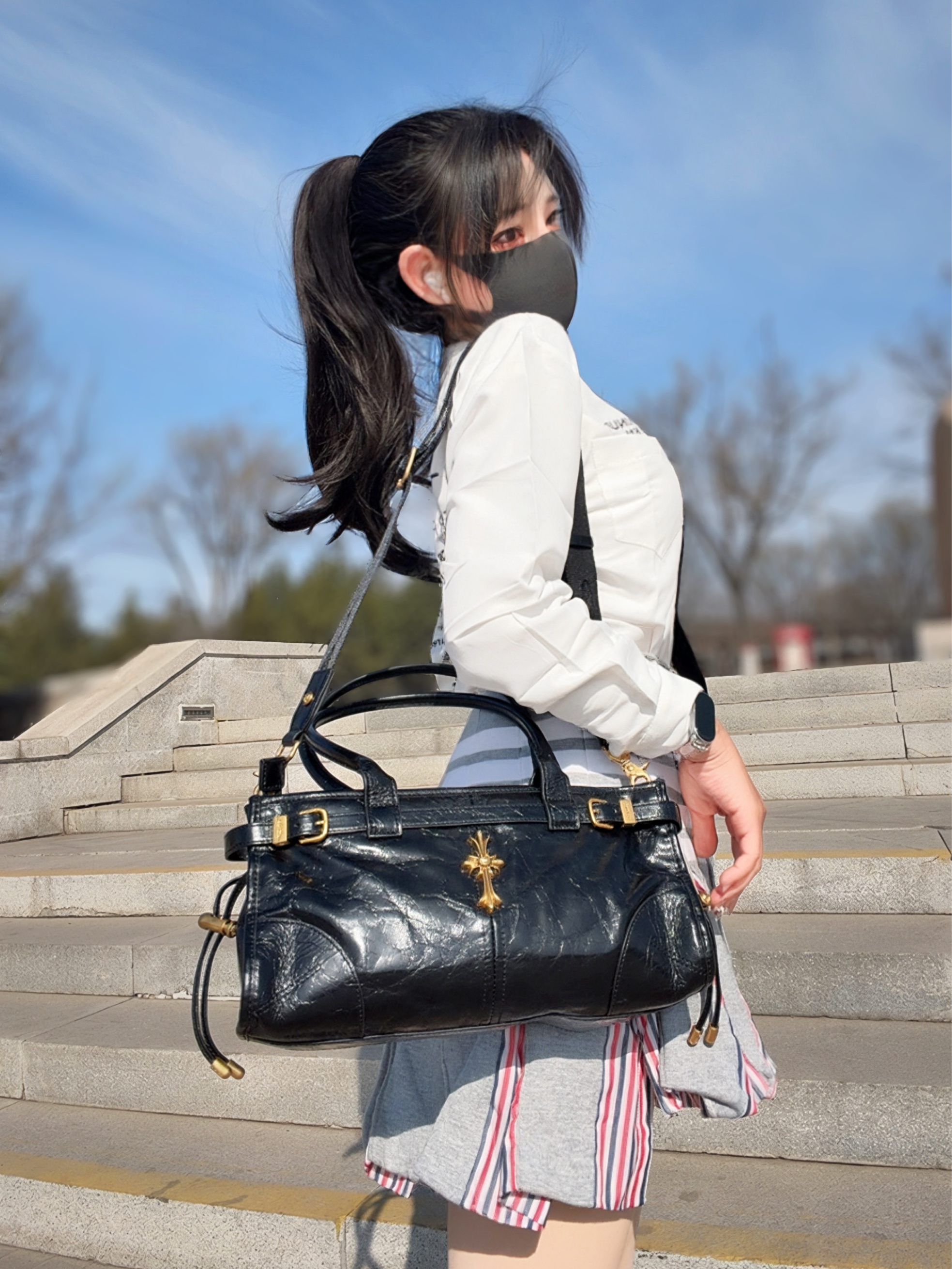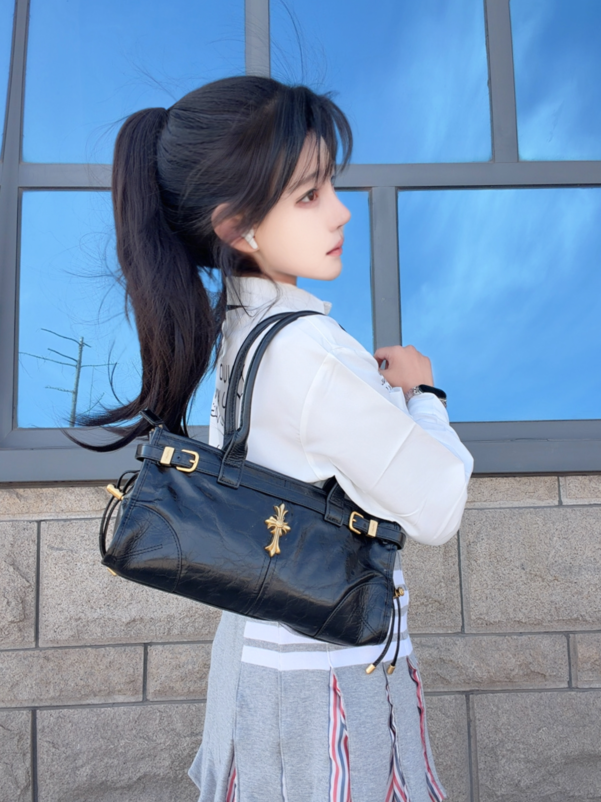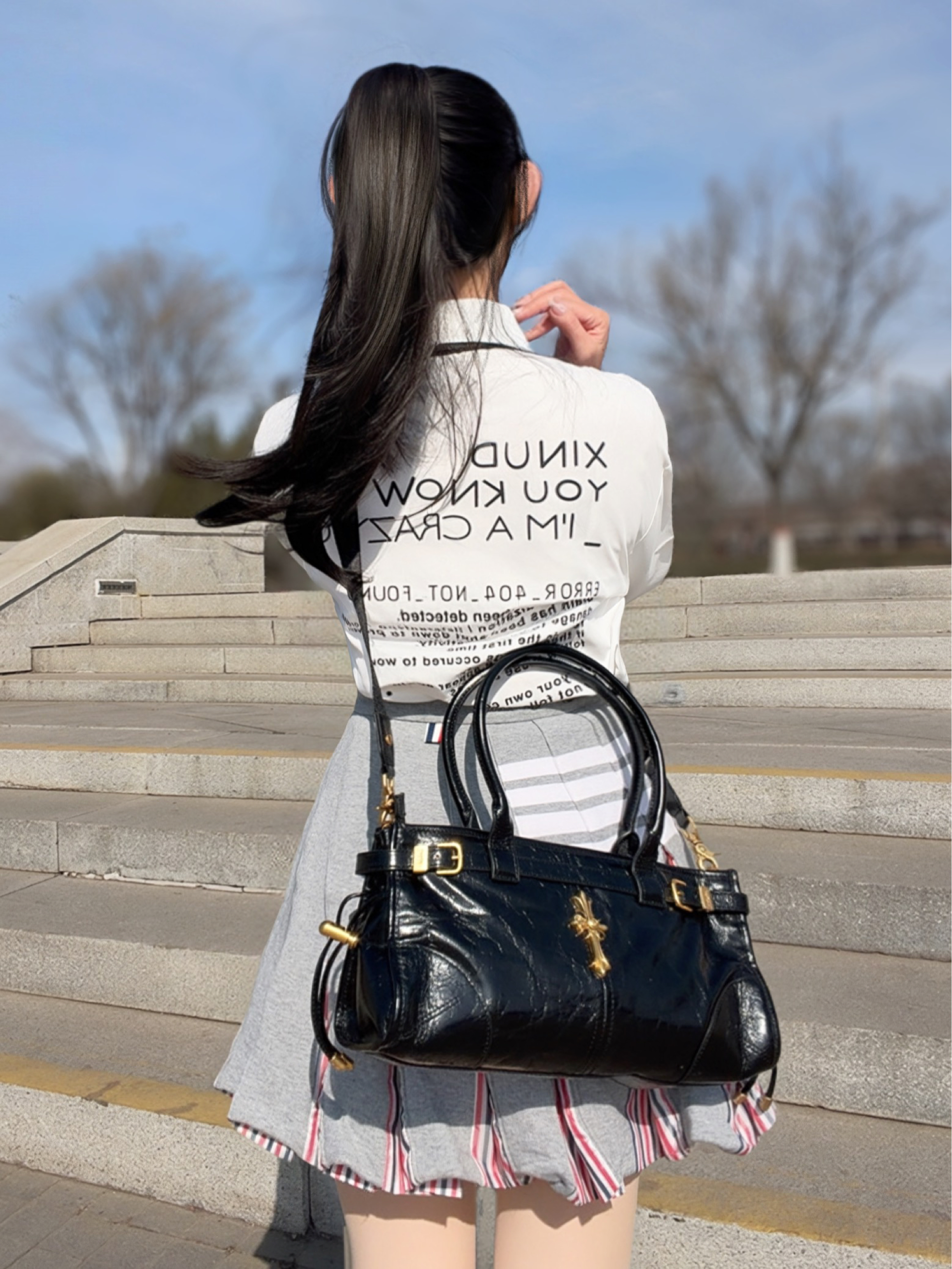 *今日设定🪪: 假期出门来试试简单又大气的配色吧~ 黑白灰自带氛围感,随便一拍就很好看🥰 白衬衫果然是纯欲天花板,下装配条灰色百褶裙,再挎上一只黑色牛皮的托特包~ 黑白灰yyds