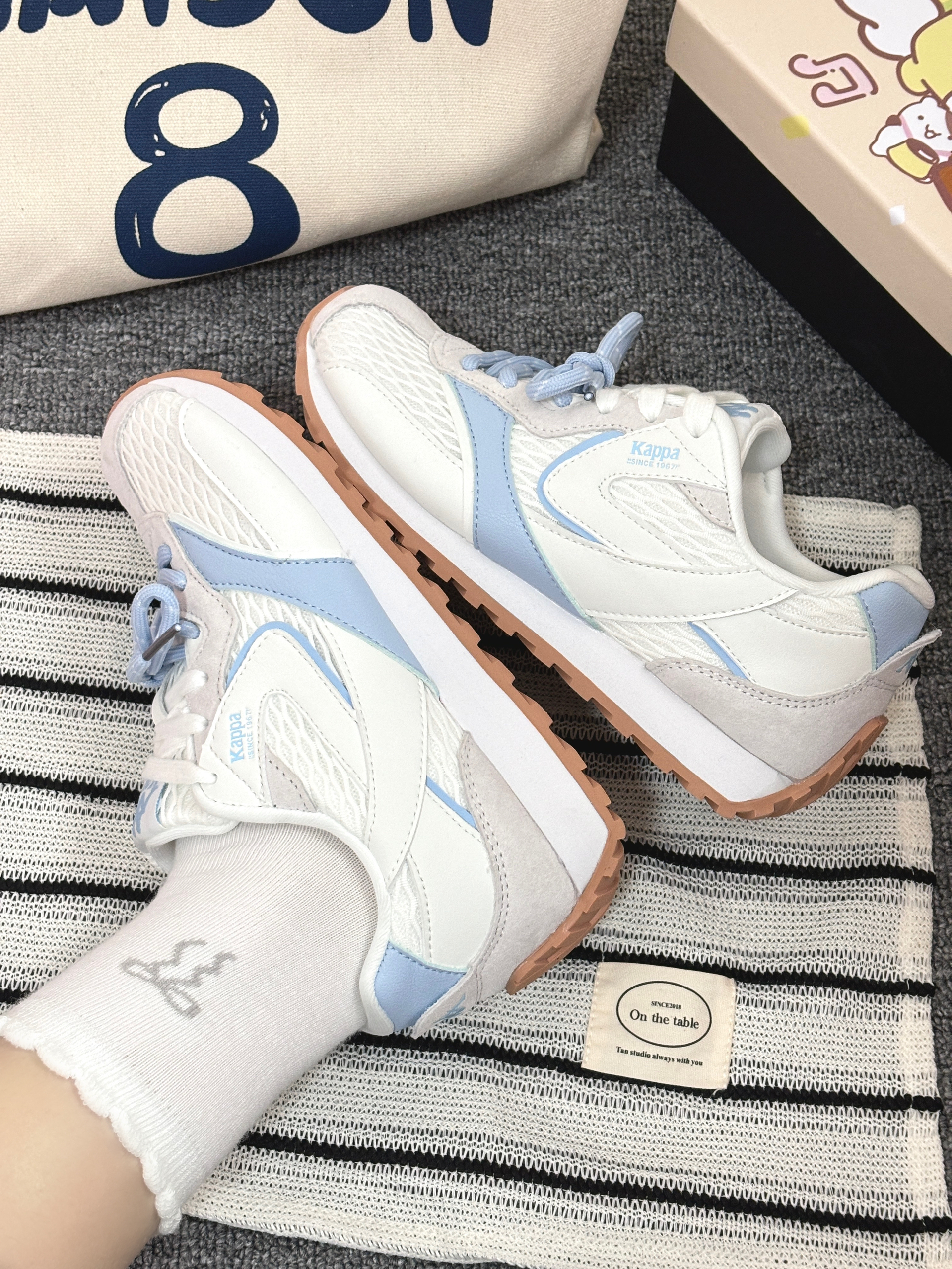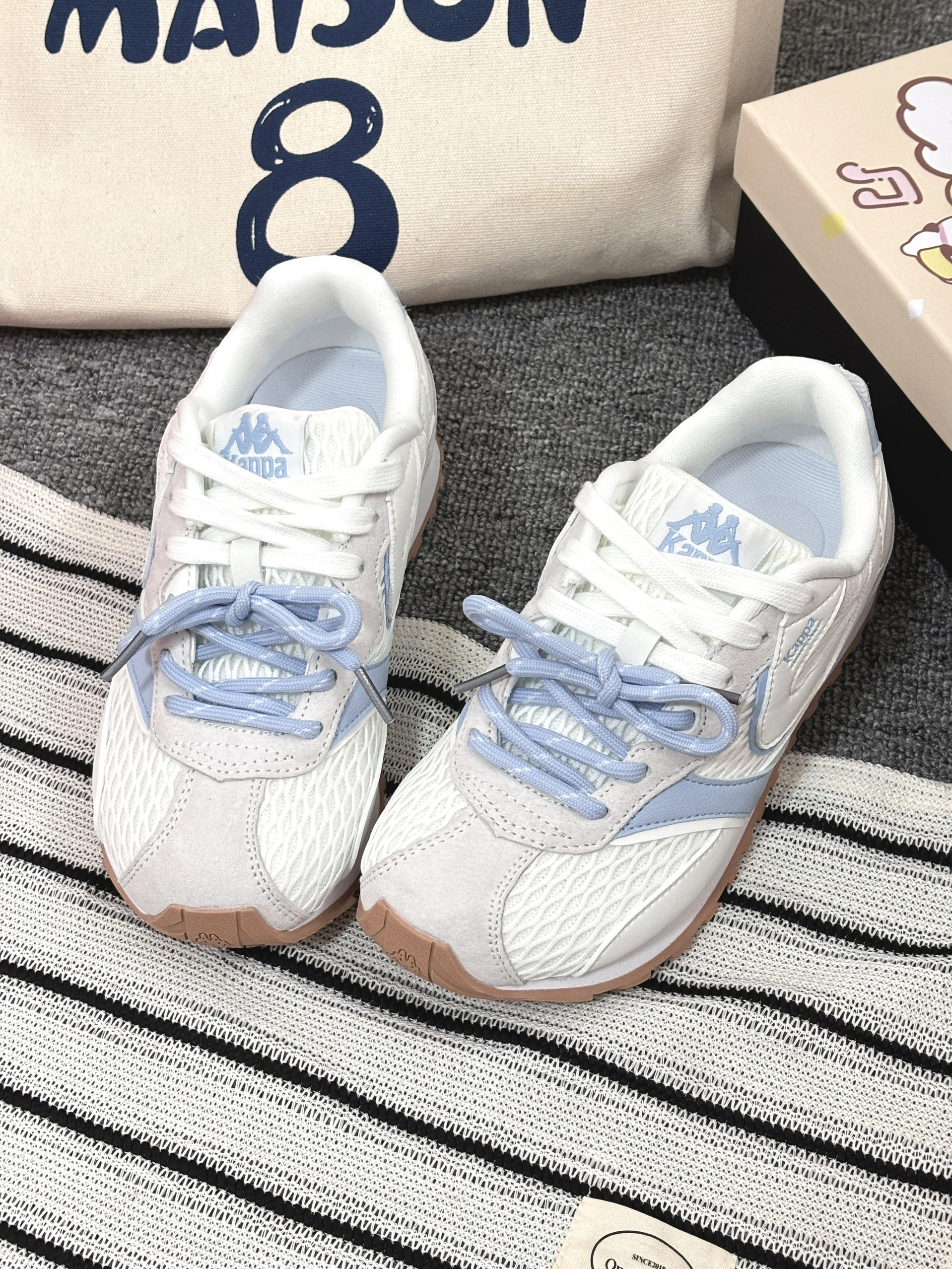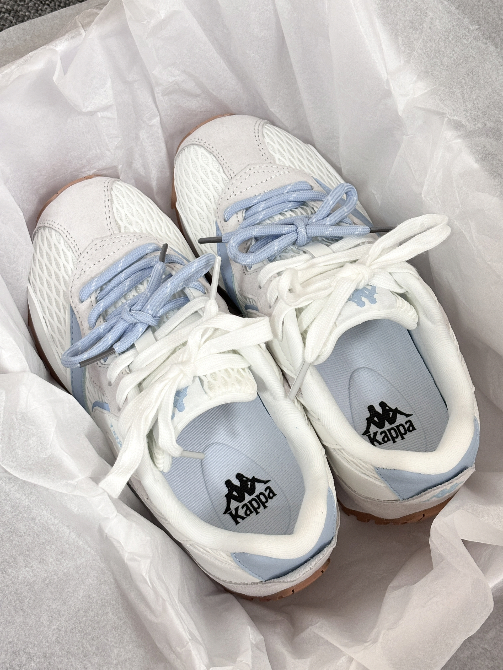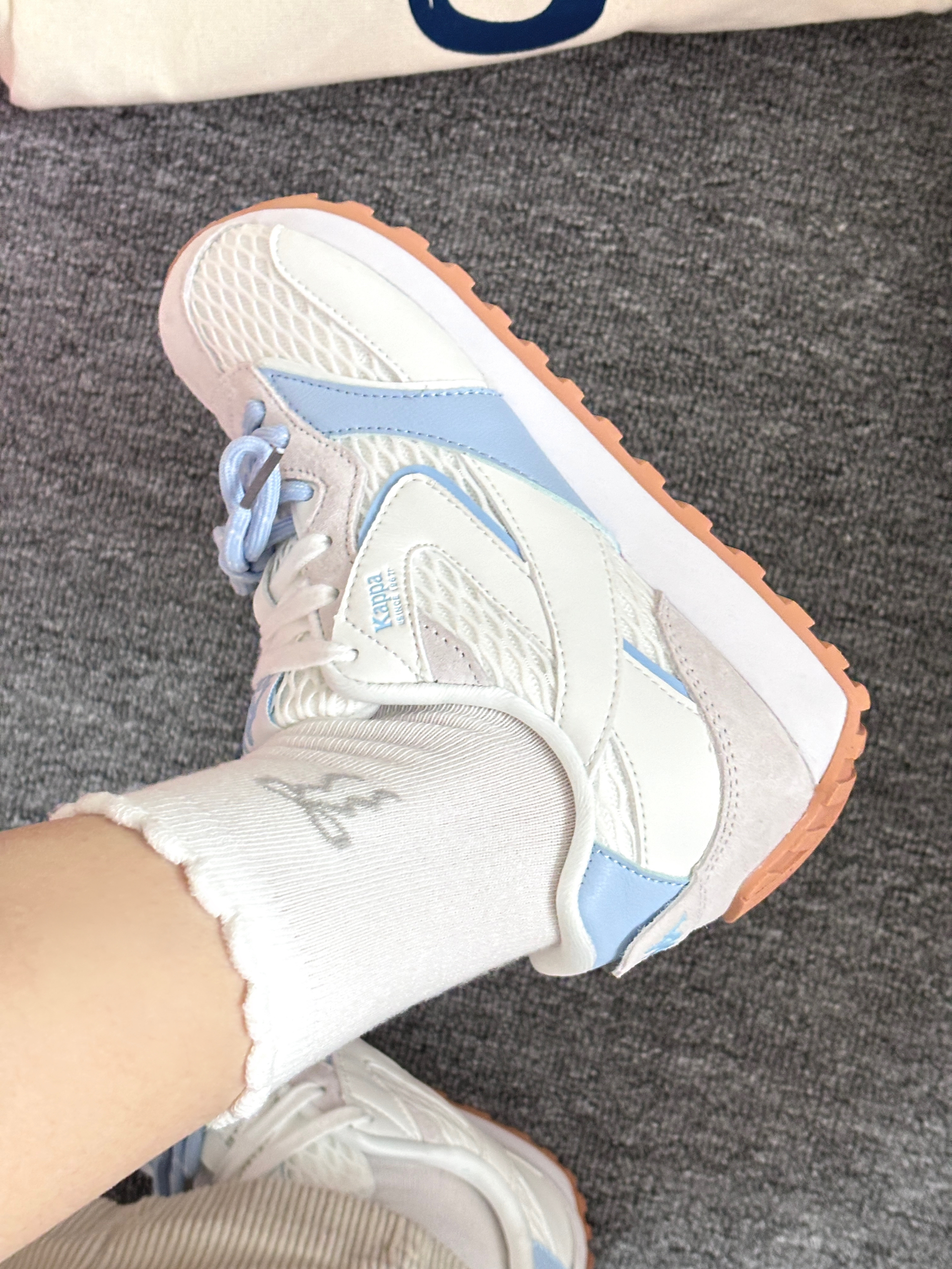 奶白和冰川蓝的配色真的好温柔🧊它是那种圆头设计还蛮可爱,显得脚小巧,还有就是双鞋带就更特别有层次感,是有点微增高的,平时我搭配浅色裤子就很清爽,如果搭裙子就更甜美🫧码数还挺标准