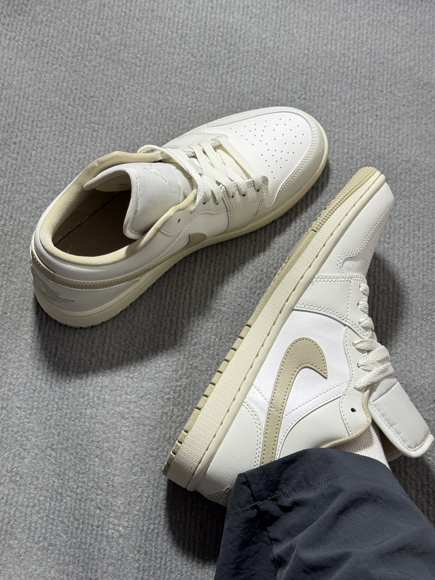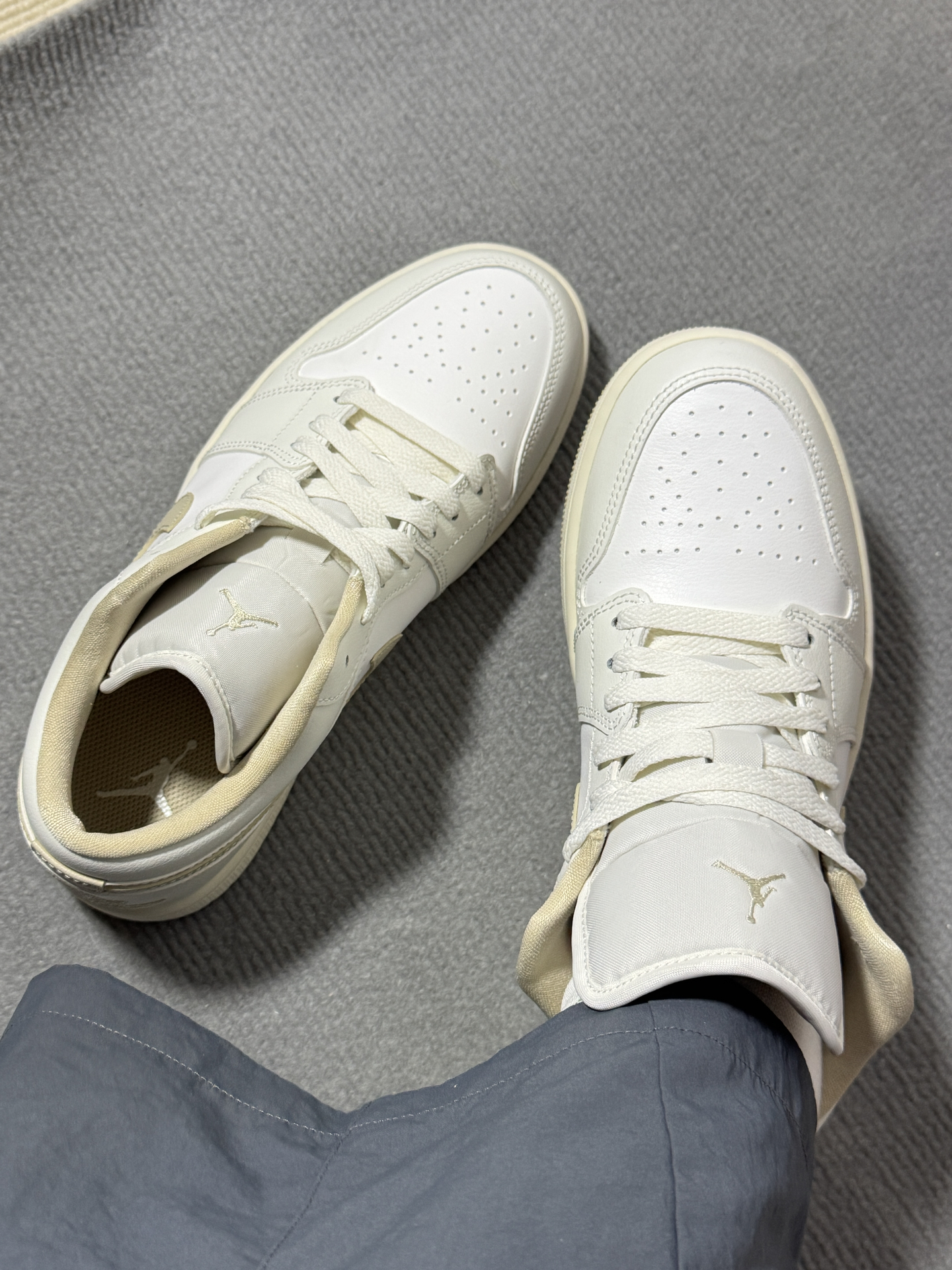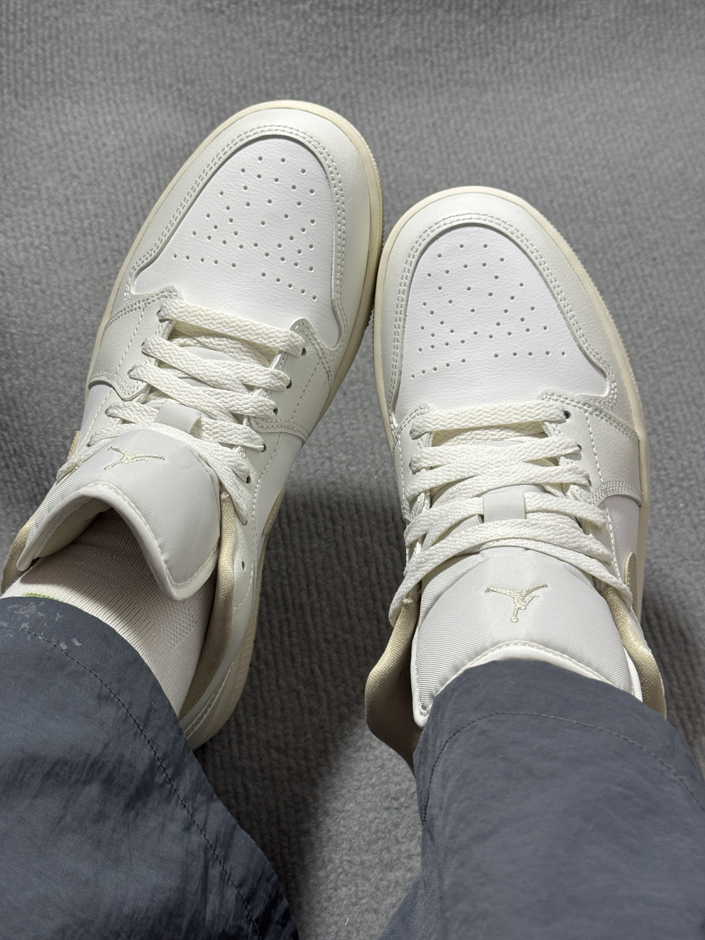 这个奶白色层次很分明 低调中透着高级感 鞋侧的大勾都在宣告他的经典身份 上脚很舒服 暴走一下午都不会酸疼 属于是很有春天氛围感啦 而且搭配校服裤也很好看 #耐克nike #黄白配色鞋太好看了 #米色板鞋yyds #空军一号宝藏板鞋 #谁还没有一双AJ
