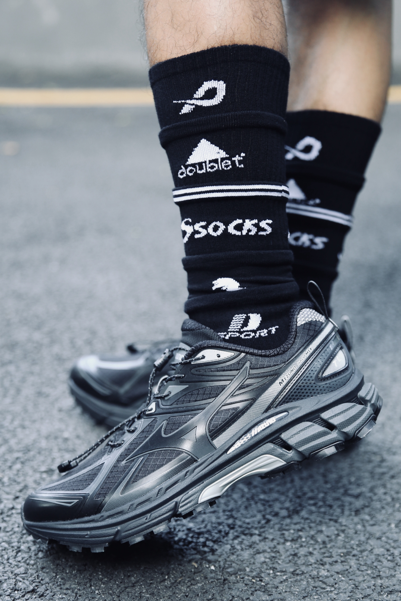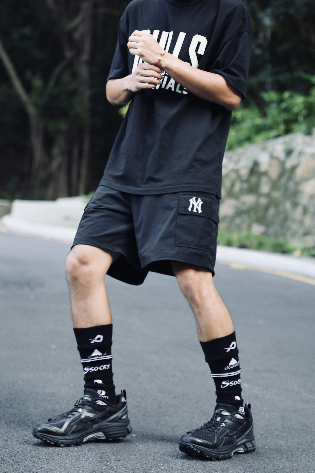 👕 fog 🩳 MLB 👟 Mizuno 今天是休闲机能的混搭风 fog美式的nba球队T恤 搭配mlb工装裤 白色字母点缀的恰到好处 下身一条个性长袜➕mizuno户外运动鞋 感觉还是蛮特别的~ #这双鞋很百搭