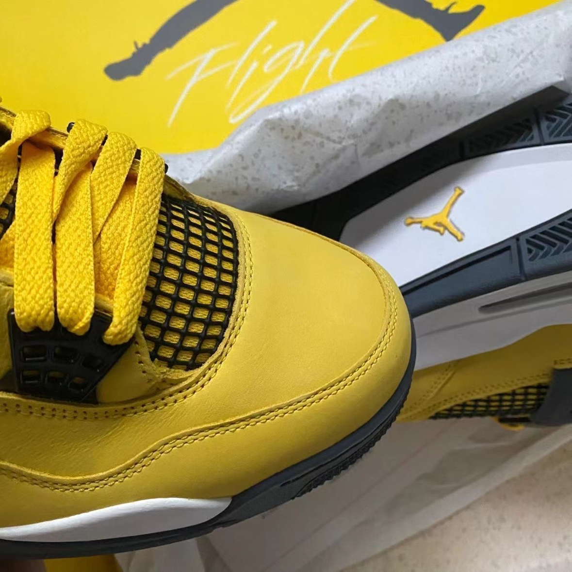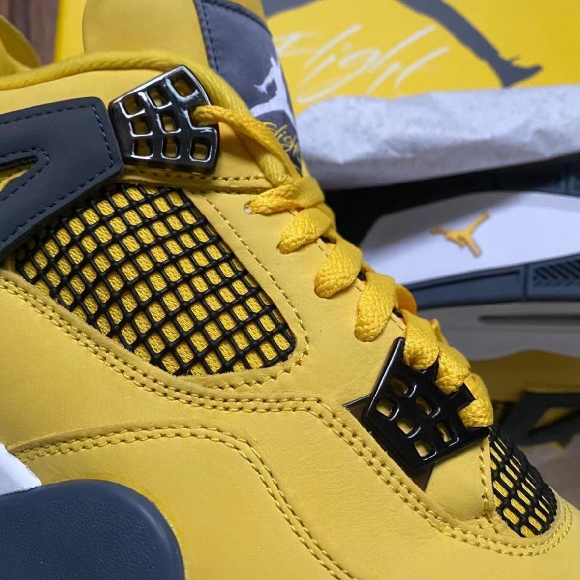 🔥 亮黄闪电 | Air Jordan 4 “Lightning” 电母回归 谁的青春DNA又动了?💛 这双AJ4电母,亮黄皮革+黑灰细节,网眼透气又吸睛,后跟飞人Logo和鞋盒上的“Flight”字样,直接把复古篮球魂拉满。 上脚就是球场最炸的仔,日常出街也能轻松hold住街头风。 ❓ 灵魂拷问: 1. 你觉得这双“电母”是颜值天花板吗? 2. 会选择上脚实战还是收藏压箱底? 3. 你心中AJ4...