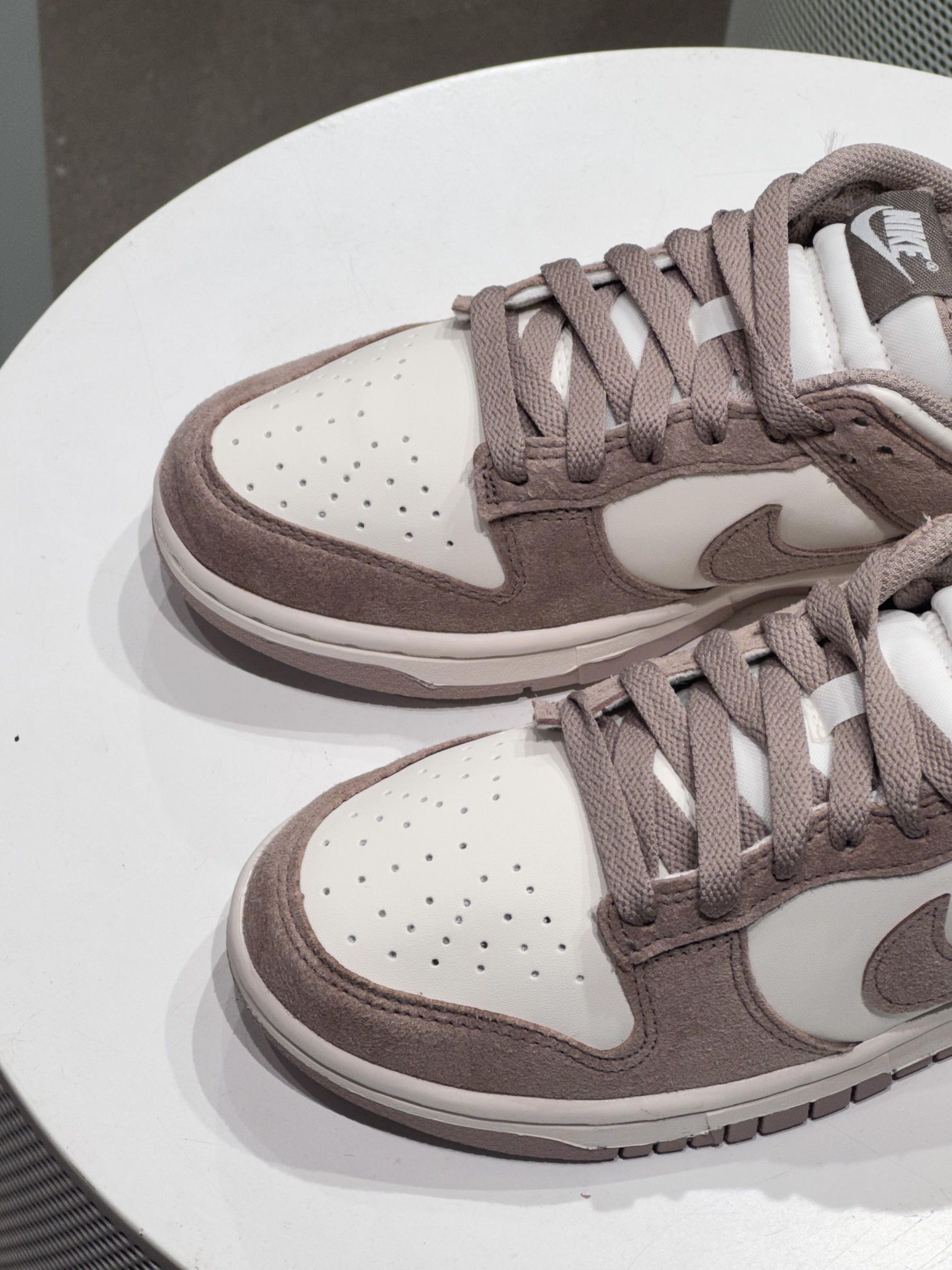 这双奶茶色Dunk一上脚 直接暖了三个度✨ 麂皮绒面裹着低饱和奶茶色 像把 latte 穿在脚上 走路自带温柔滤镜☕️ 搭配公式1:杏色针织裙+同色堆堆袜 搭配公式2:炭灰卫裤+奶油白羽绒服 每一套都软糯有层次 黄皮穿还超显白💡 暗沉秋冬里 你是行走的反光板 📷
