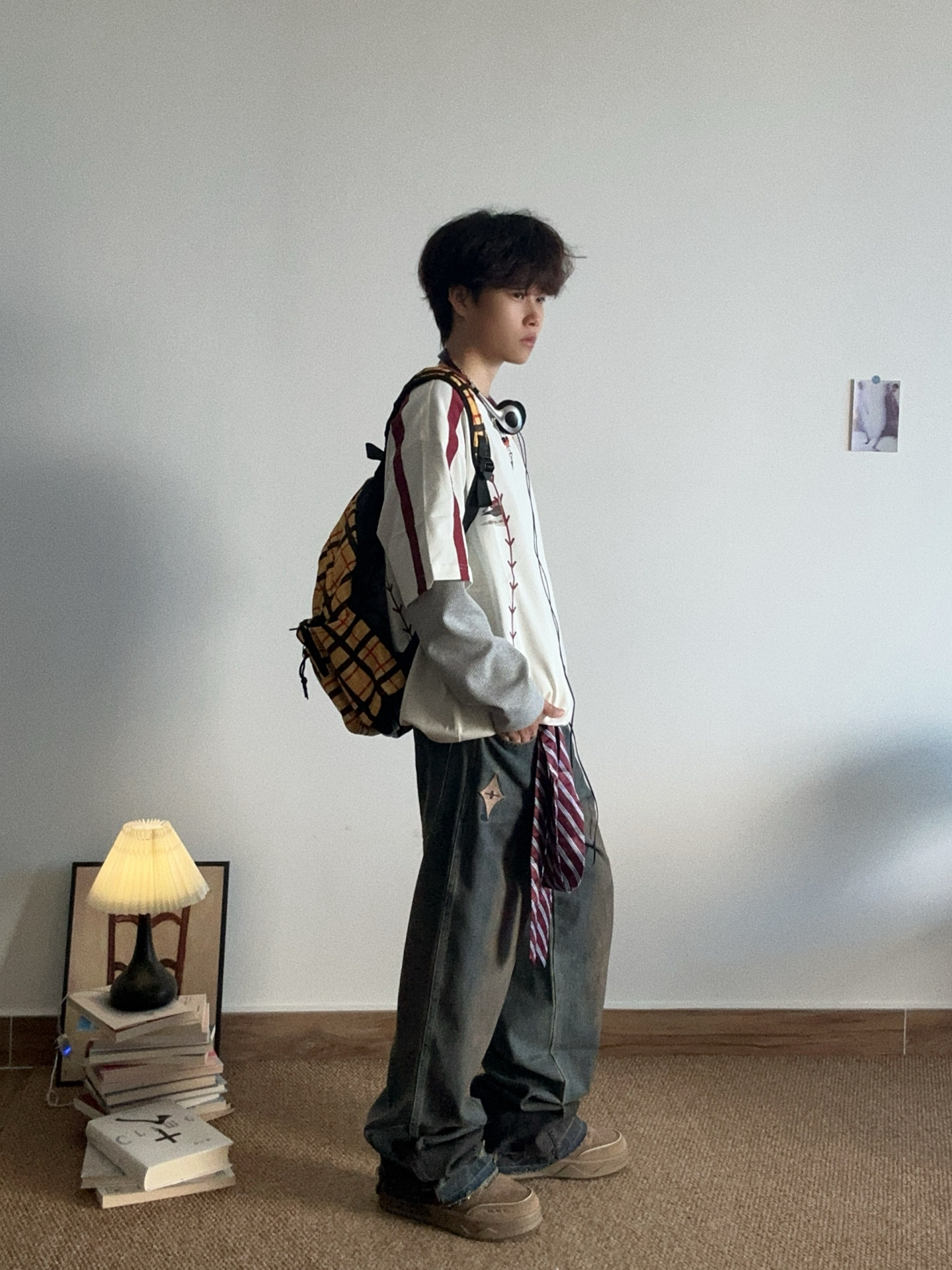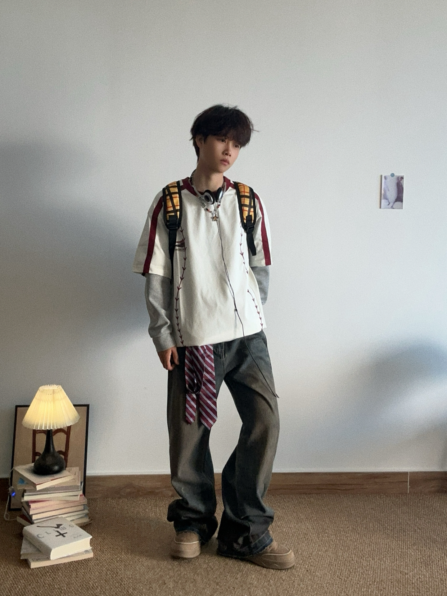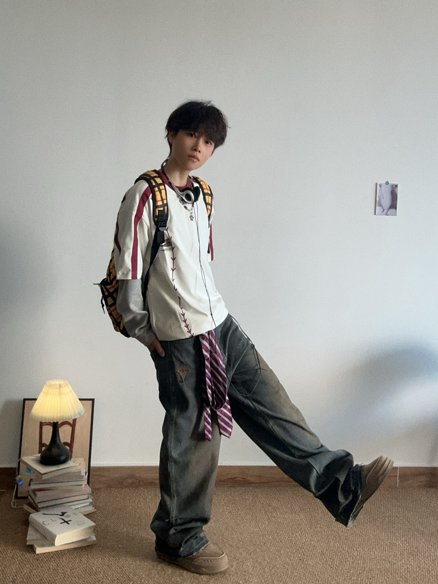 允许我提前一步穿上短袖 #BJHG 上衣是美式落肩的白色t 有人和我一样喜欢穿宽松款的吗? 白红色真的很显白! 裤子搭配 #BJHG 水洗破洞牛仔裤 口袋下边有个小小的刺绣点缀 裤腿都做了破洞设计 很有个性了哈哈哈😁 增加一些小配饰 早春穿搭我先get喽 #少年感穿搭OOTD #BJHG谁穿谁好看 #BJHG的ootd #男生初春OOTD #宝藏短袖T恤的穿搭分享