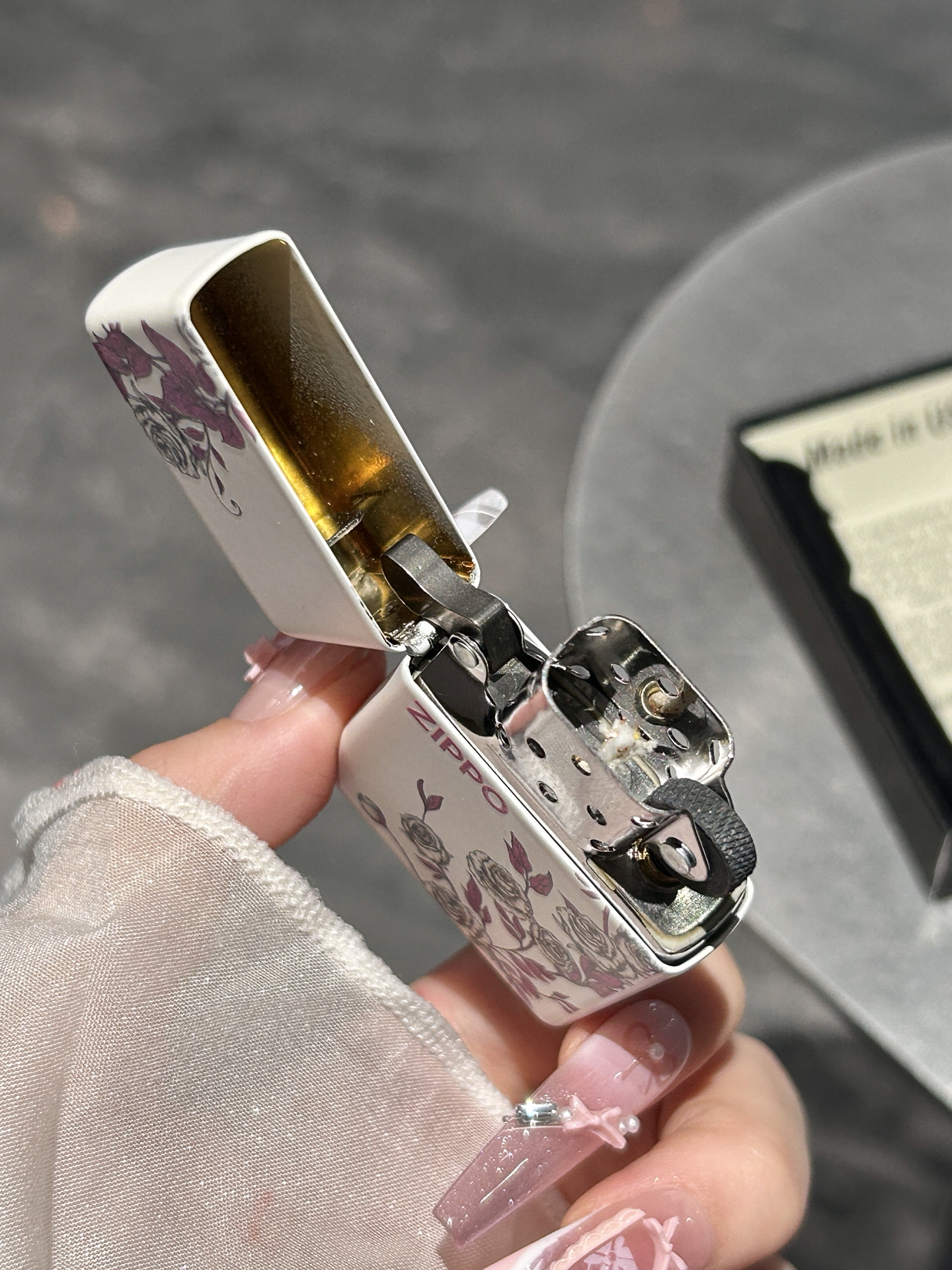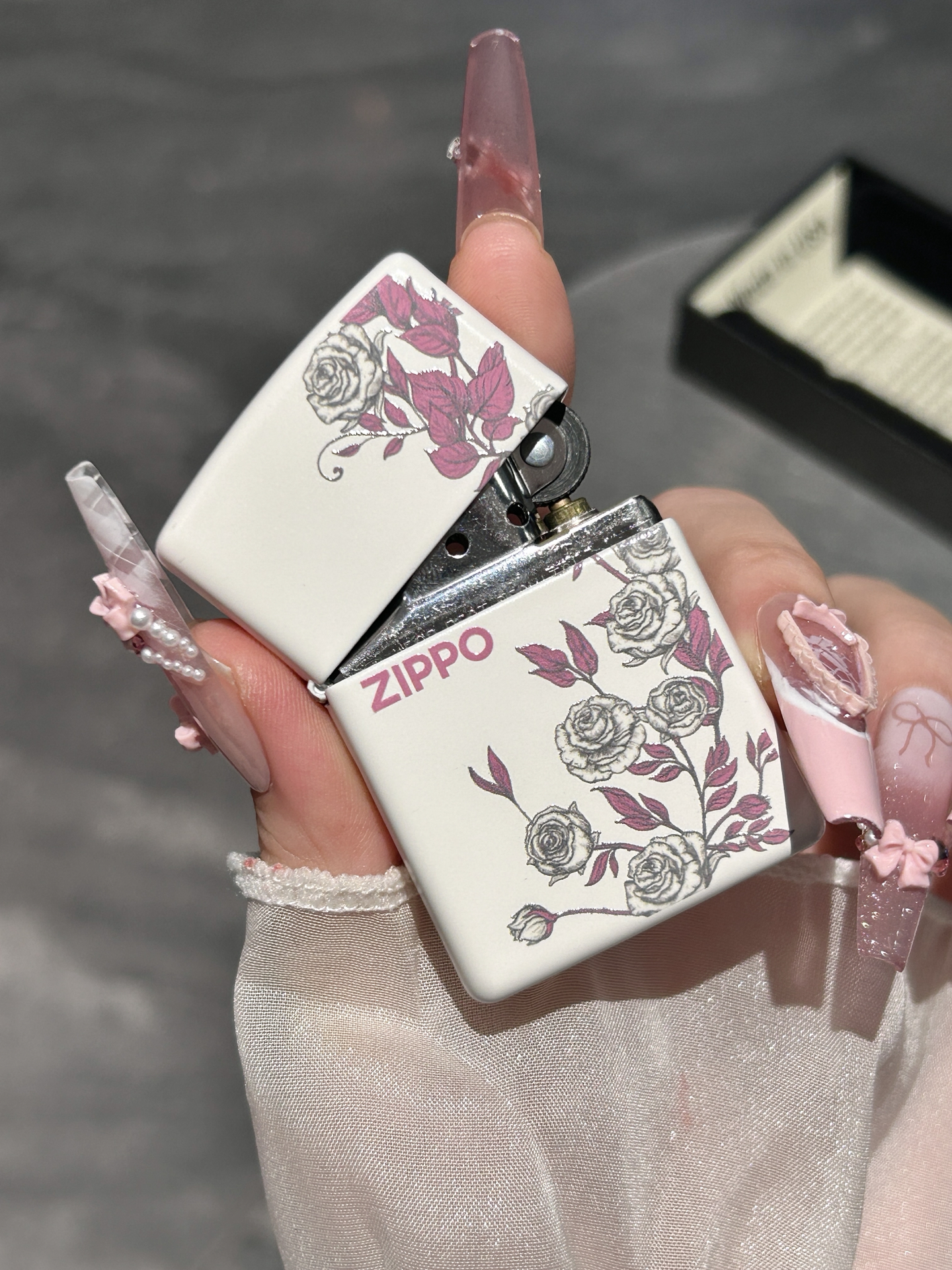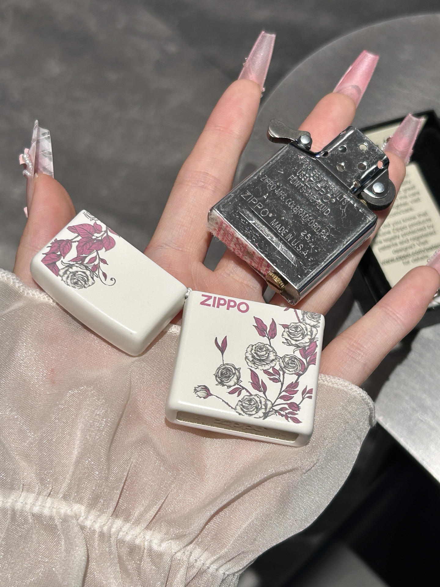 Zippo这次设计戳我审美上了!新入的白色恋人打火机,奶白机身印满玫瑰花,拿在手上精致感拉满~自用很有氛围感,送对象也超有排面✨ 不过它是煤油款,初次用要注意加油方式~