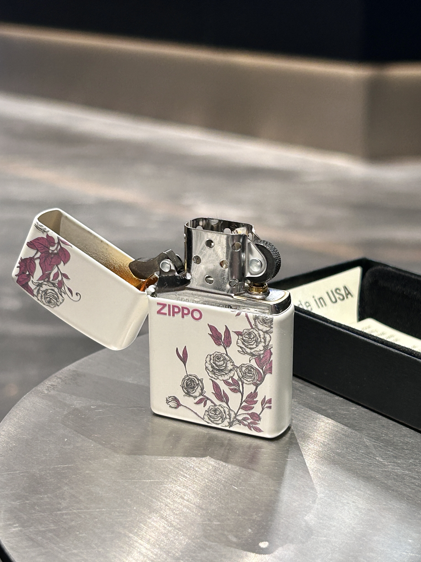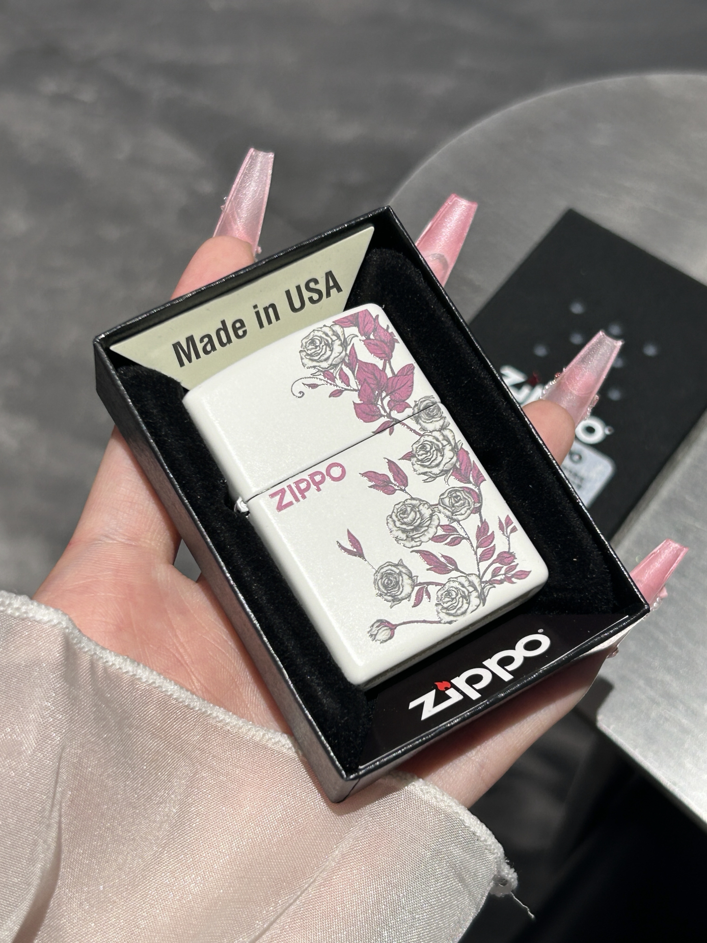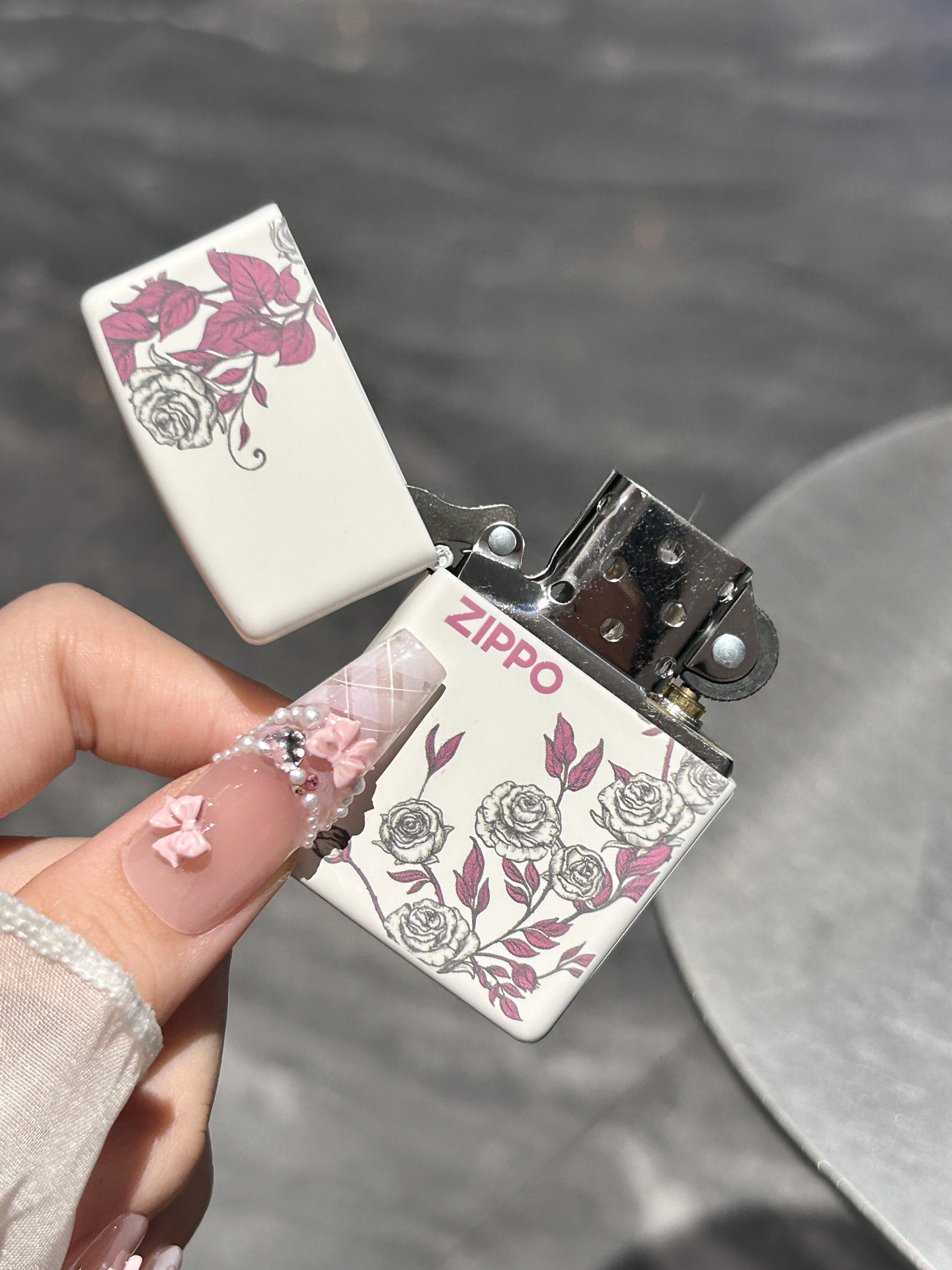 Zippo这次设计戳我审美上了!新入的白色恋人打火机,奶白机身印满玫瑰花,拿在手上精致感拉满~自用很有氛围感,送对象也超有排面✨ 不过它是煤油款,初次用要注意加油方式~