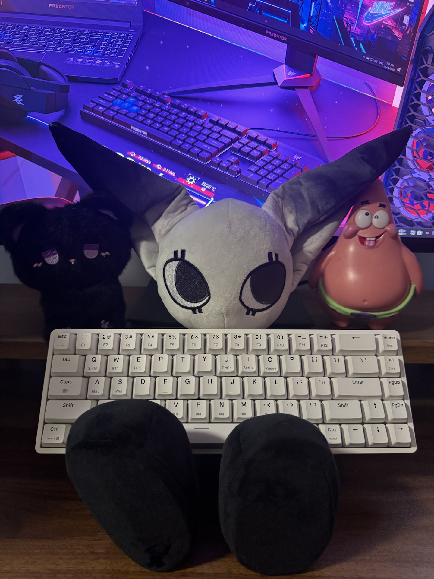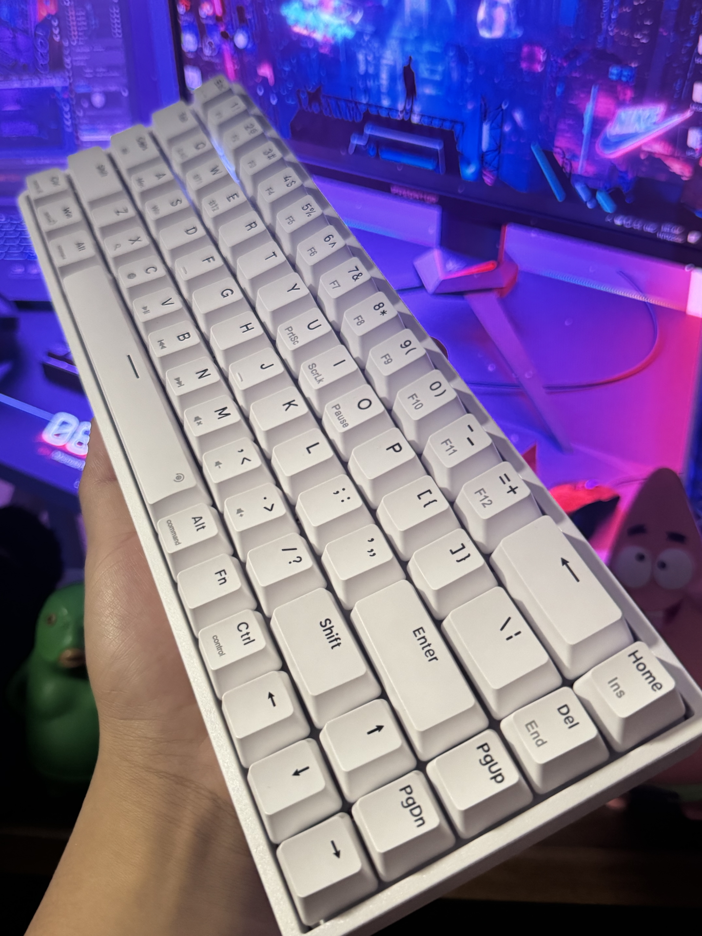 就素介个 前行者 的机械键盘呀 它是白色的比较有ins风 敲击感还是挺解压的 蓝牙连接 放办公室体验也嘎嘎好 手感真滴很不错 打游戏用也很爽 打字的时候用它 嗒嗒嗒的声音感觉好治愈 不得不说介款机械键盘 不管是办公打字还是日常打游戏 都是特别丝滑好使