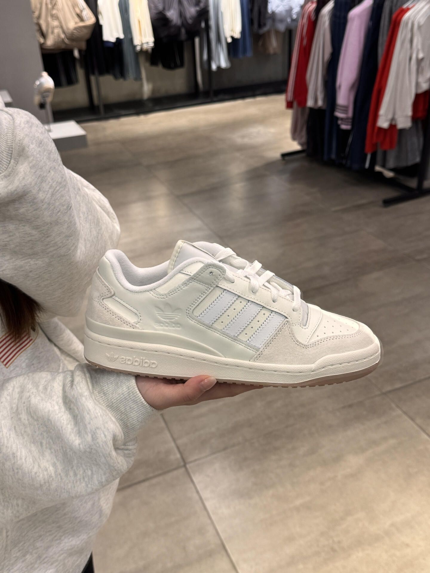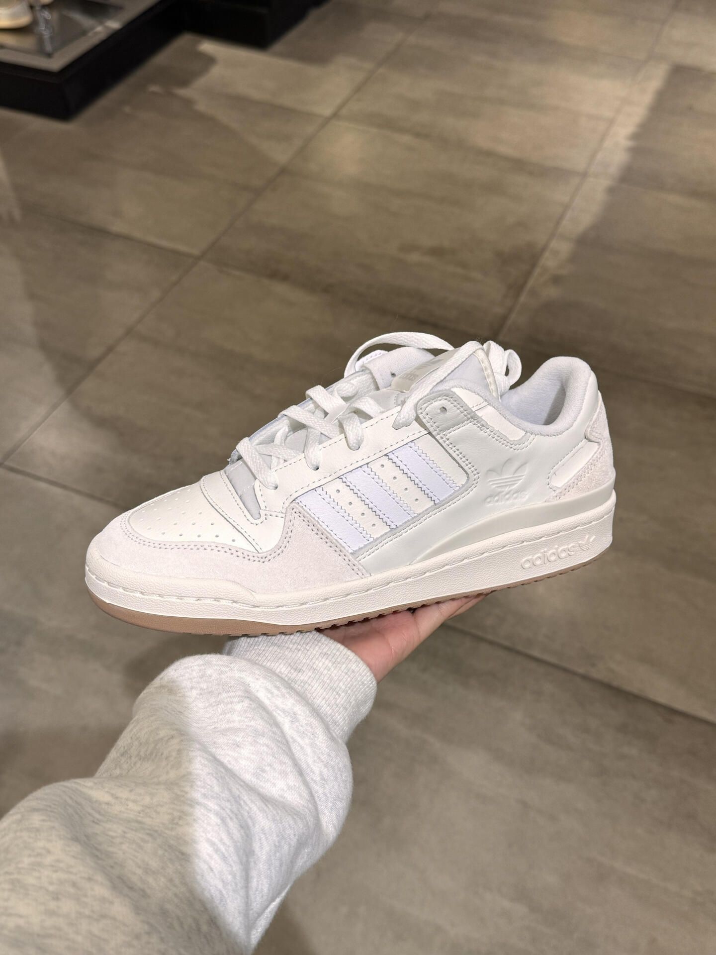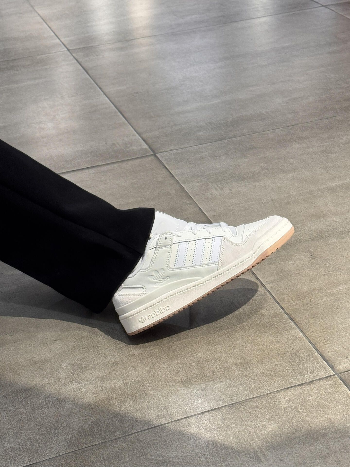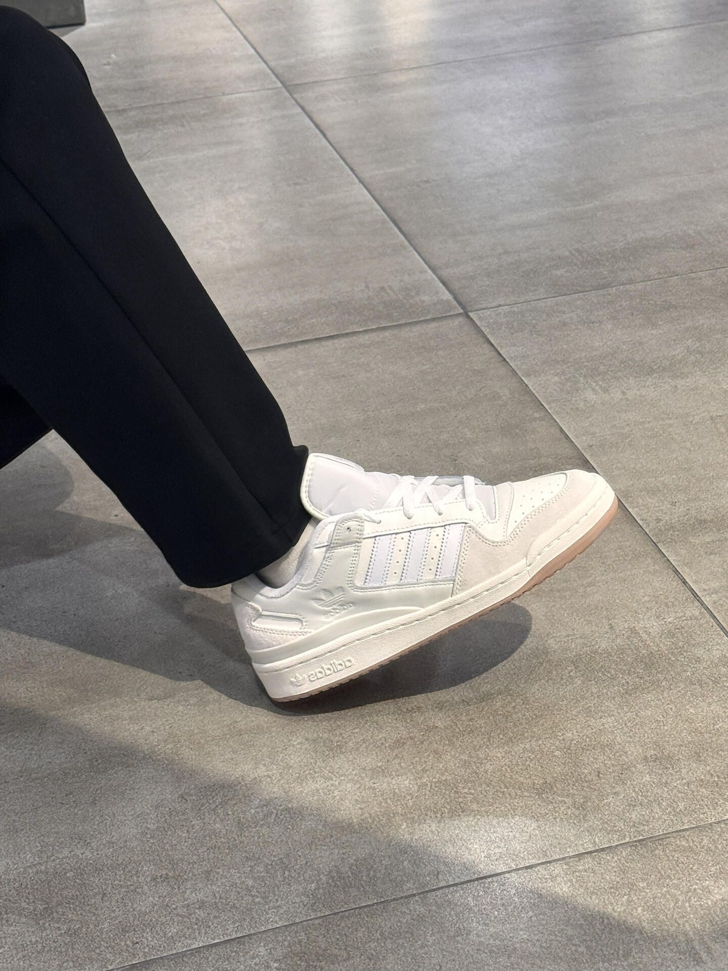 刚入的阿迪达斯FORUM Low Classic全白板鞋,今天第一次穿出门就被问链接了! 全白配色真的很干净,上脚的松弛感很舒服。我是女生,搭配了黑色直筒牛仔裤,显得腿很直。男生穿的话搭工装裤应该也会很帅。 鞋面是皮质的,摸起来很有质感,鞋底也比较软,走了一下午都没觉得累。 百搭属性确实不错,不管是日常通勤还是周末逛街都很合适。