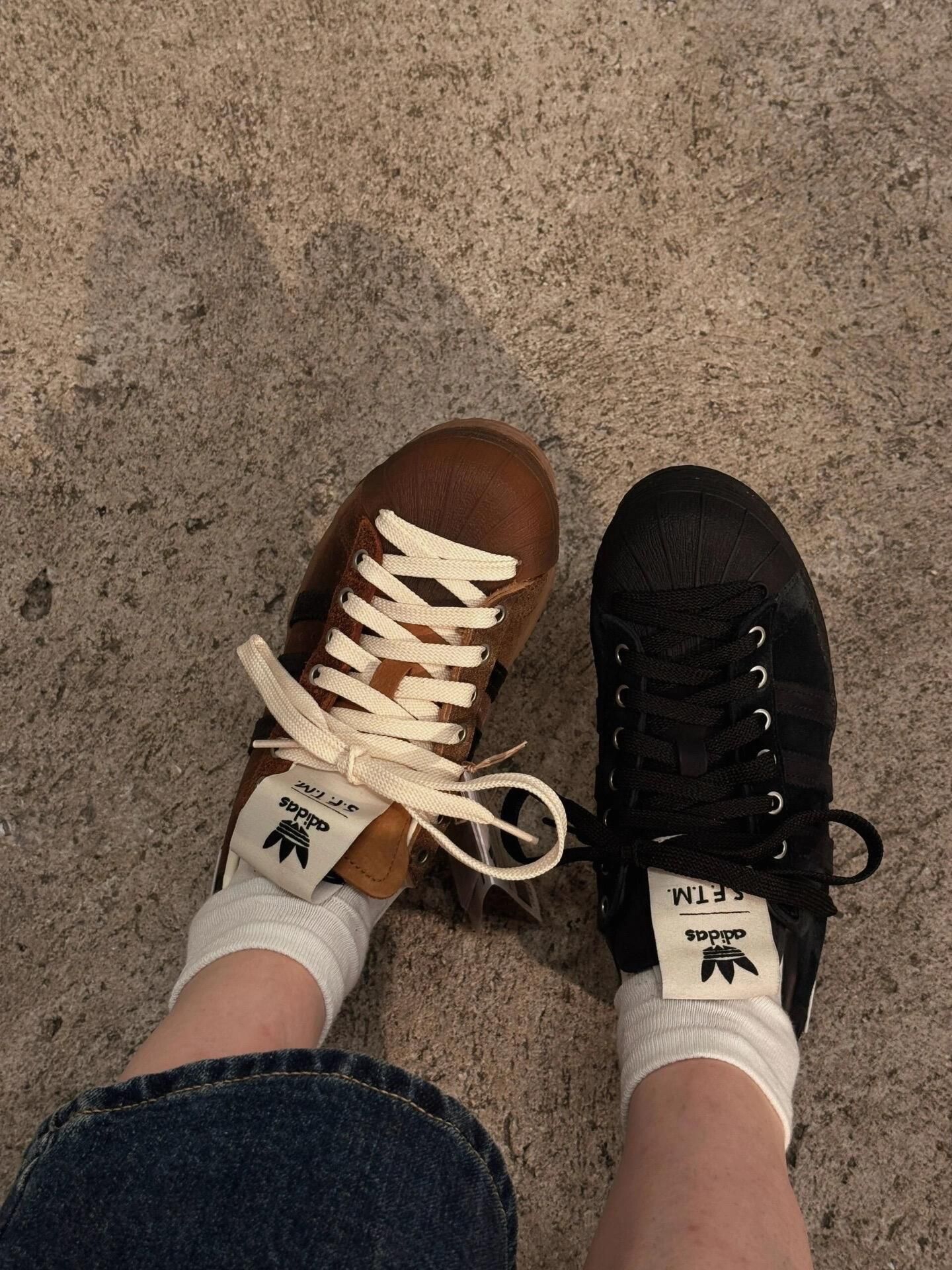 这双adidas x Sftm联名鞋👟 黑棕配色超有质感~ 搭配牛仔裤和白袜,复古又时尚✨ 脚感舒适,走路久了也不累~ 瞬间戳中我的心巴💘 以为不会再买鞋,结果又心动啦~