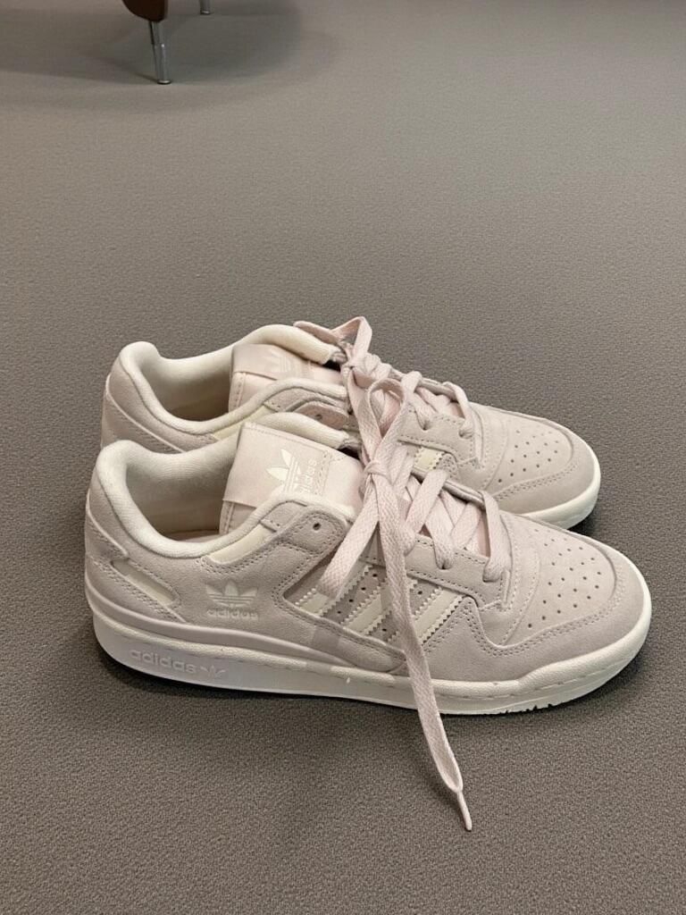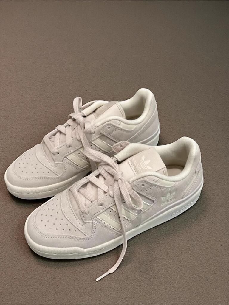 这双阿迪粉灰配色真的太温柔了!👟 麂皮质感摸起来软fufu的,三道杠和鞋舌logo是低调的白色,搭配同色系鞋带超有整体感~上脚轻盈不压脚,日常通勤走路完全无压力,久穿也不累。就是小心别蹭到深色地面,浅色系有点“娇气”😂 总体是颜值与舒适并存的宝藏款!