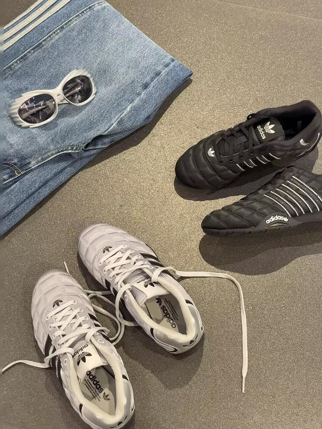 谁懂啊!adidas三叶草Racing赛车鞋直接戳中我的心巴💘 银色款像把银河穿在脚上🌌 缎面鞋带交叉设计超有细节感,甜酷少女风瞬间拉满✨ 黑色款酷酷哒🖤质感糯叽叽,酷飒又复古,配小裙子或者牛仔裤都巨好看! 而且还是Jennie同款耶🎀 韩系氛围感直接焊在脚上,复古运动风一整个拿捏住,真的很难不爱啊💖 纠结症犯了,银色和黑色都想抱回家!