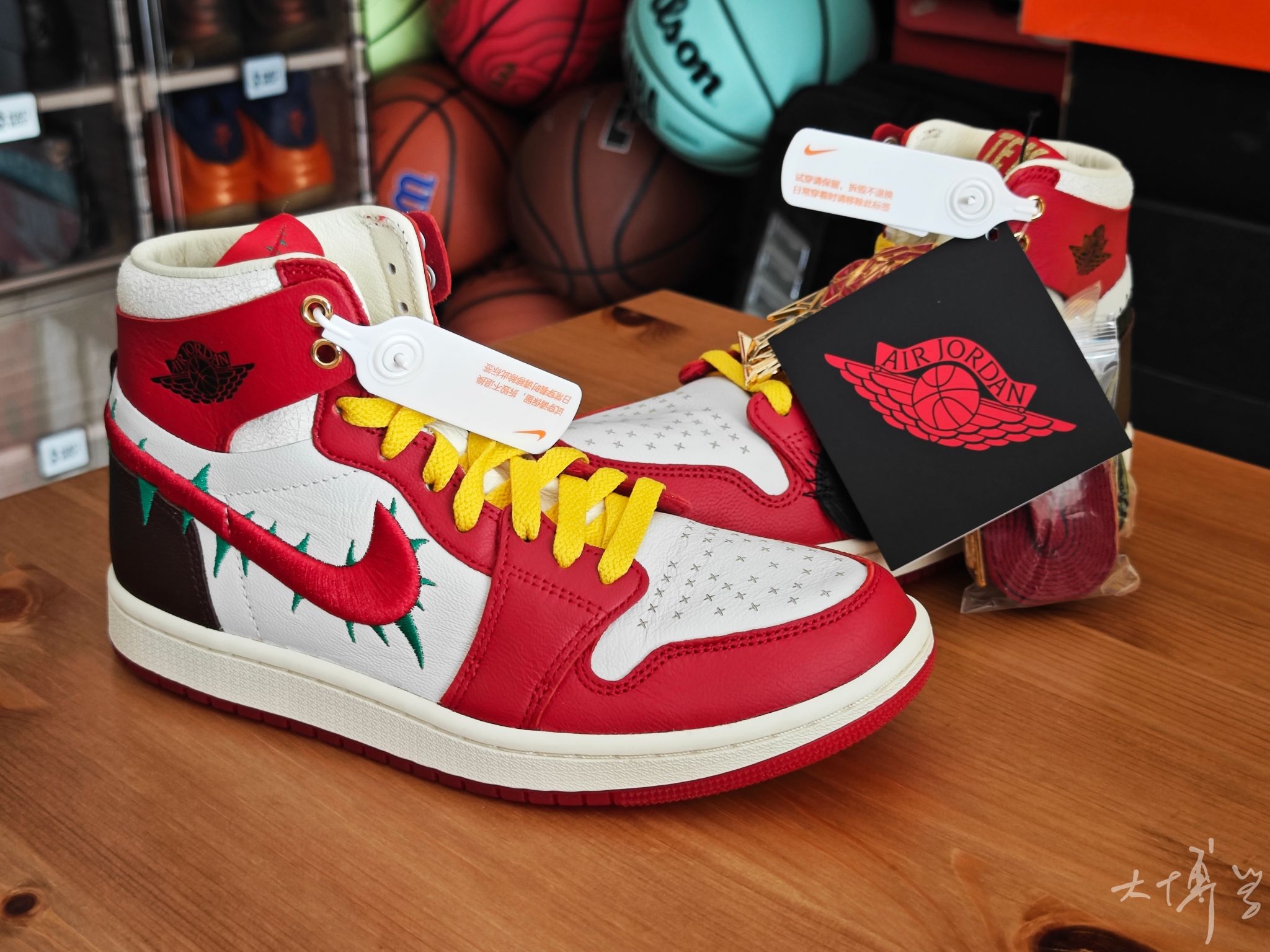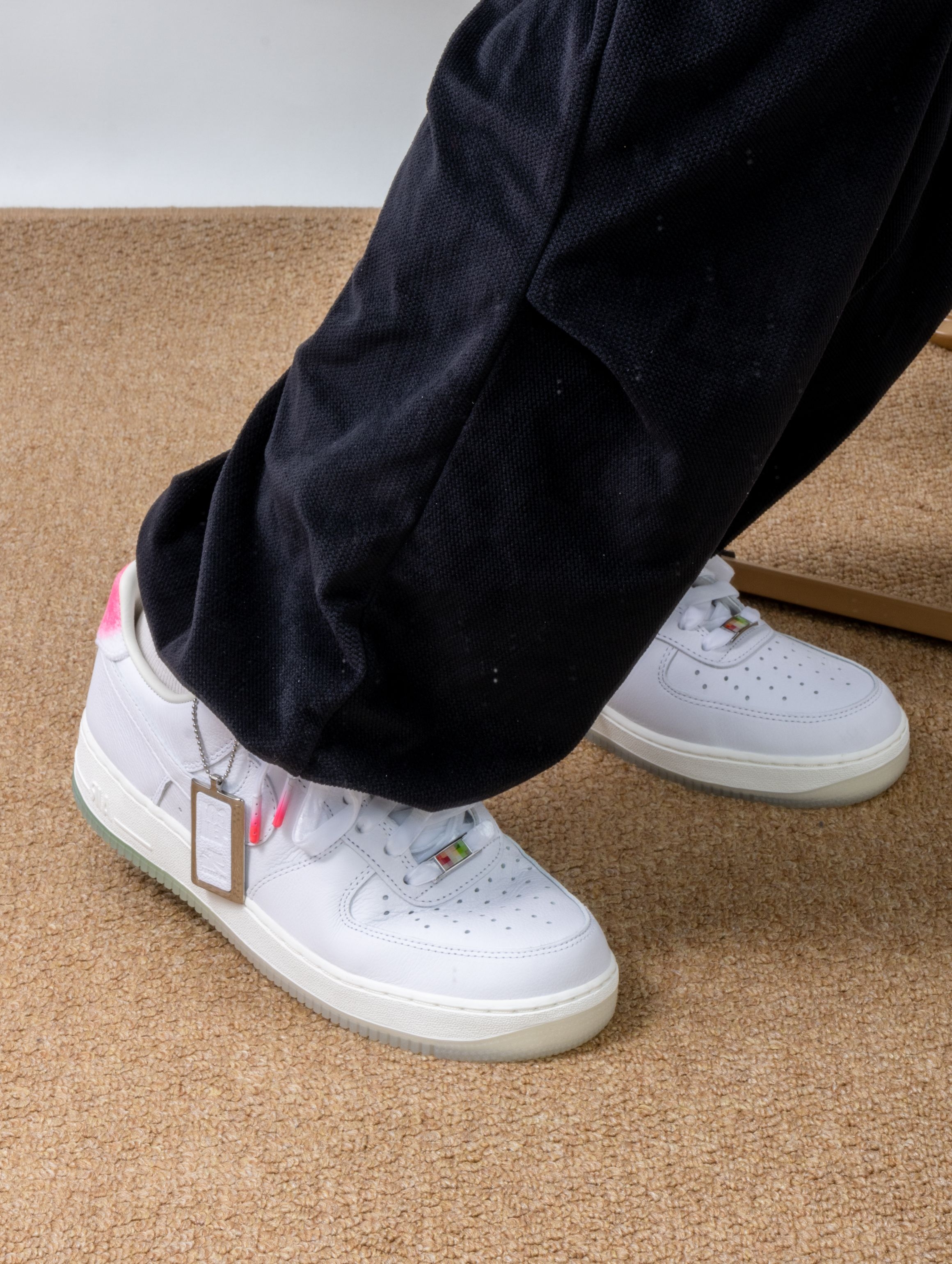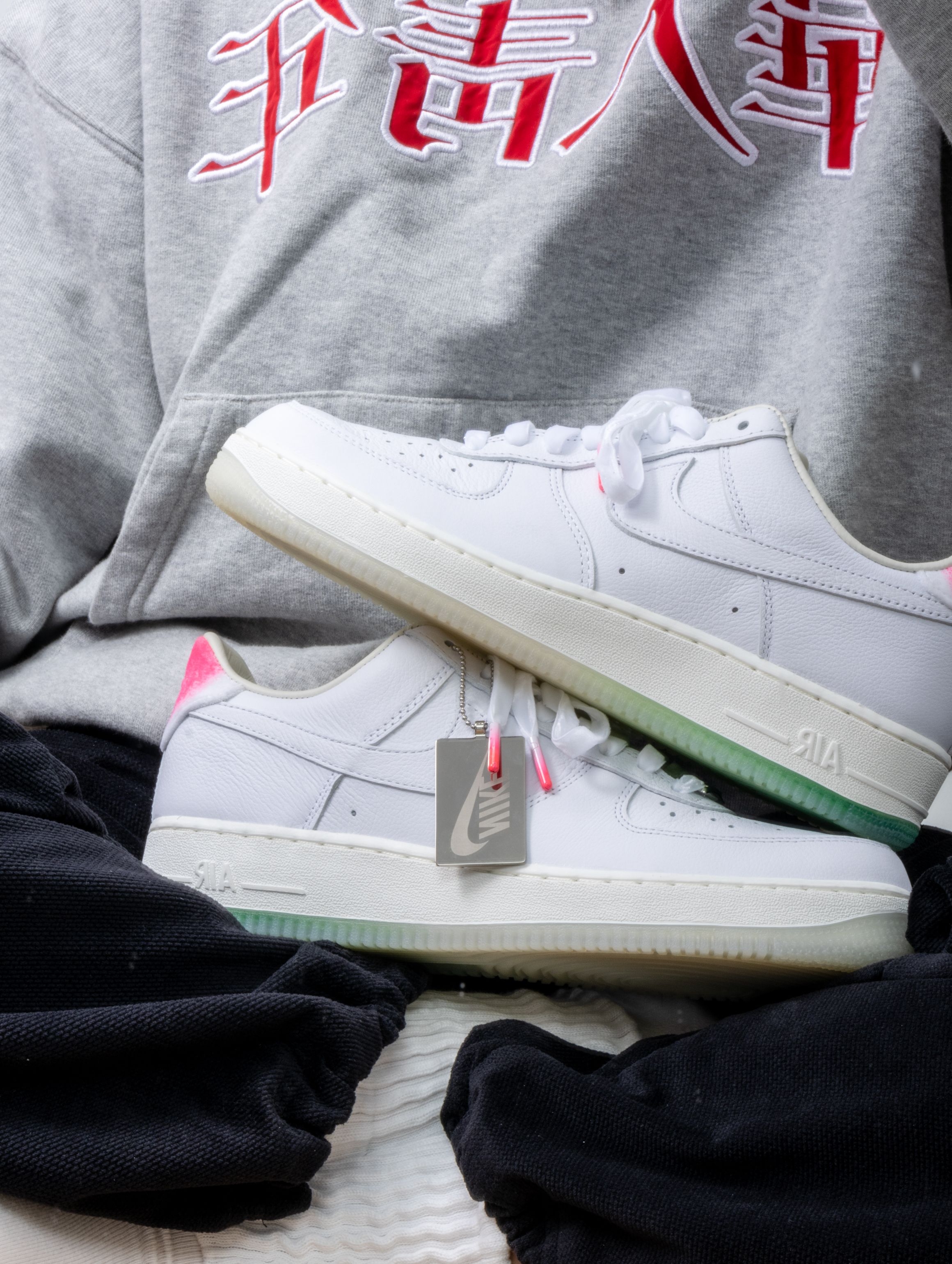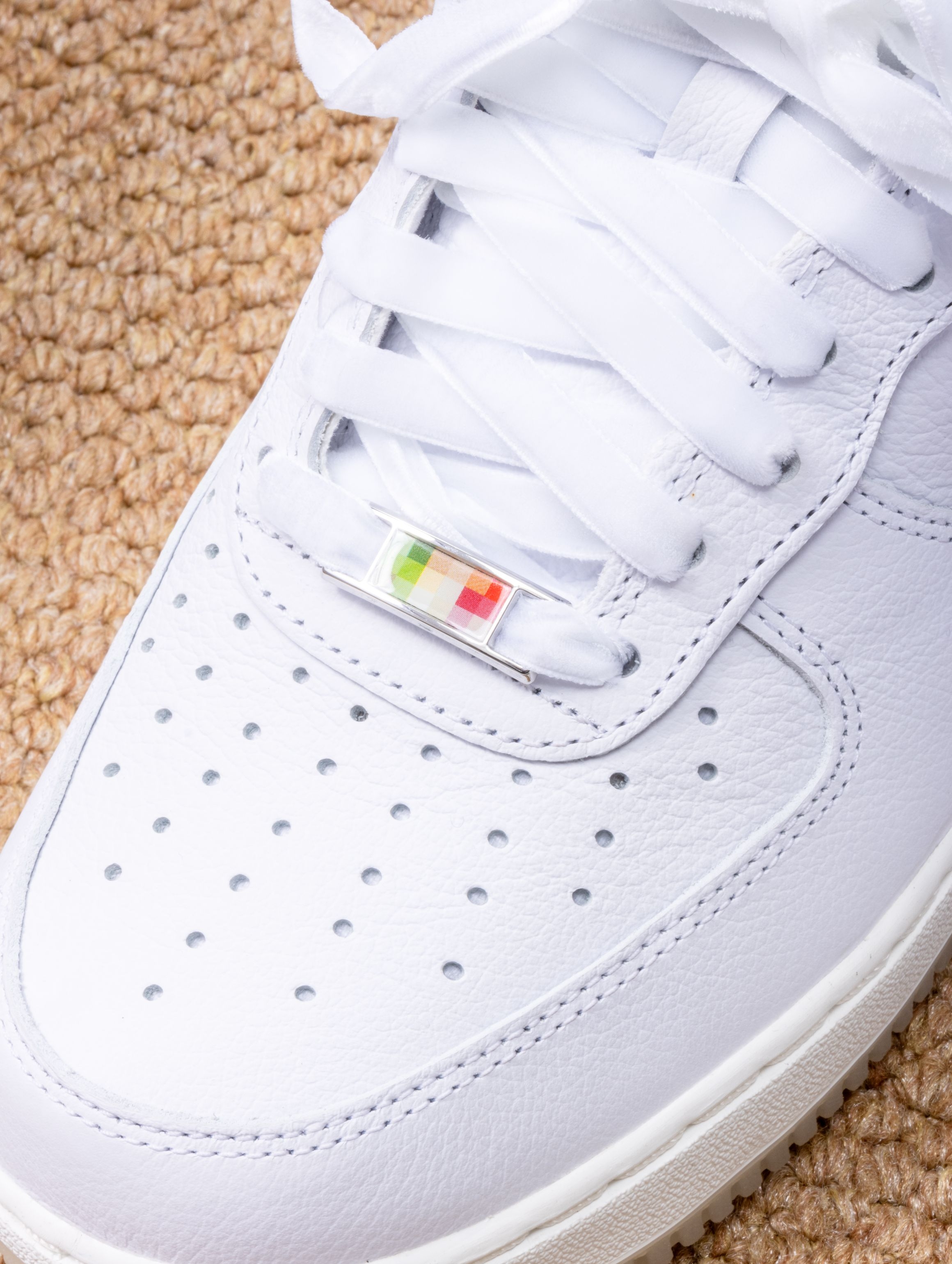 Nike这双寿桃AF1实物比图片还要可爱!纯白皮革鞋身干干净净,后跟那块粉红渐变真的绝了——像水蜜桃尖儿上那一抹红晕,毛茸茸的丝绒质感摸起来很妙。浅绿色果冻底透亮得能看见鞋垫印花,整体配色又甜又清爽。 上脚还是熟悉的AF1脚感,鞋垫软弹适中,走半天也不累。鞋舌内侧藏着小小的"GOT‘EM"刺绣,后跟还有寿桃轮廓压印。 一双能把好运和百搭焊得这么死的鞋,要的就是这种甜甜的仪式感。