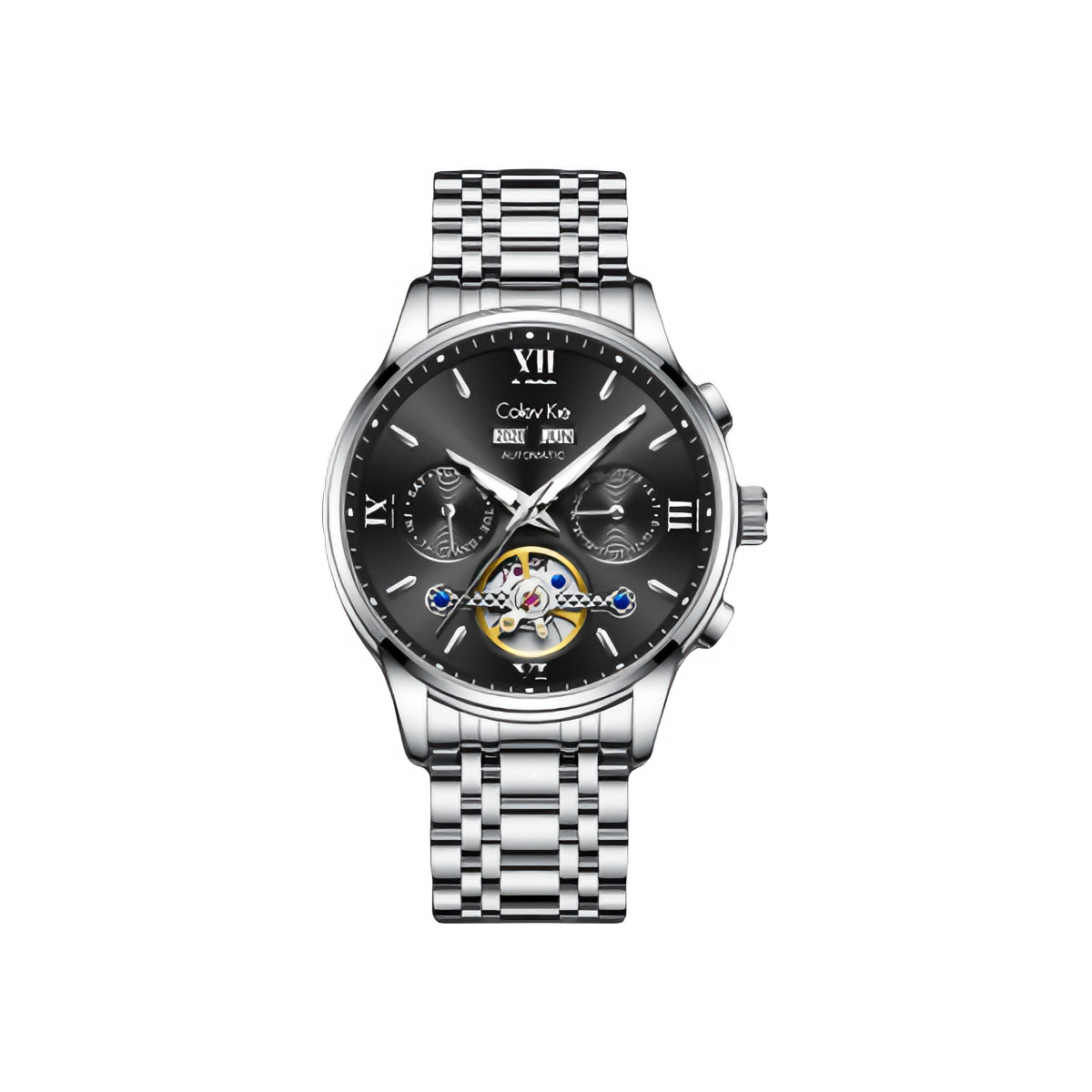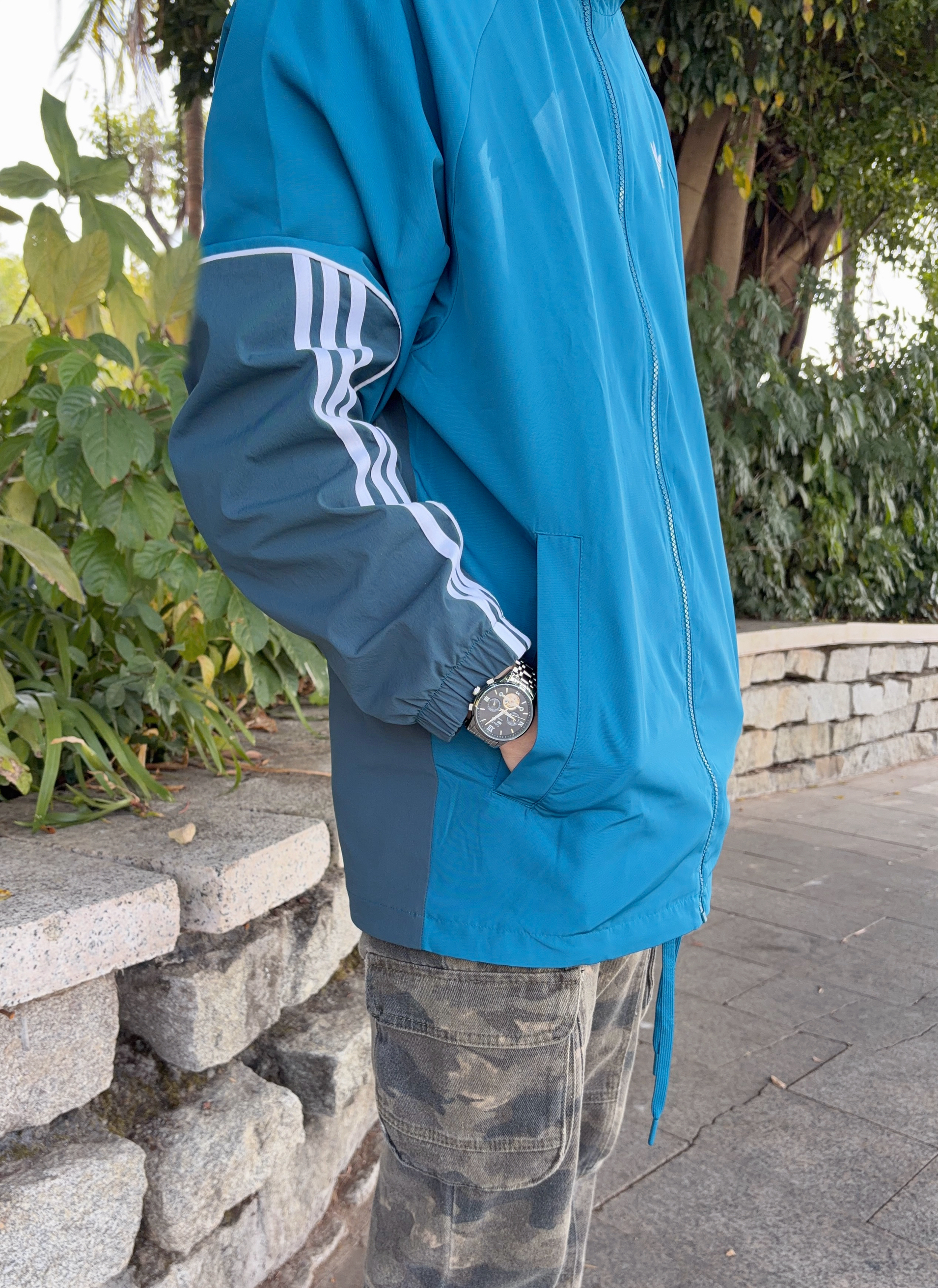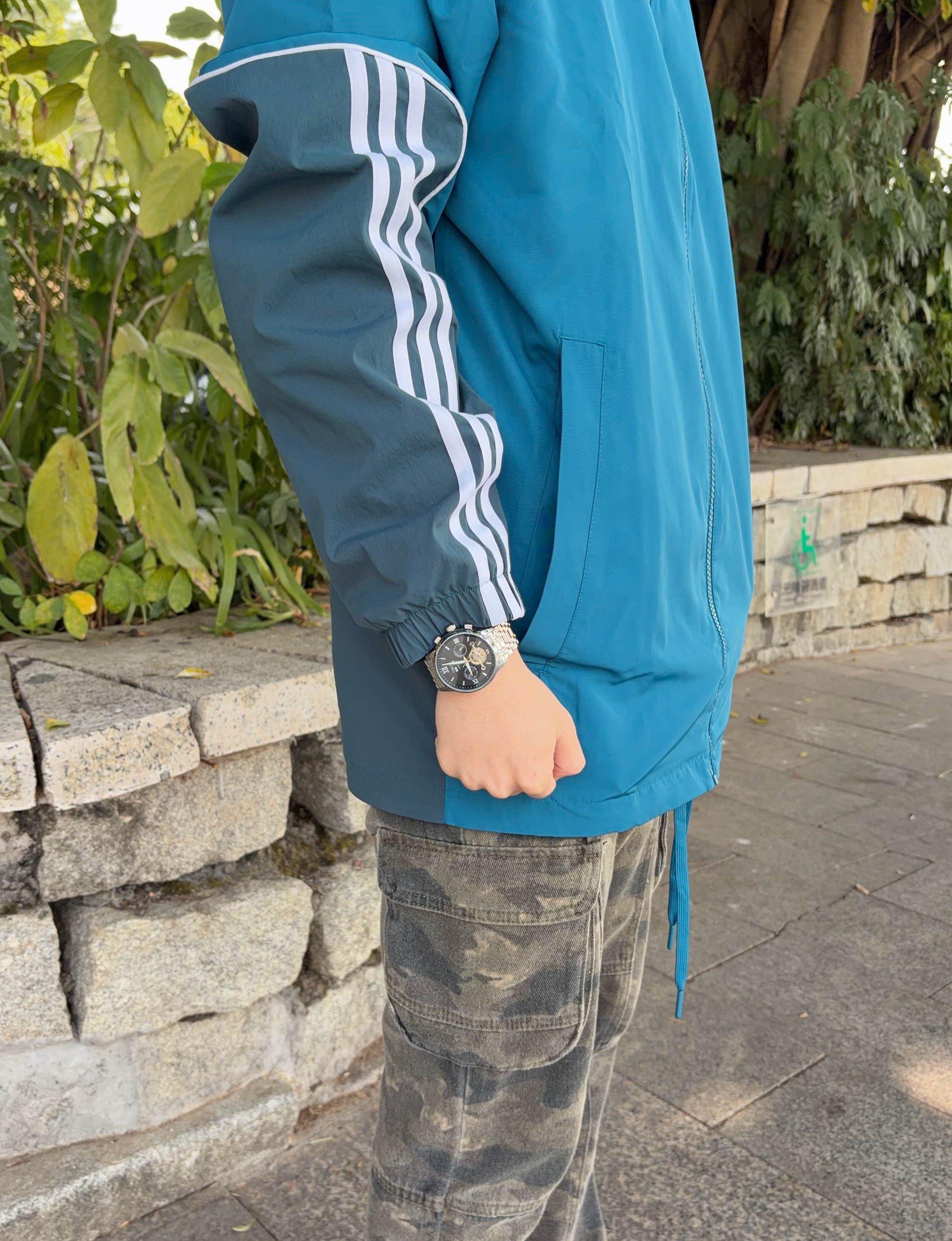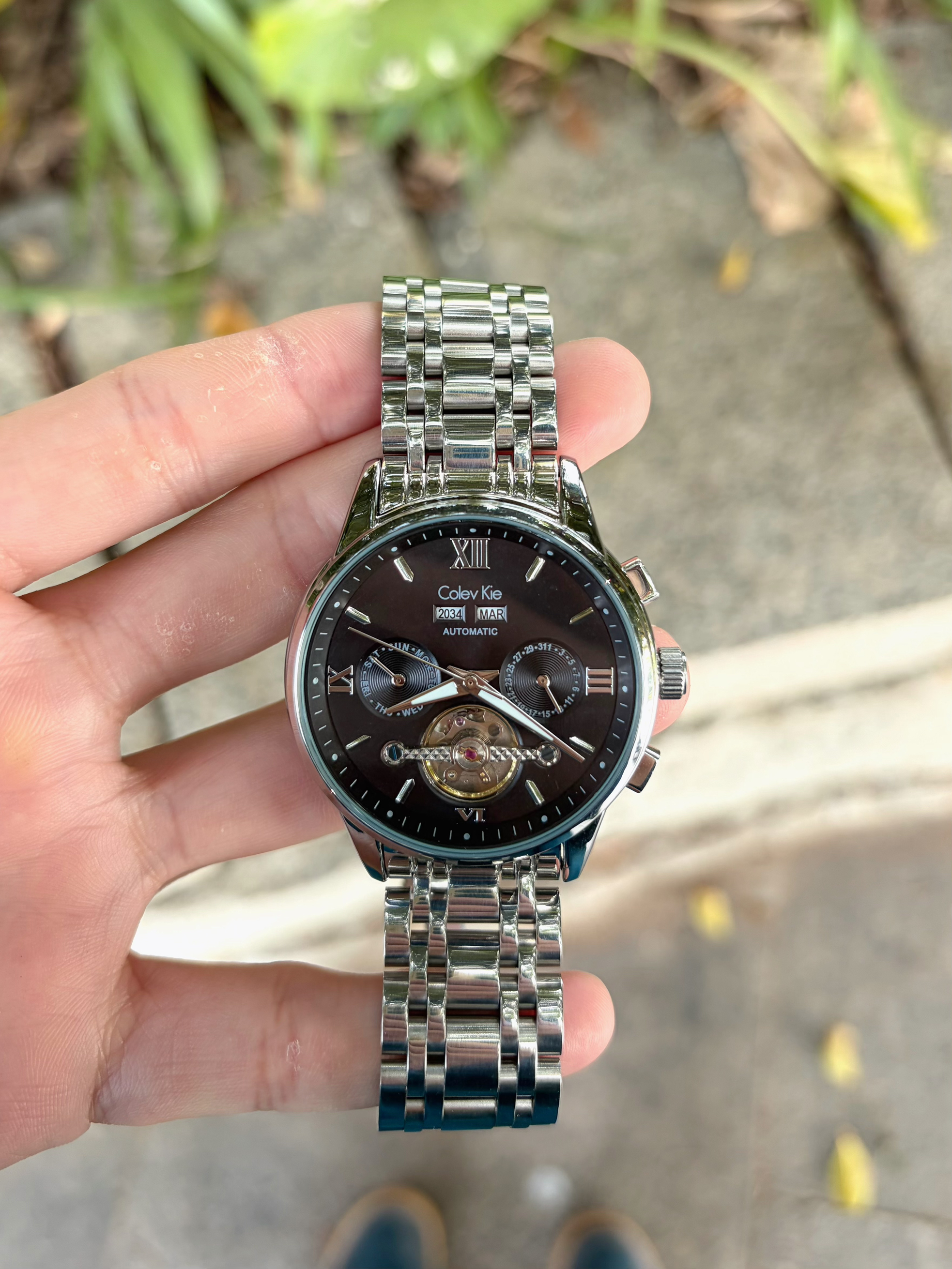 出门总爱用一块表来提提气场🌟 凯乐曼莱Colevkie 这款⌚️ 自动机械机芯⚙️ 镂空设计在光线下很有层次 多功能双历表盘质感十足 精钢表带利落 自带皮表带切换 礼盒送礼也是心意满满🎁 搭件蓝拼色外套👔和迷彩裤👖 日常出街也能穿出自己的调调🚶