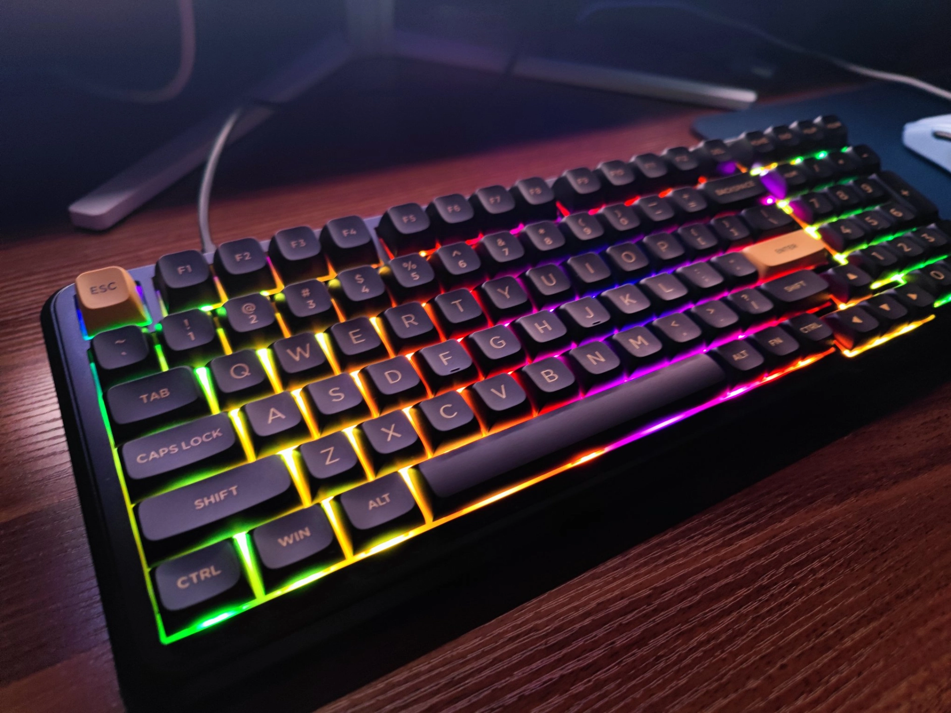 本篇笔记关联了MC/迈从 K99 V3 三模 机械键盘 98配列 多功能旋钮 双8K回报率 0.125ms超低延迟 ARGB环绕氛围灯效 客制化 鎏金黑 等商品,为用户提供真实的使用体验和购买参考。