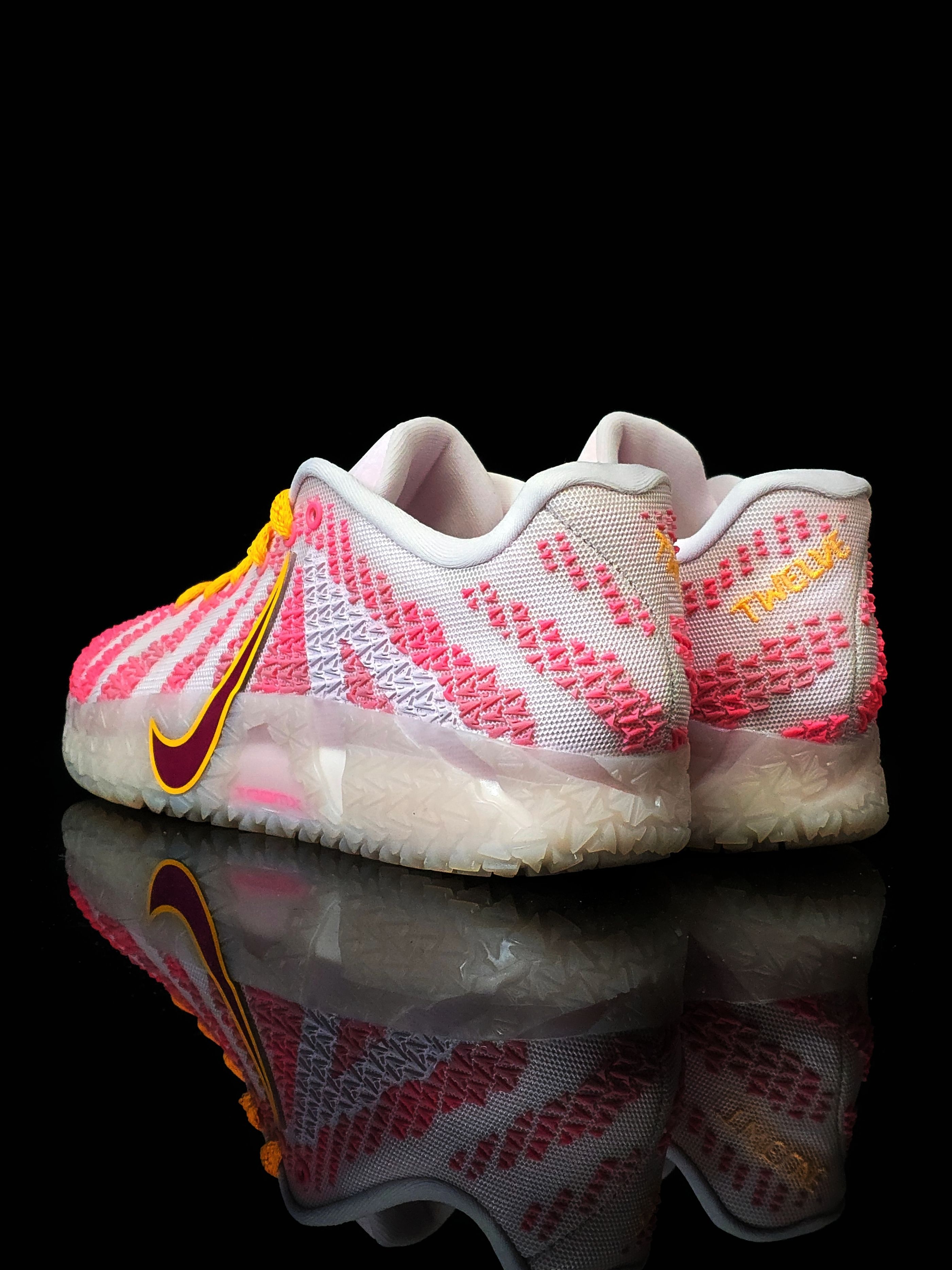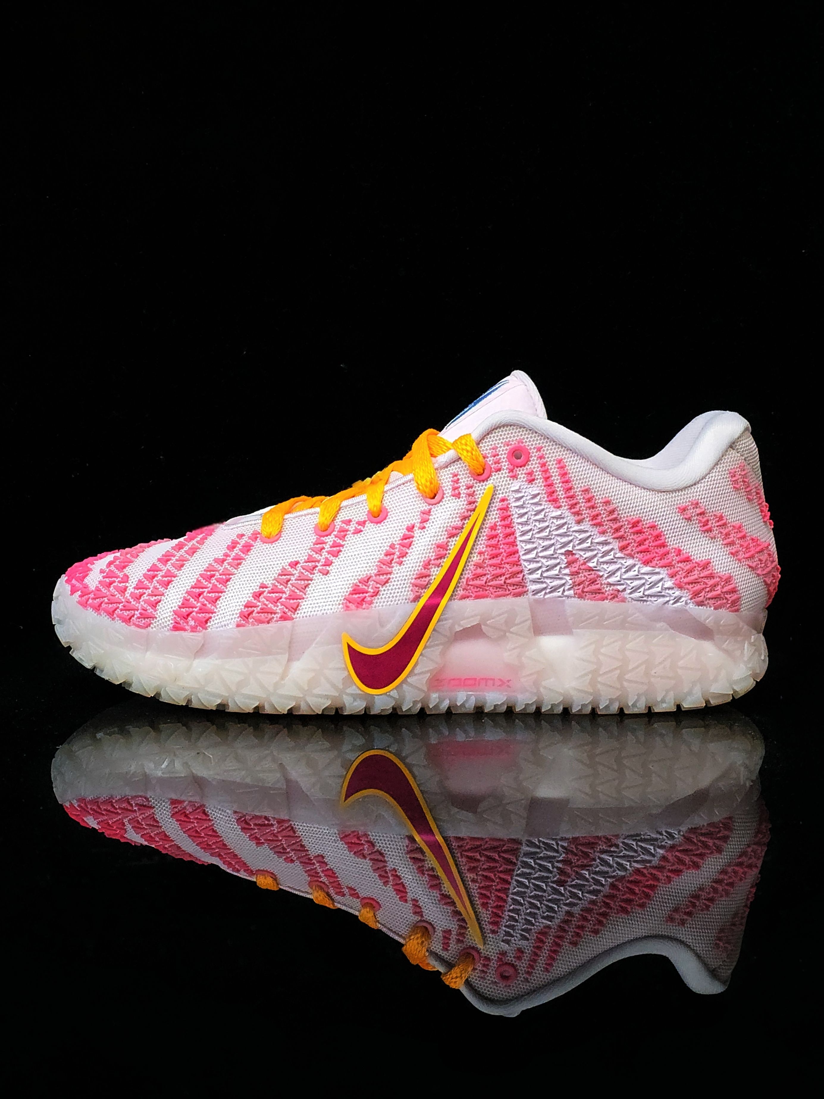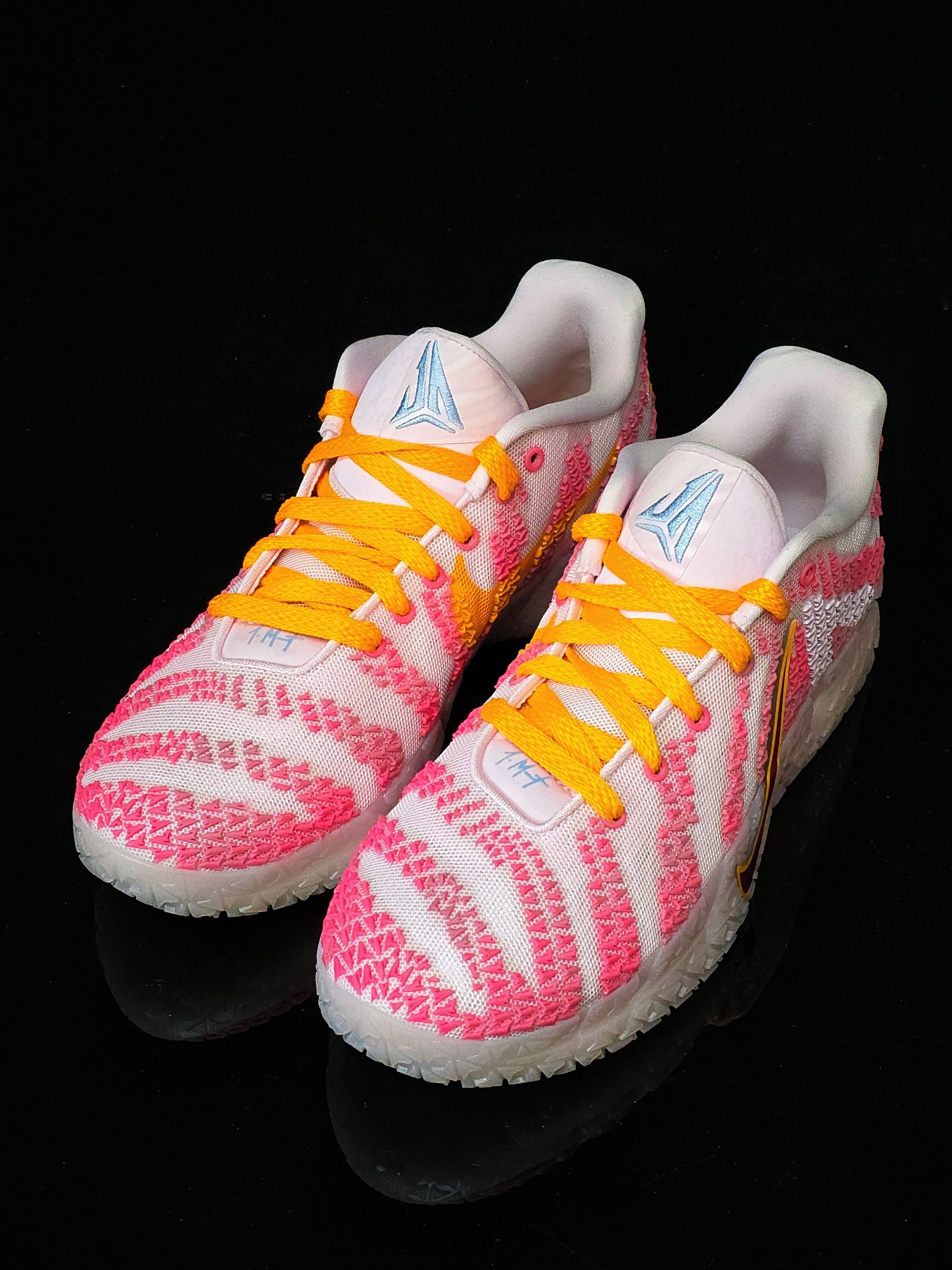 孟菲斯枪王的情人节战靴,鞋身粉白渐变搭配亮橙色Swoosh,看着就像草莓味棉花糖,穿上它打球,对手可能被甜到犯规哦!远看是“草莓味篮球鞋”,近看是“莫兰特の熊爪日记”,穿上它打球,既能当球场MVP,又能当情人节氛围组组长!