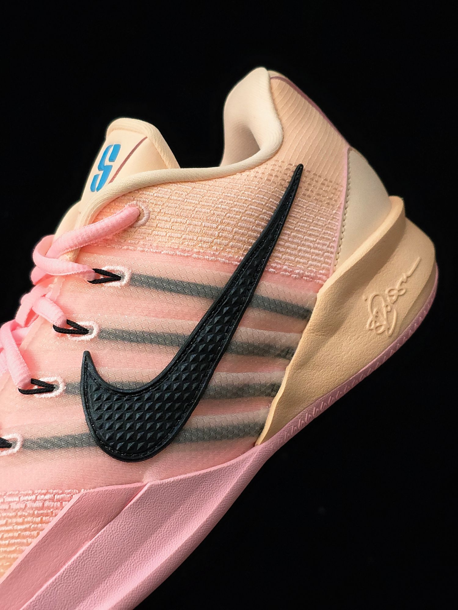 学生党可以看一下这双萨布丽娜3的粉色球鞋,六开价位,粉色渐变鞋面搭配黑色Swoosh标志,清新亮眼够抢镜,实战或者潮搭都好看呀!包裹和锁定都很出色,中底缓震韧弹,重心低贴地感强,适合速度型打法!不过中底缓震极限较低,大体重慎入!尖头窄楦,宽脚胖脚不太友好!