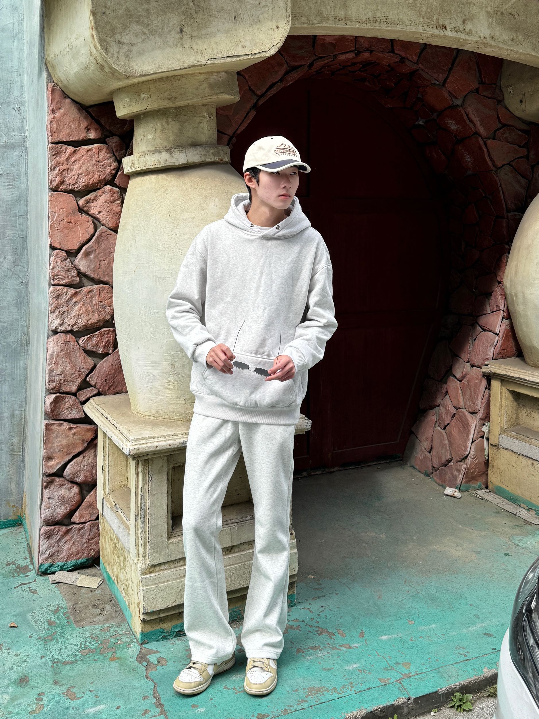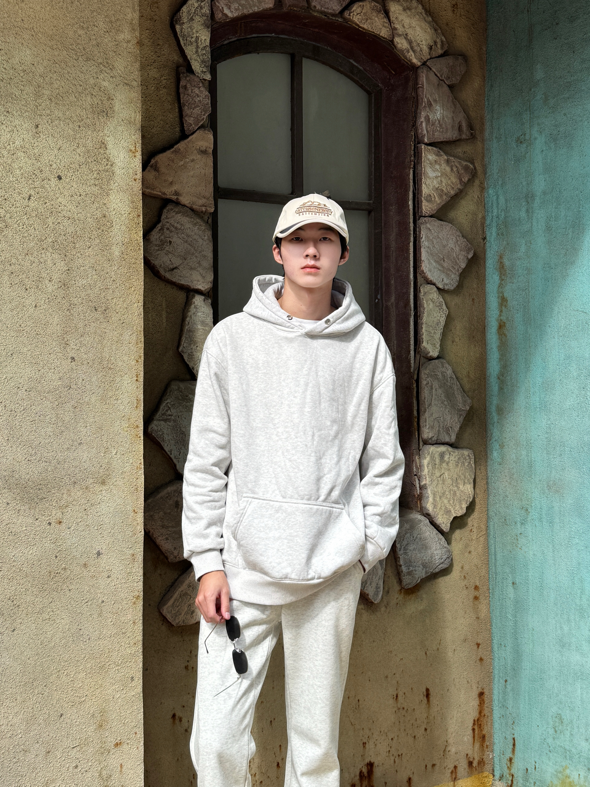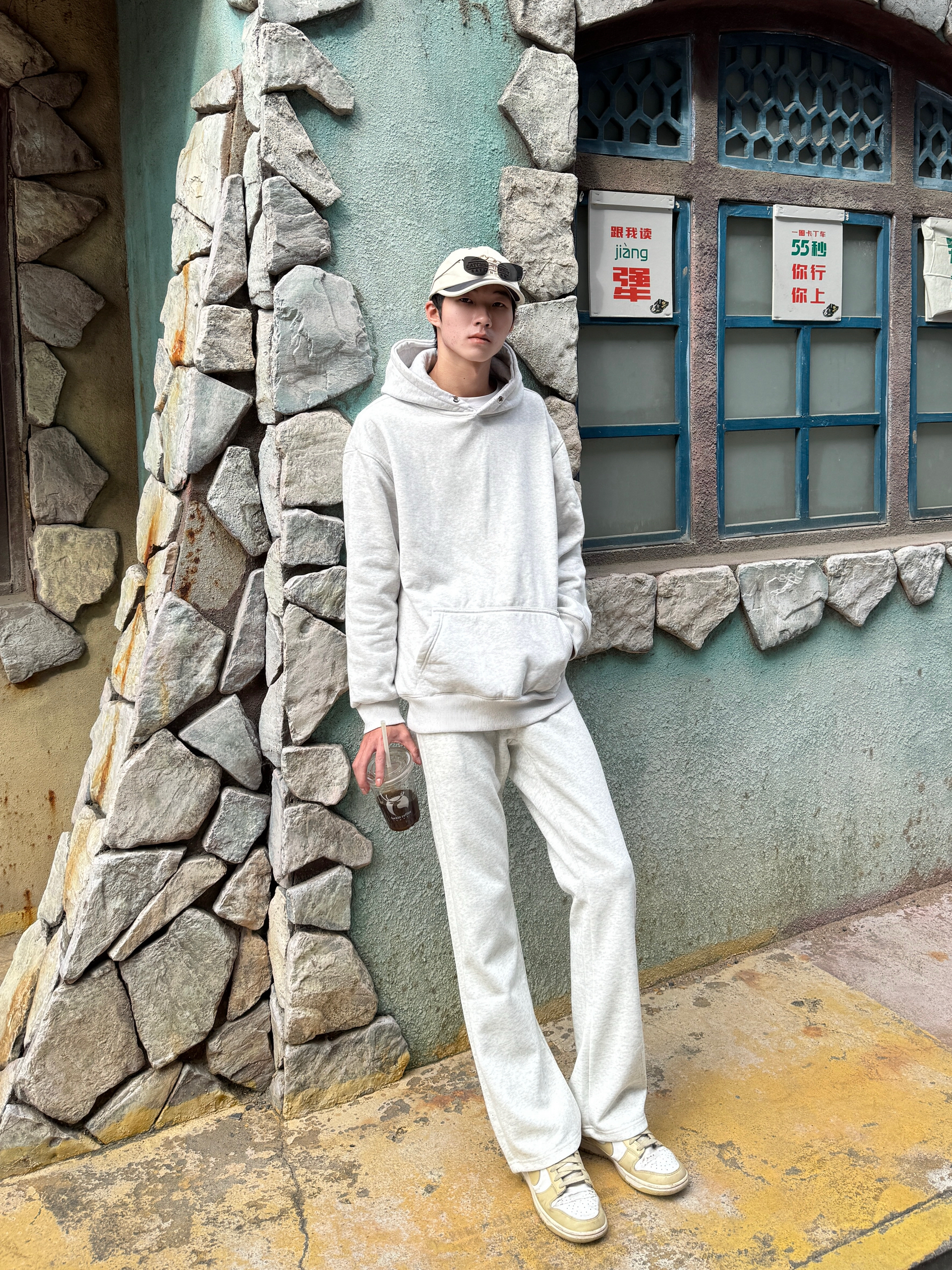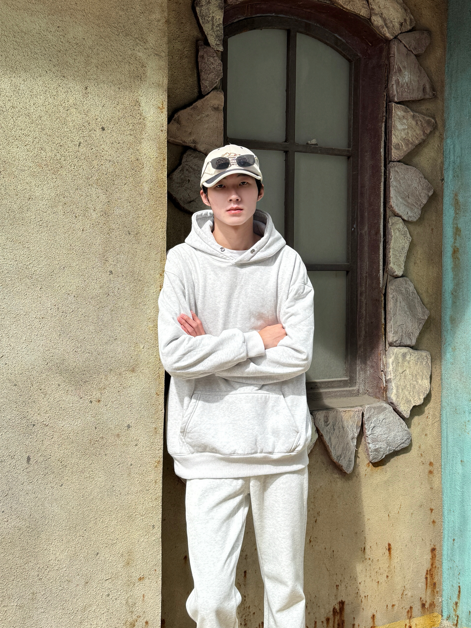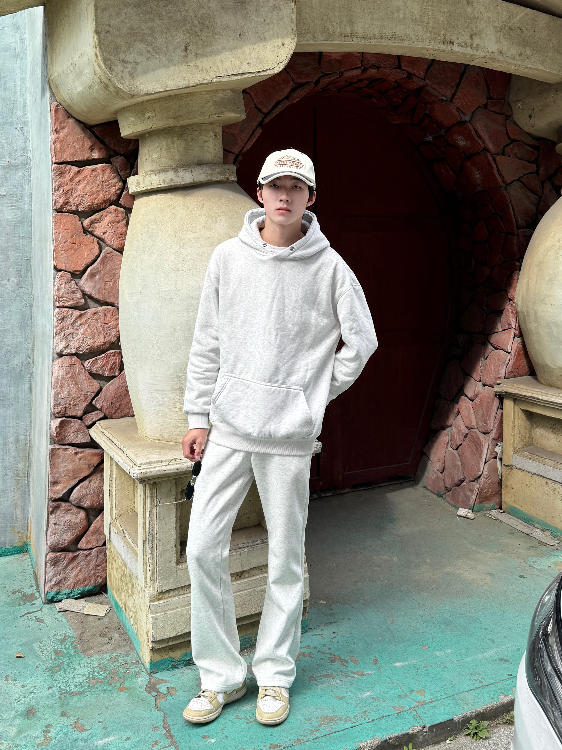 今天直接一套卫衣套装出门 白花灰连帽卫衣自带杂色纹理 单穿就很有细节感 同色系白花灰微喇卫裤 裤脚微喇设计悄悄拉长腿型👟 全身同色不同质 灰白层次像自带柔光滤镜 舒服又显高级感 一套搞定不用想 懒人出门的颜值巅峰😌✨