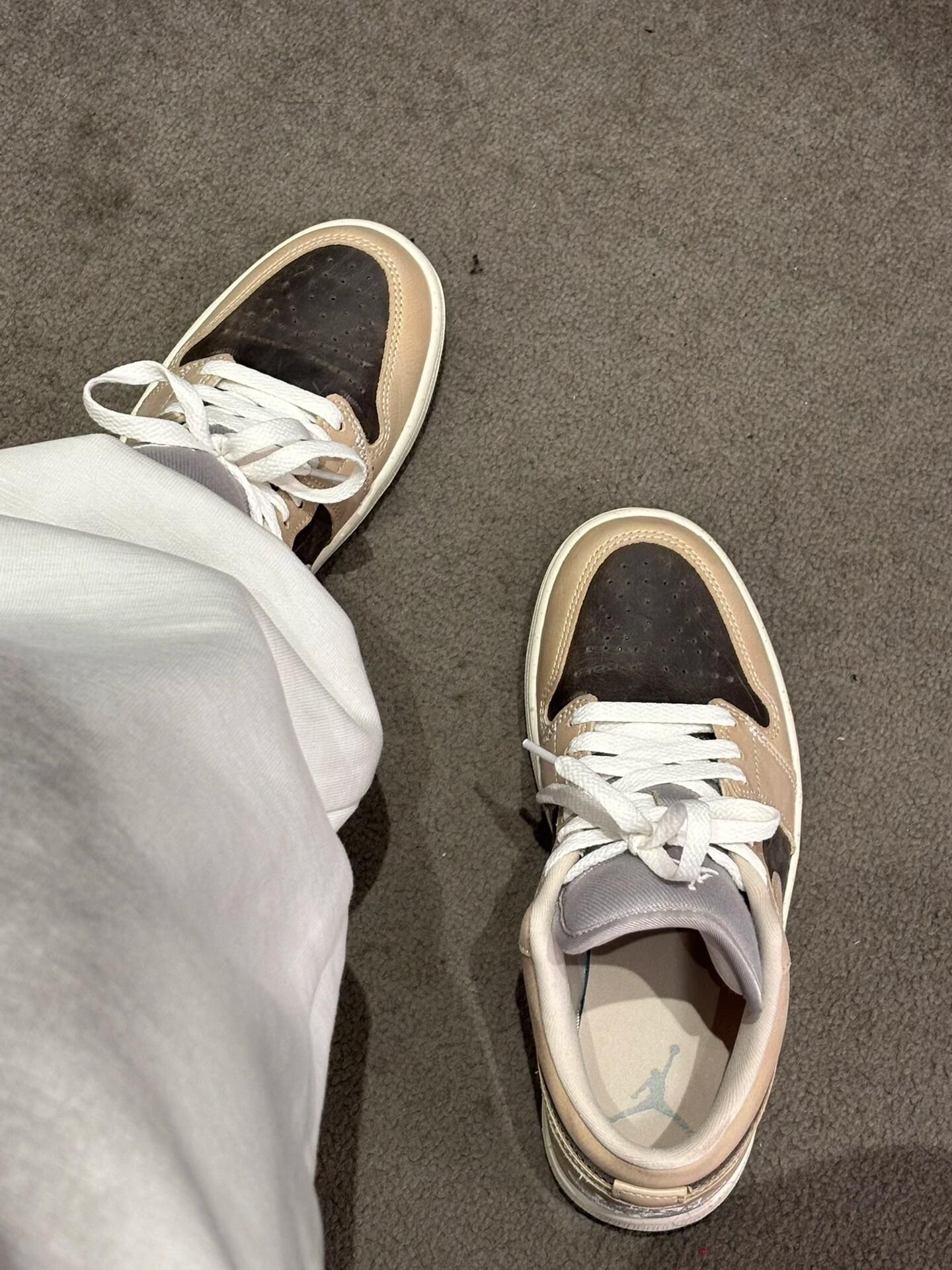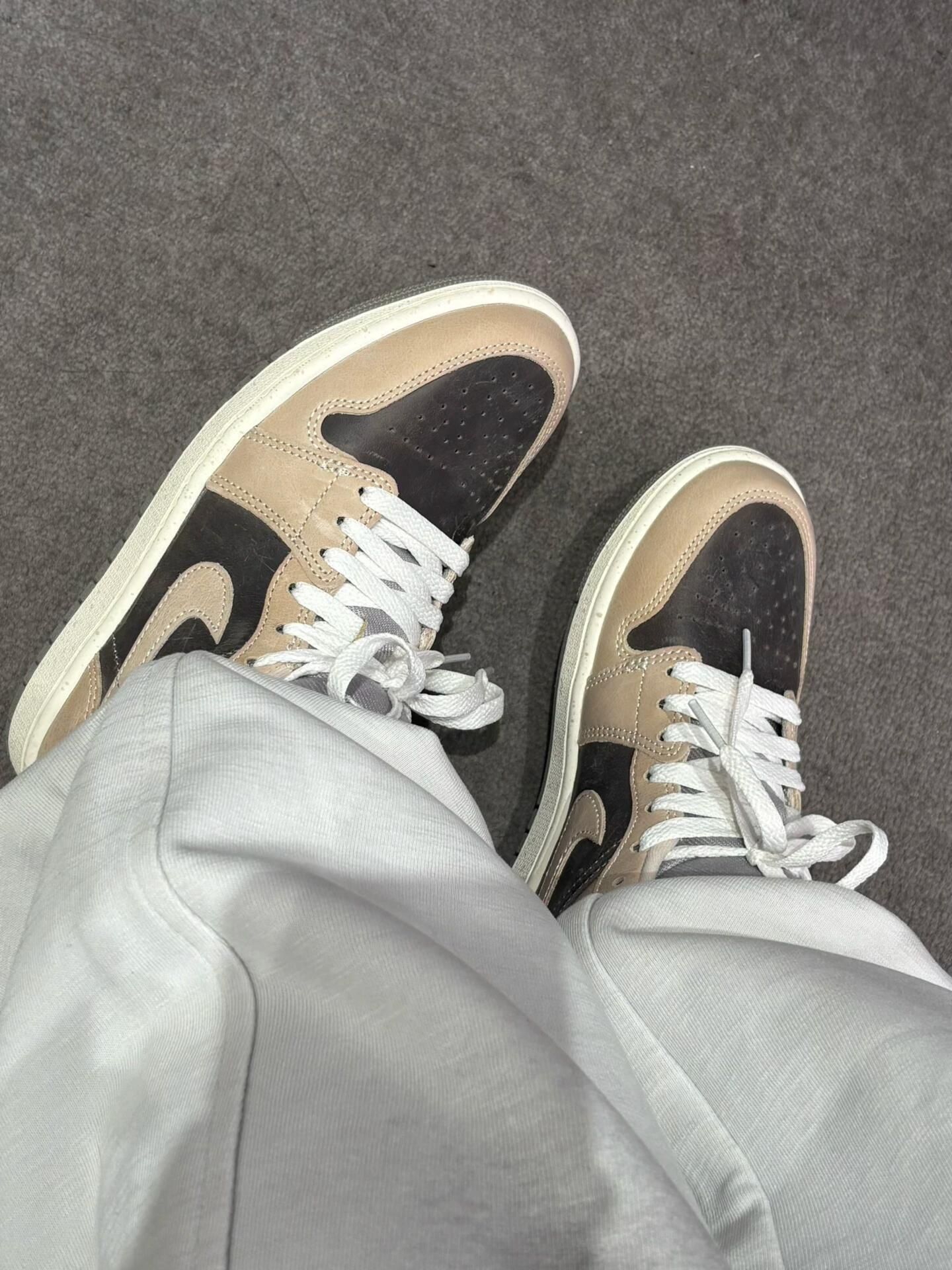 一整个爱住!AJ1尽然出了沙漠棕! 复古做旧真的有沙漠的感觉🏜️ 麂皮皮革拼接 质感高级又耐造~ 经典AJ1鞋型 低帮上脚巨显腿细😋 搭牛仔裤/工装裤 韩系休闲风拉满! 配运动卫裤/小裙子 甜酷少女感拿捏~ 日常上学通勤 出街游玩都适配 闭眼入✌🏻