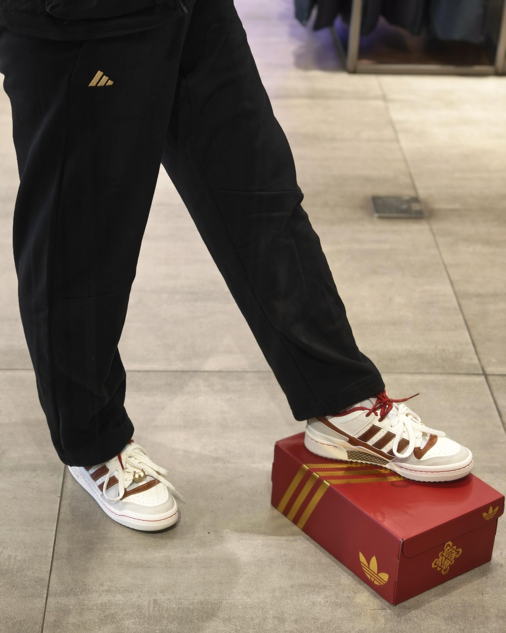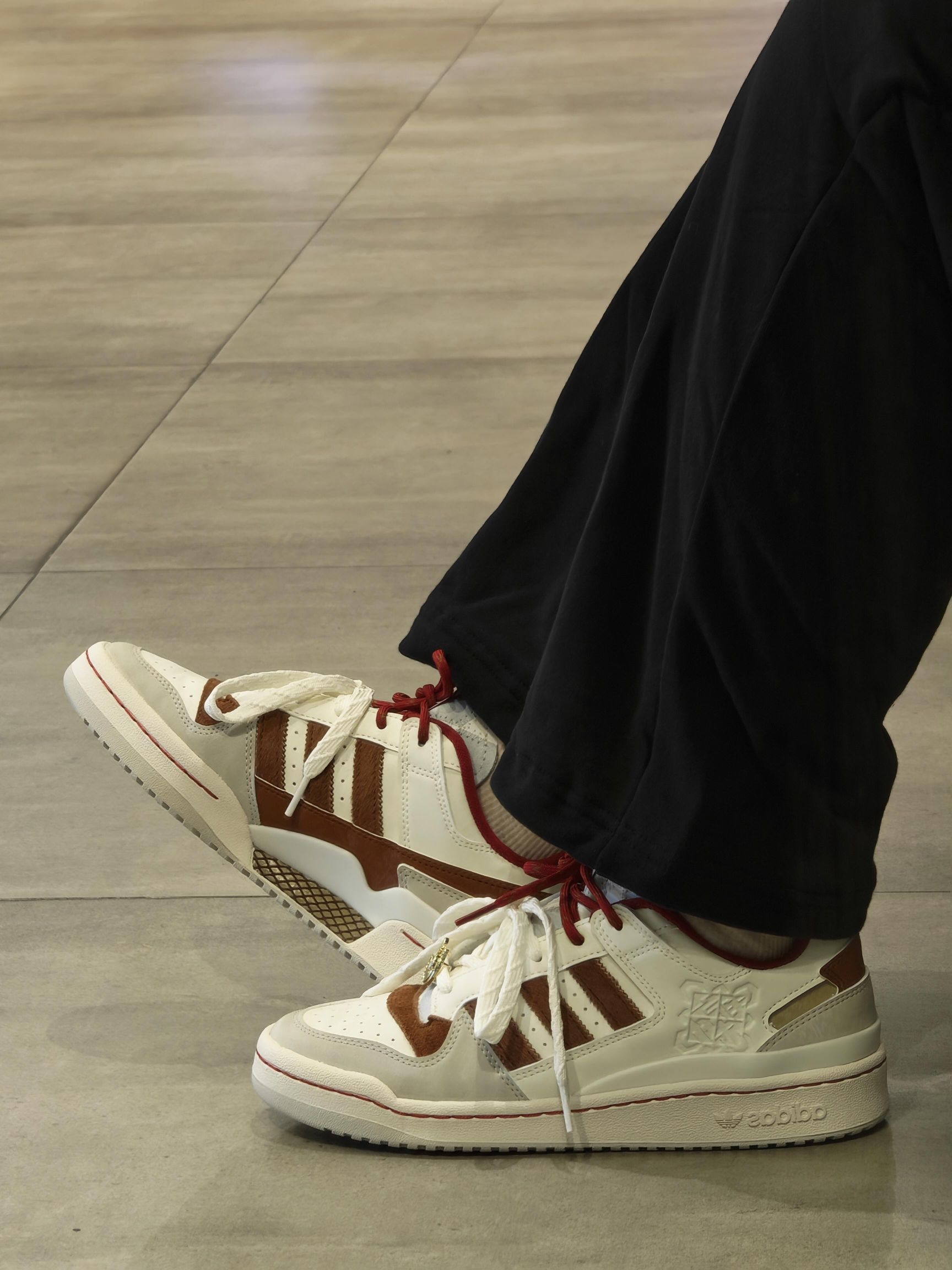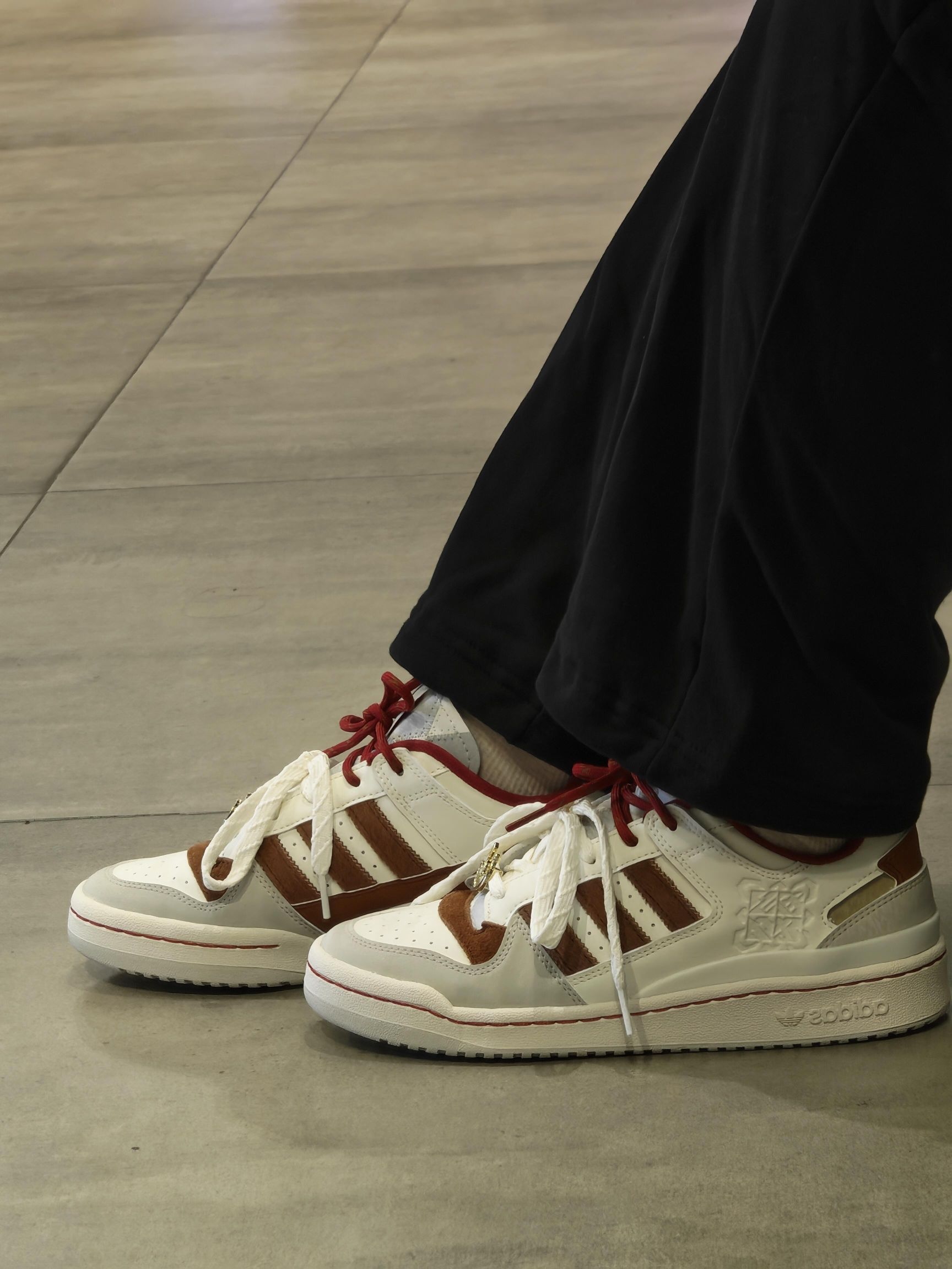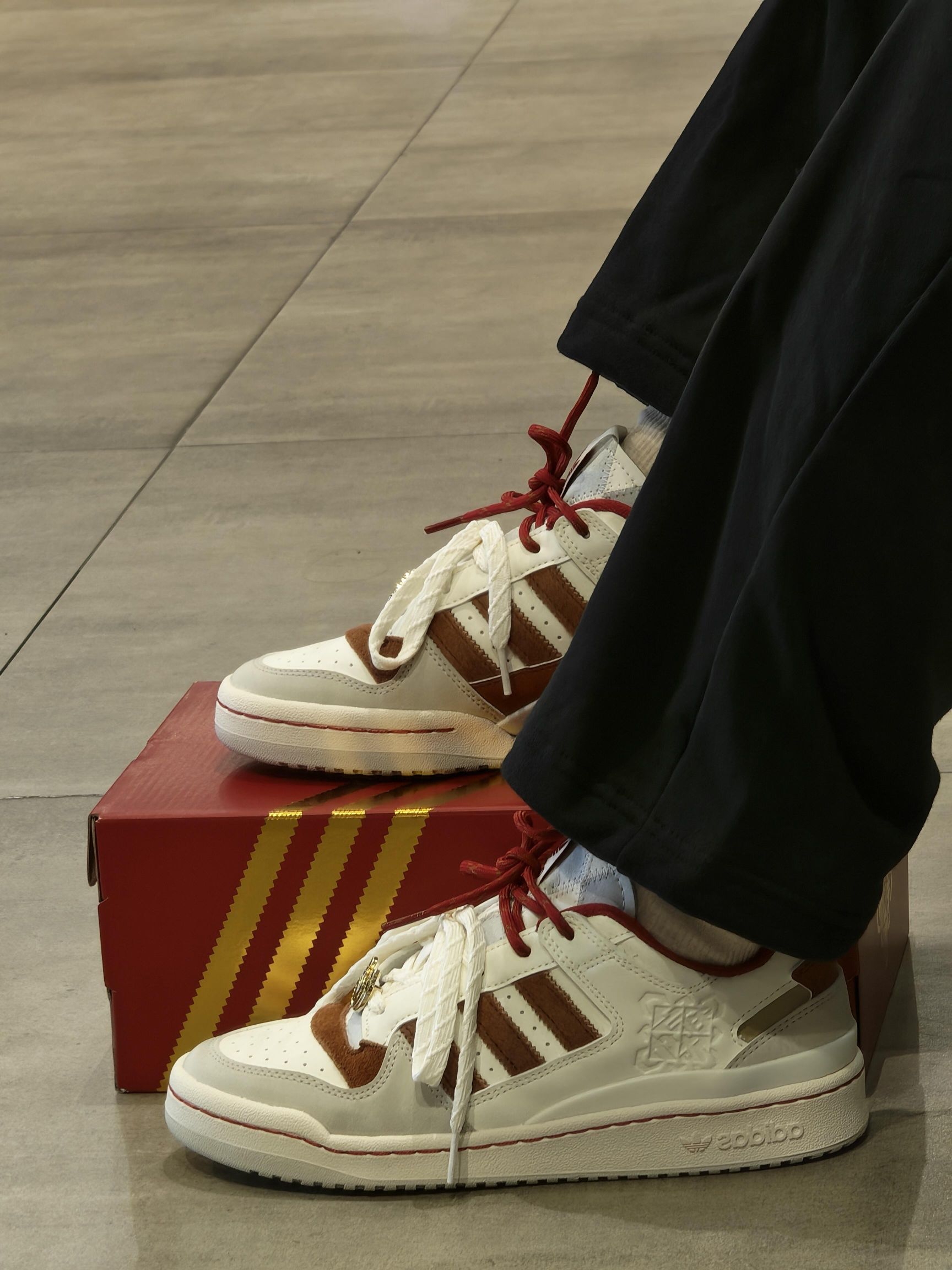 谁能拒绝一双年味满满的板鞋啊!阿迪这双马年限定配色真的绝,米白+焦糖棕复古感拉满,细节处的红绳和马纹设计超有心意,脚感也很在线,日常搭配休闲裤、牛仔裤都超百搭~