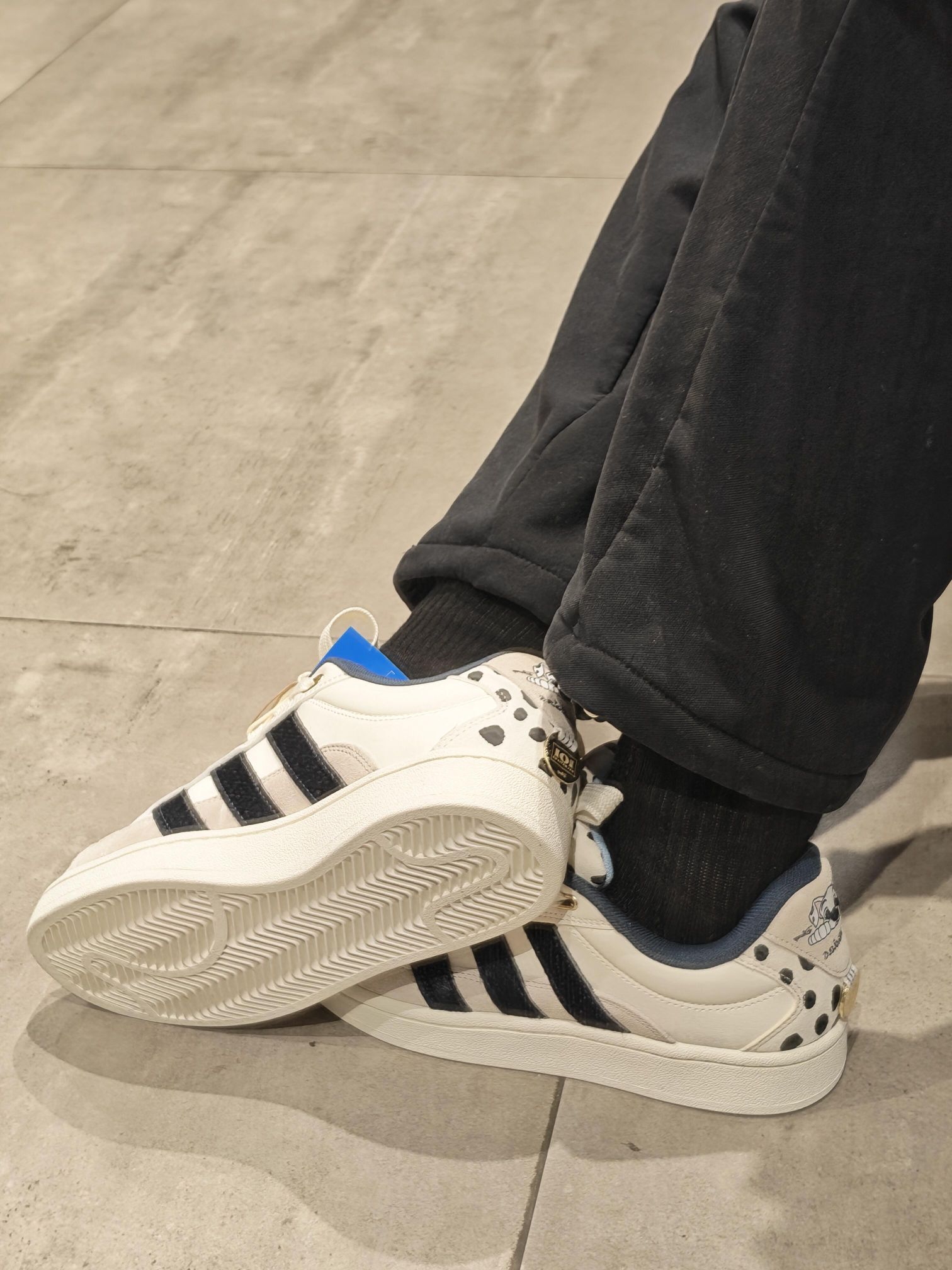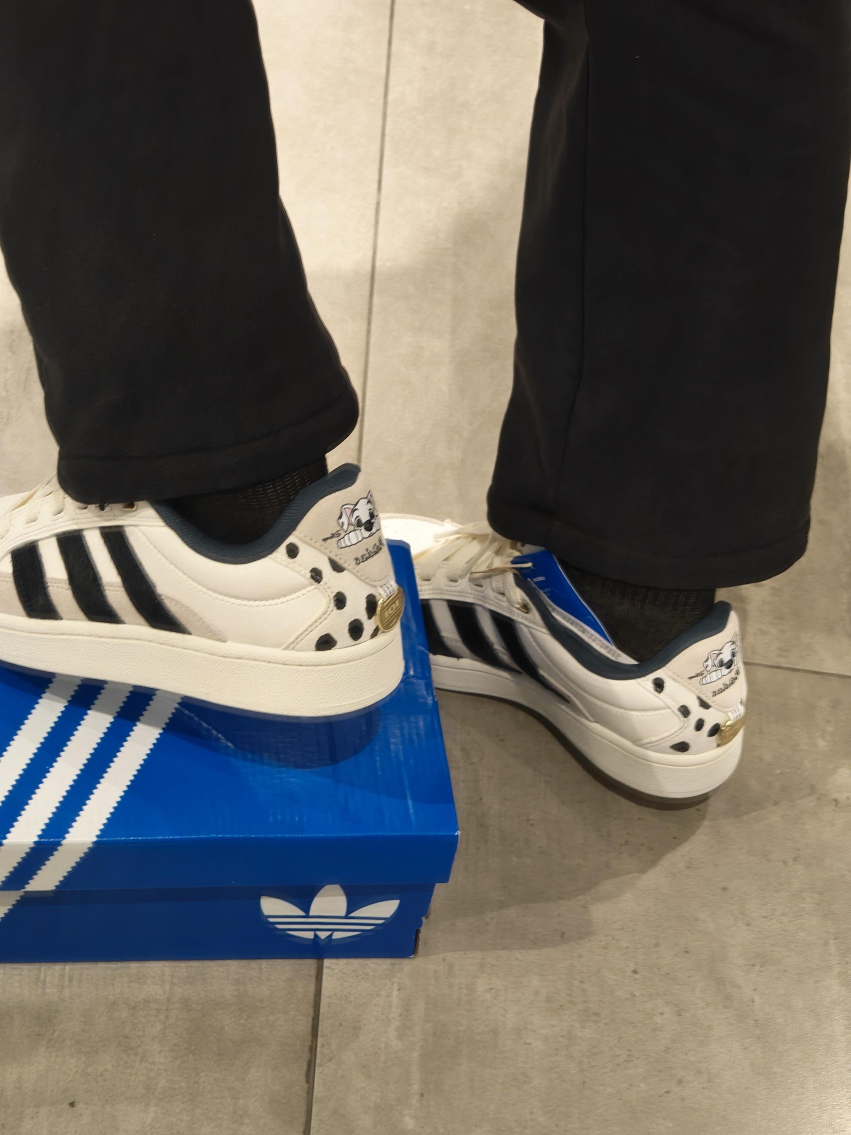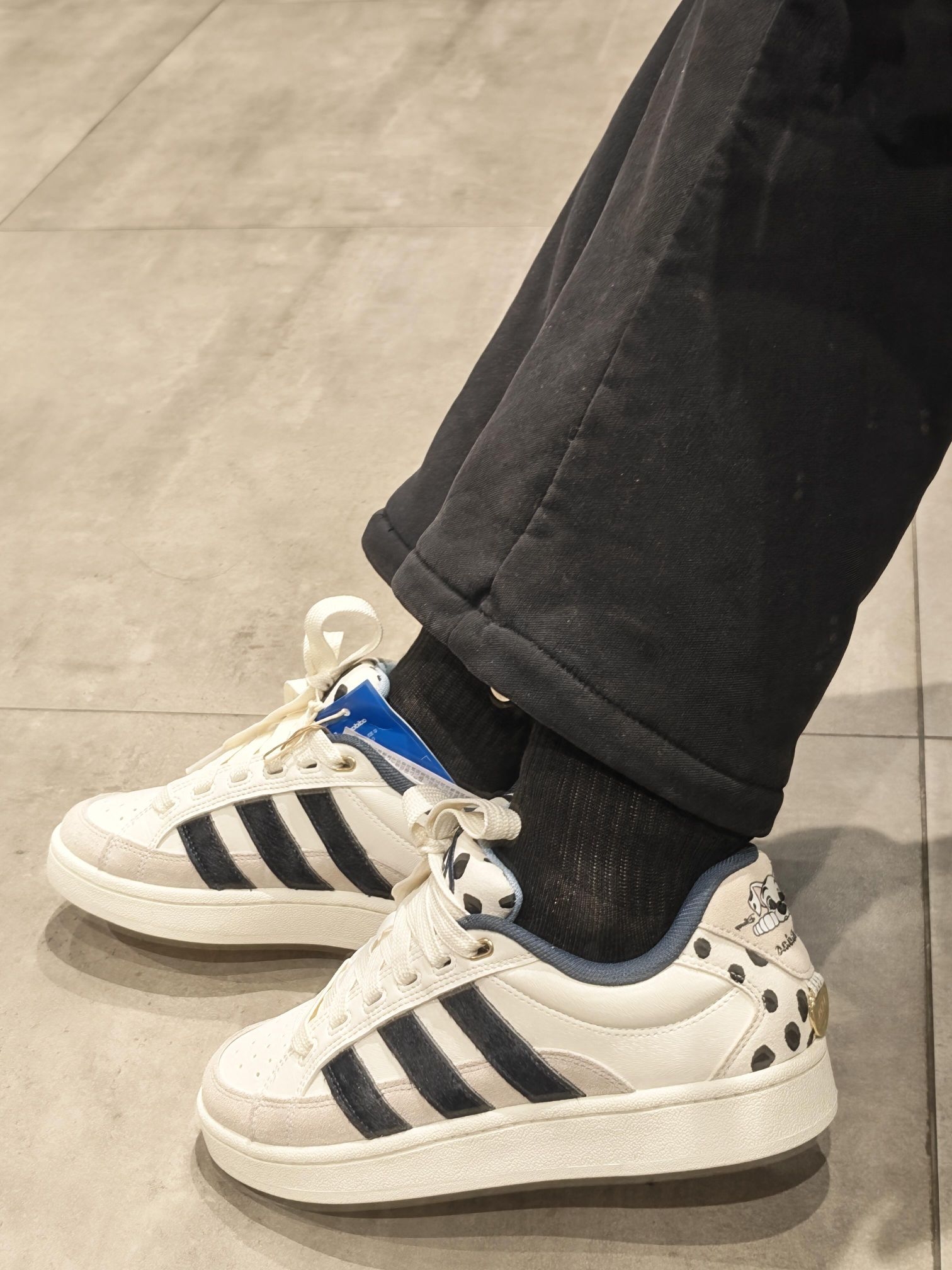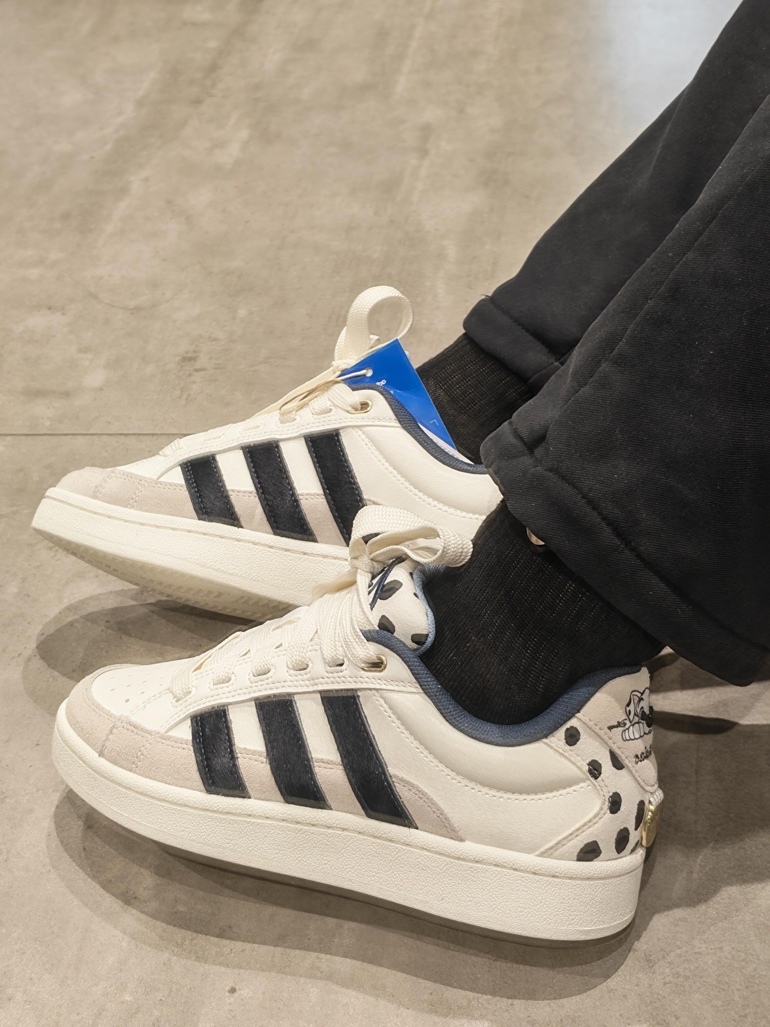 谁懂啊!三叶草和101忠狗的联名真的杀疯了😭 奶白+黑斑点的配色,鞋后跟还有可爱的狗狗头像,复古板鞋版型又甜又酷,上脚巨显腿细! 脚感软软的,暴走一天也不累,配卫衣、牛仔裤都超搭,可爱和帅气直接拉满! 这波童年回忆杀,我先冲为敬了!