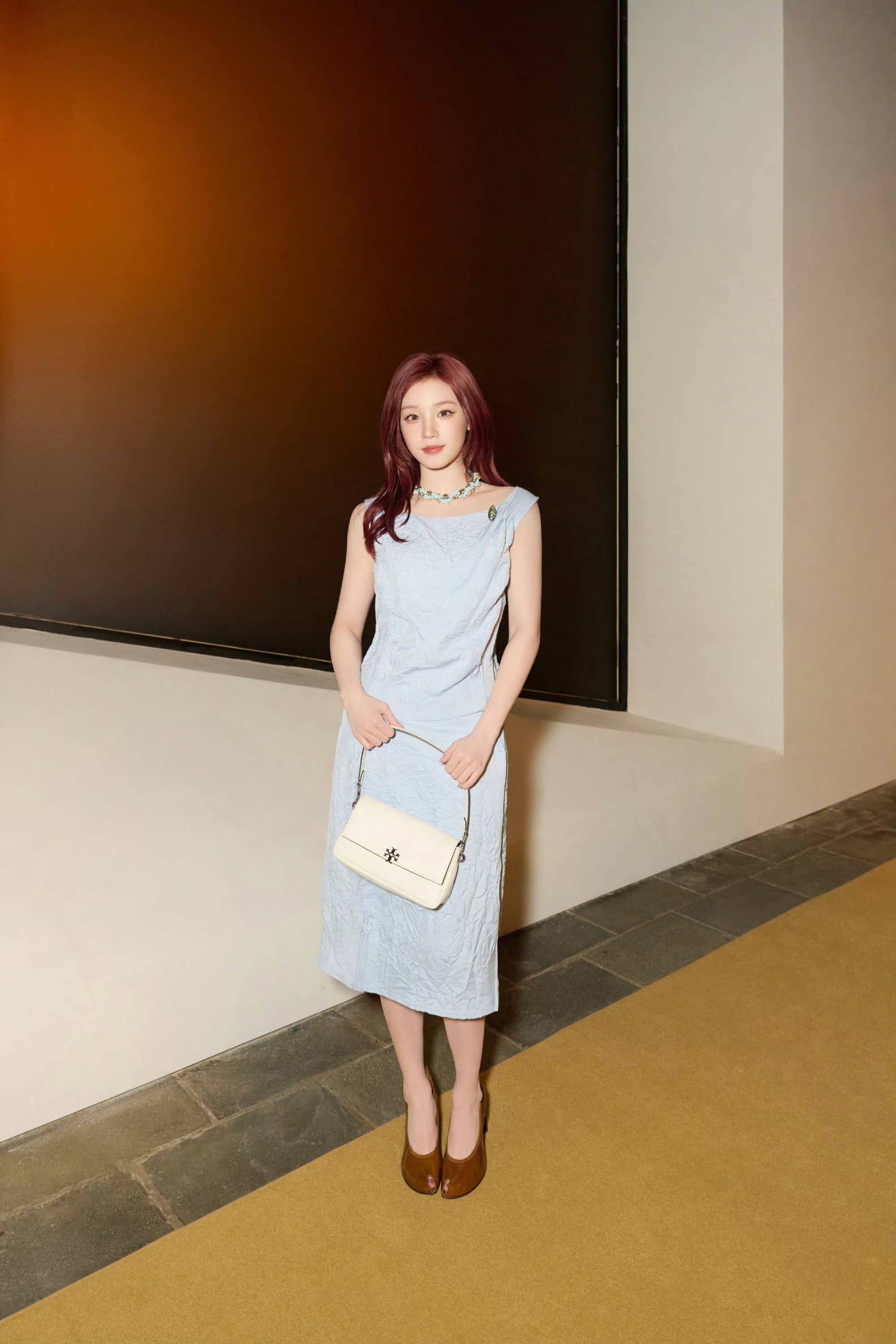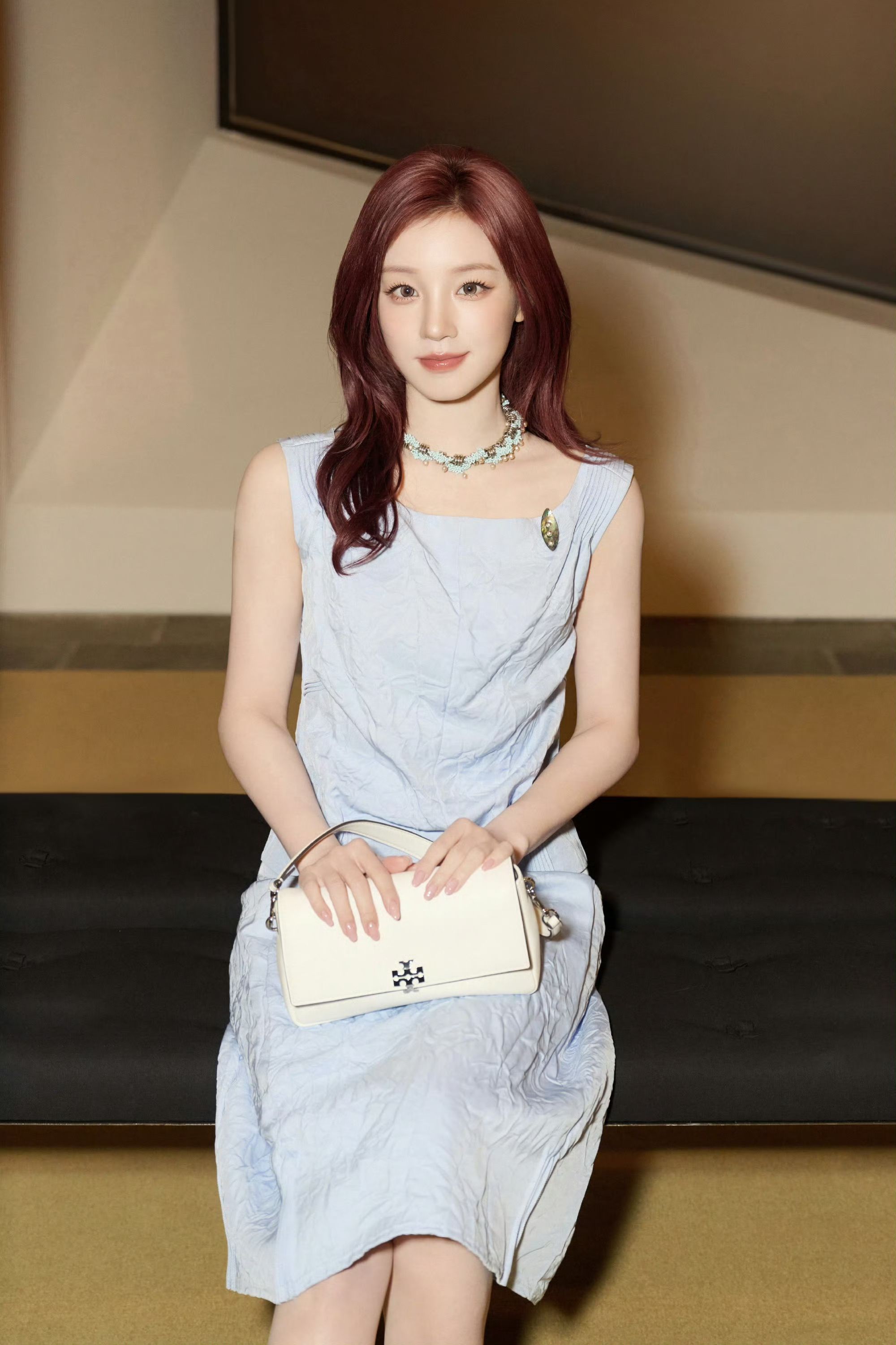 谁懂啊!刷到宋雨琦这套Tory Burch活动图,我直接被戳中审美点了! 淡蓝色的褶皱套装真的太会了,自带肌理感的面料,不刻意却很有细节。无袖上衣+同色系半裙,把肩颈线条和腰线都衬得干净利落,温柔又干练,完全是那种“不用费力就很好看”的松弛感。 白色腋下包和棕色玛丽珍鞋的搭配,清爽又高级,低饱和度配色对黄皮也很友好,通勤、约会、下午茶都能穿。 我已经把这套加入我的“想穿清单”了,这种温...