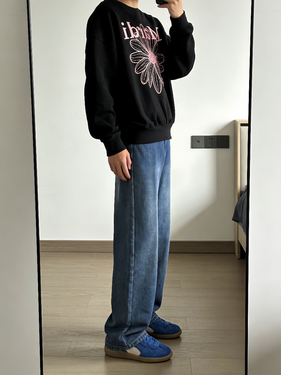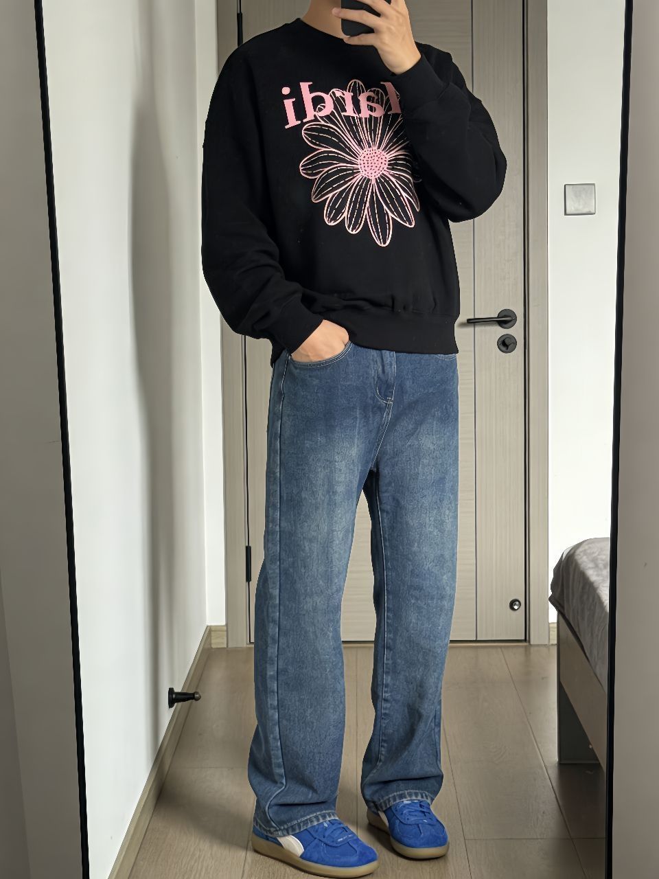 🌈🌈这件小雏菊卫衣一眼相中,正面印花很加分。裤子是复古水洗牛仔裤,版型直筒不挑腿,微松紧腰吃饱了也不用松皮带。德训鞋最近天天穿,蓝米配色巨好搭,鞋底软走路不累脚。一套下来就是那种随便套上就能出门,但又让人觉得你用了心的穿搭。卫衣厚度刚好适合现在天气,牛仔裤配德训鞋还有点复古味,反正我今天是没换衣服直接逛街去了。