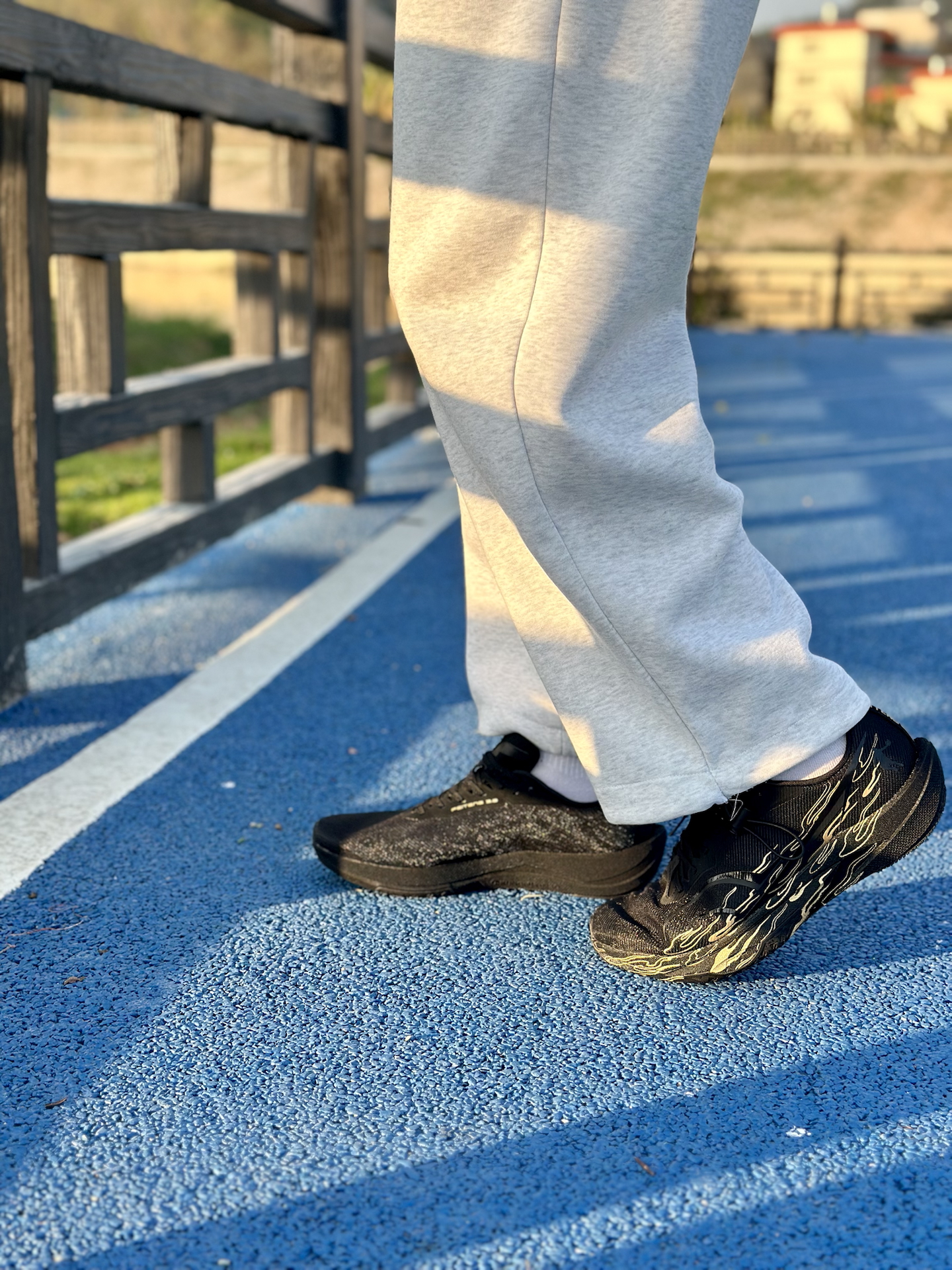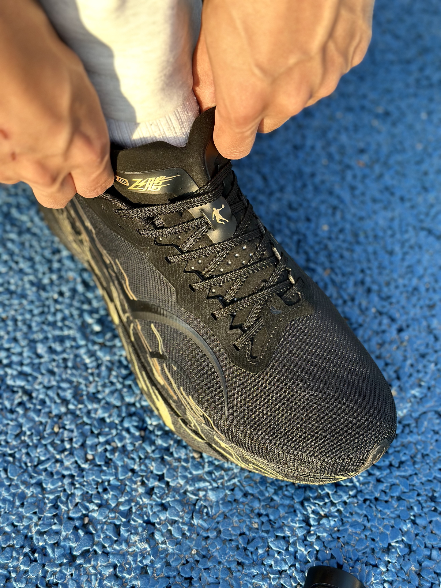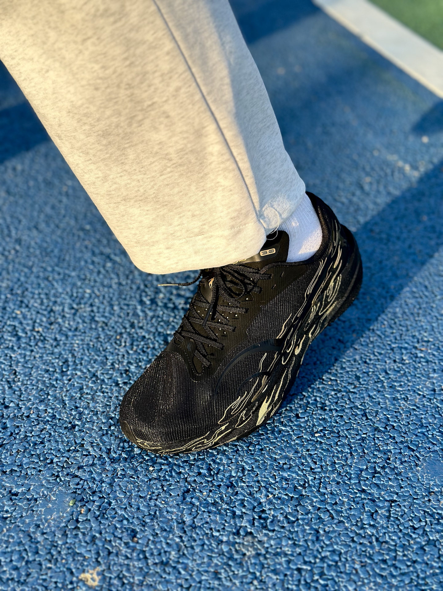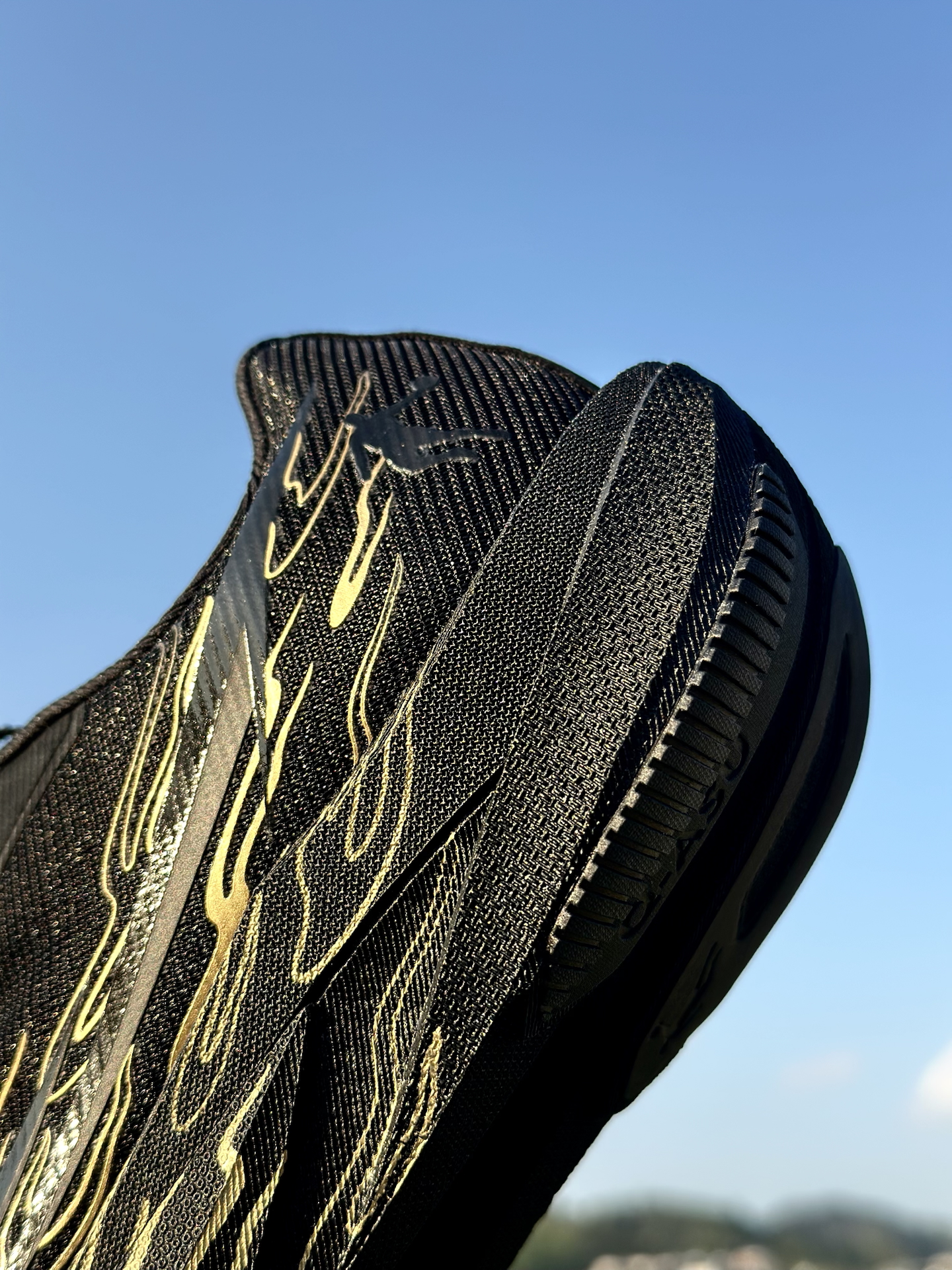 这双乔丹飞腾3.0“烧高香”配色,我上脚感觉确实挺轻的,跑起来没什么负担。黑金火焰纹挺有辨识度,过年穿烧高香配色,明年开年也必须旺起来,这配色去操场也有人问过。 中底韧弹,场地感很明显,过弯的时候脚感挺稳,脚腕也不晃,成绩确实有提升。整体来说,体考党穿它挺靠谱的,开年需要备战体考体测的,可以考虑考虑。 #飞腾3.0弯道超车 #飞腾3 #跑鞋新品速递 #新年新战靴