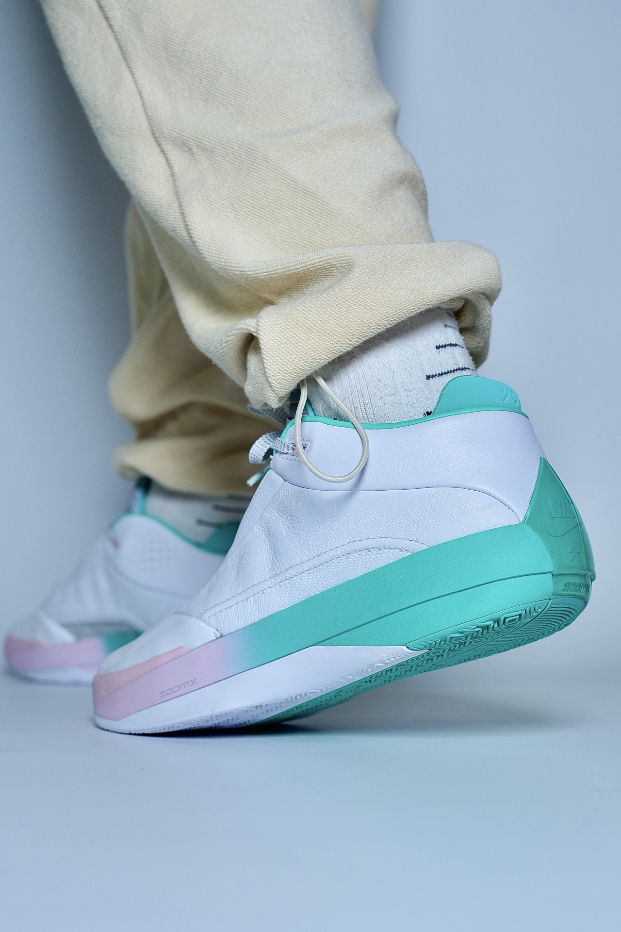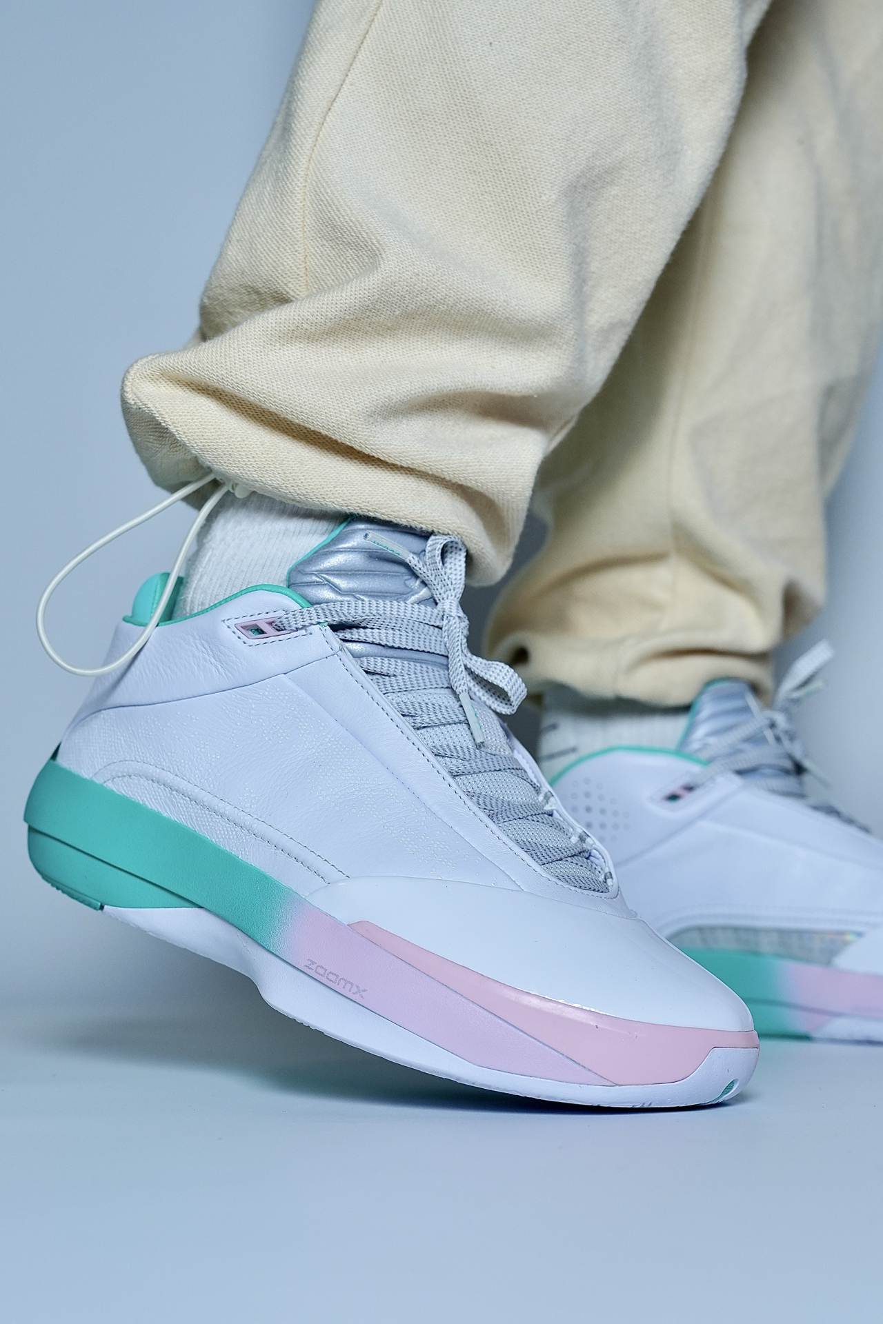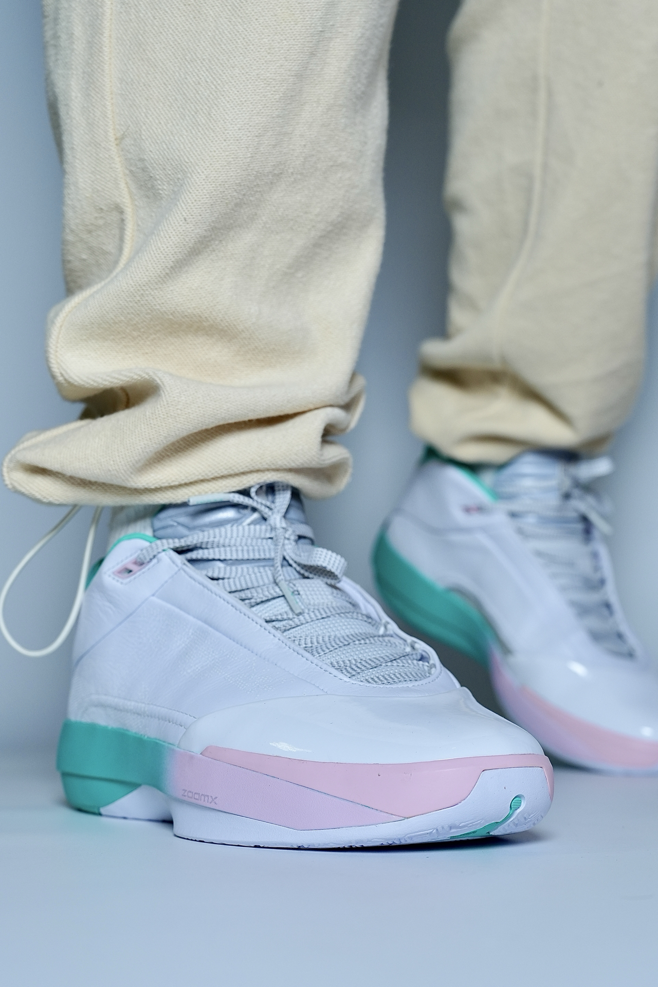 打球怕震脚、变向不稳、颜值拉胯?这双AJ40实战鞋直接解决。 白+粉绿渐变清爽耐看,实战出街都能搭。全掌ZoomX+Zoom缓震,落地软弹不震膝,大体重也稳。包裹贴合、锁定到位,人字底抓地靠谱,突破投篮都安心。 小提醒:宽脚选大半码,足弓弱可加鞋垫;重心偏高,脚踝力量一般的多适应。 颜值能打、实战够用,锋线与投篮型球员适配❗️ #新鞋零时差 #aj40郭艾伦pe #实战球鞋闭眼入 #后卫中锋...