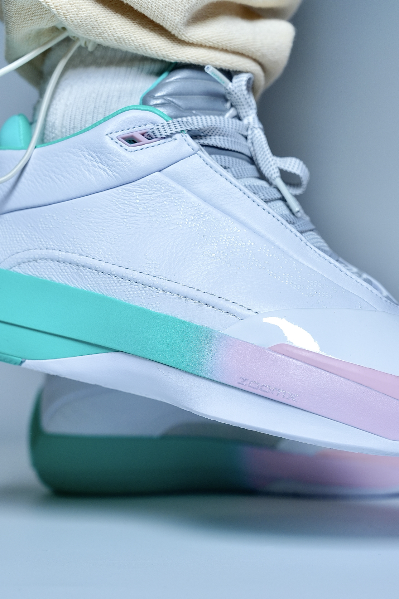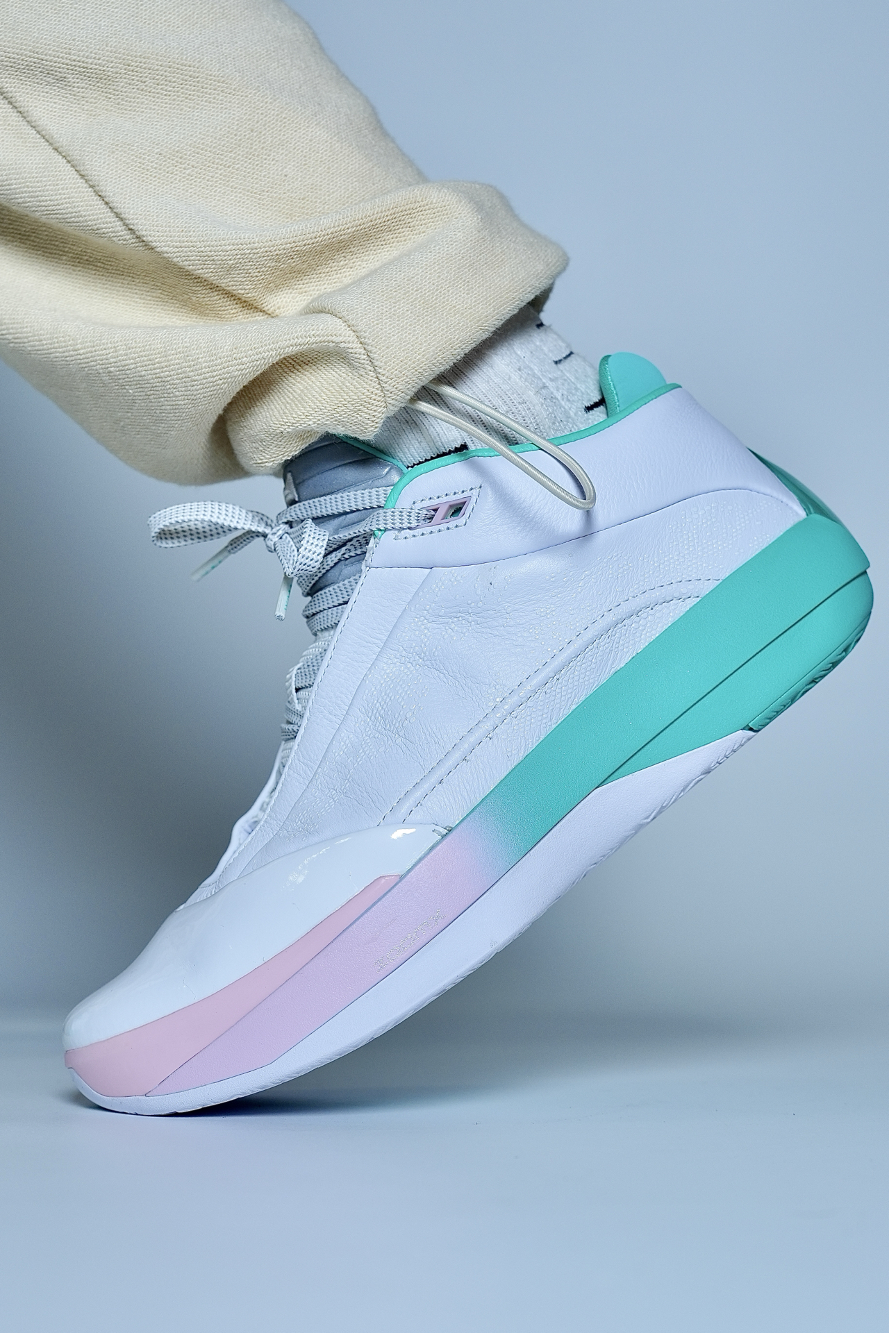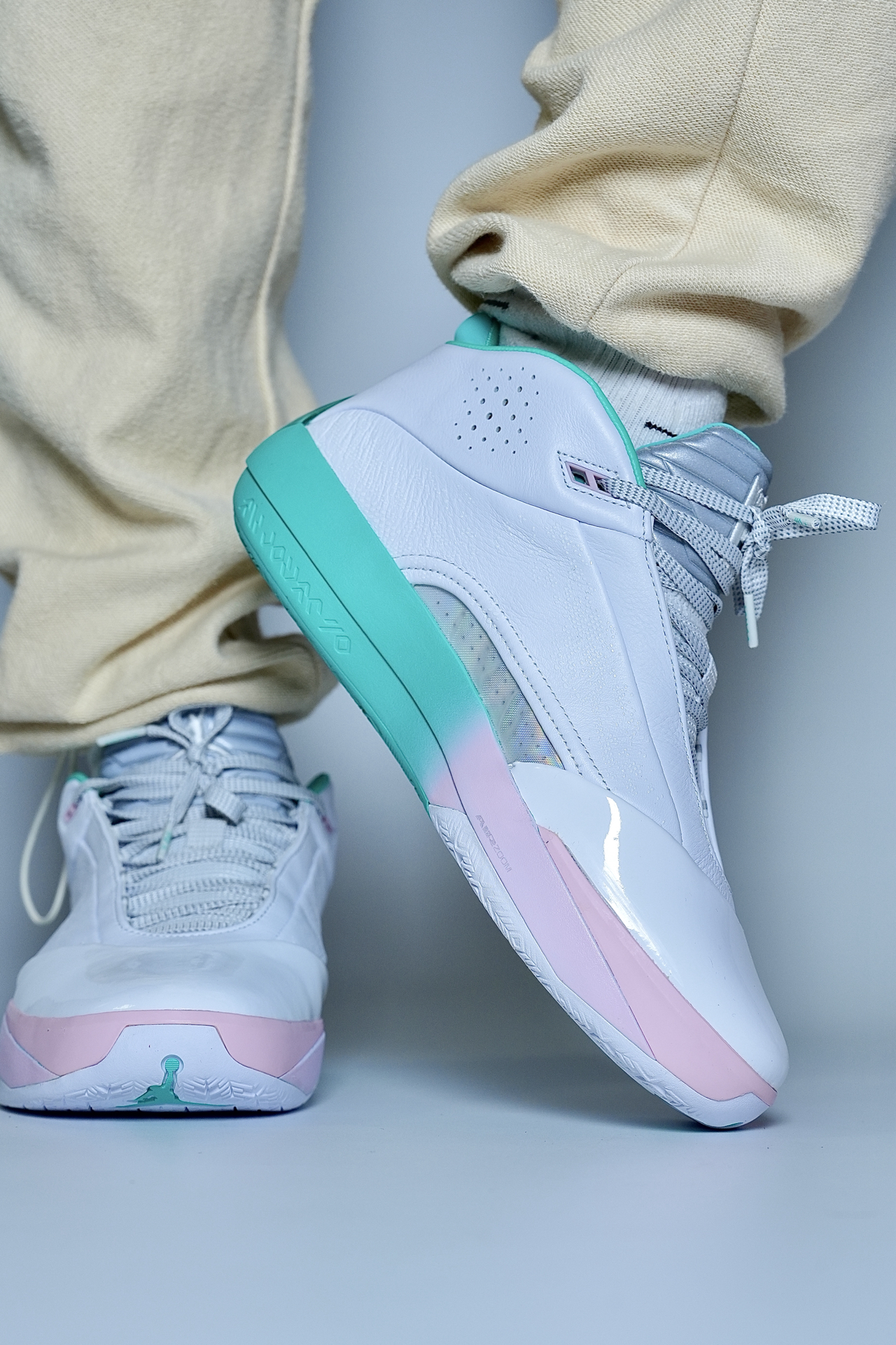 打球怕震脚、变向不稳、颜值拉胯?这双AJ40实战鞋直接解决。 白+粉绿渐变清爽耐看,实战出街都能搭。全掌ZoomX+Zoom缓震,落地软弹不震膝,大体重也稳。包裹贴合、锁定到位,人字底抓地靠谱,突破投篮都安心。 小提醒:宽脚选大半码,足弓弱可加鞋垫;重心偏高,脚踝力量一般的多适应。 颜值能打、实战够用,锋线与投篮型球员适配❗️ #新鞋零时差 #aj40郭艾伦pe #实战球鞋闭眼入 #后卫中锋...