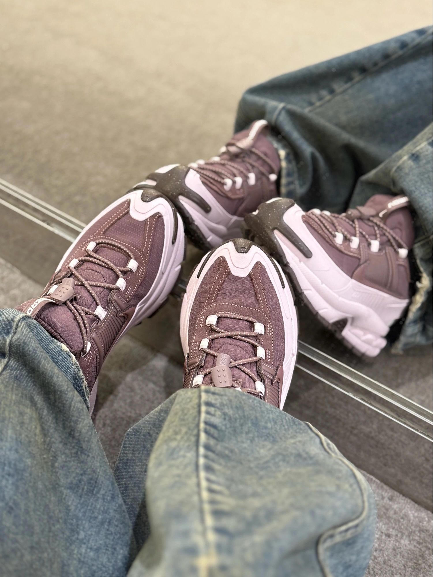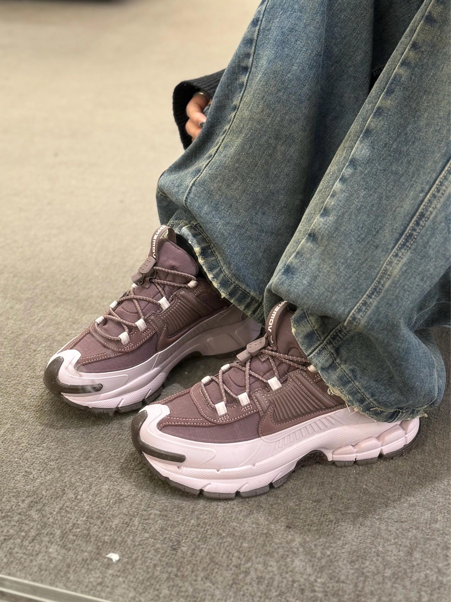 粉紫咖调配色低饱和又高级! 搭阔腿牛仔裤慵懒松弛感直线拉满❗️ 鞋型虽然是老爹鞋 但不显笨重 显脚小~ 悄悄增高不累脚🔝防风防泼水鞋面安全感Max! 新年穿它走亲访友都贼有面儿😃 新年穿新鞋 这双vomero直接焊在脚上啦!