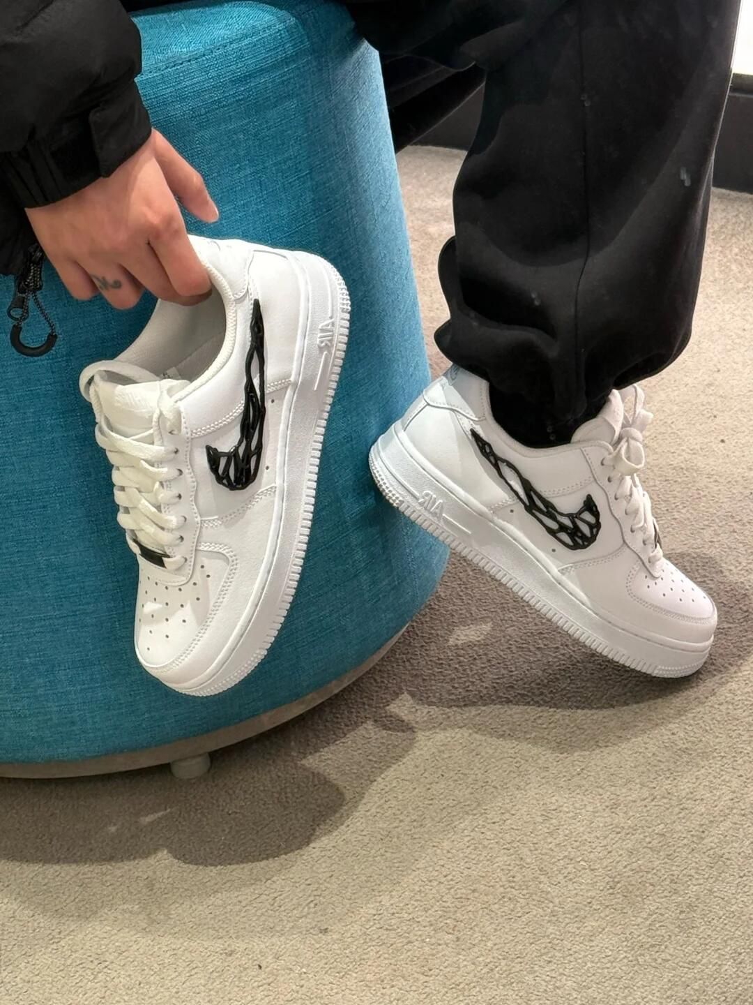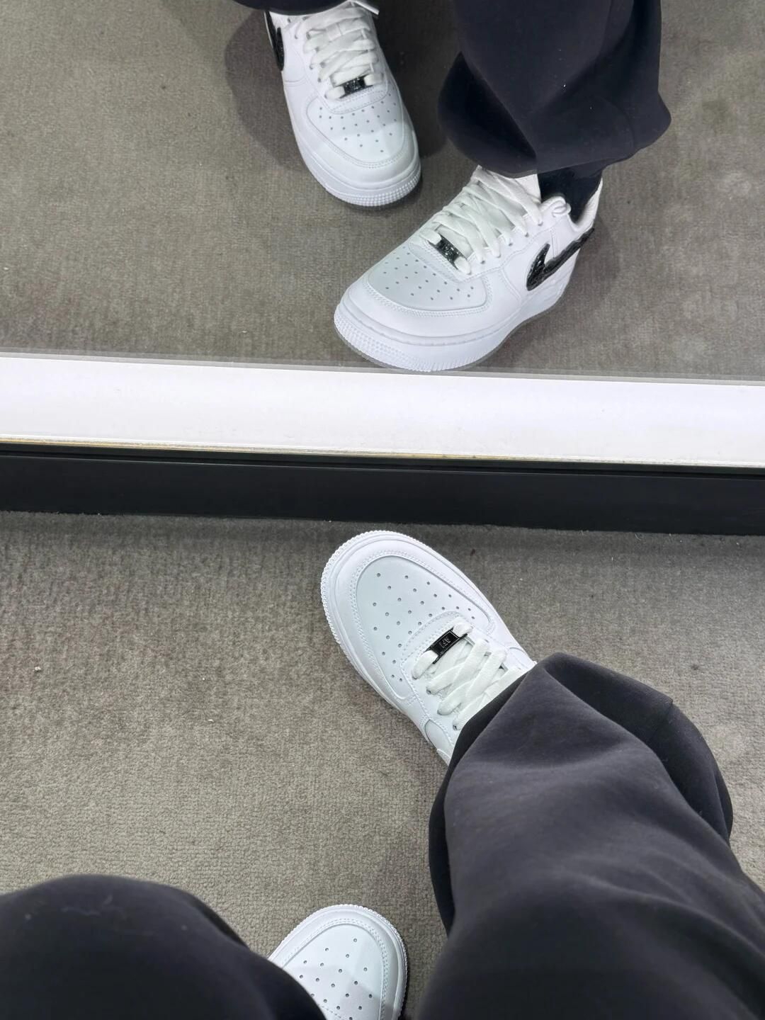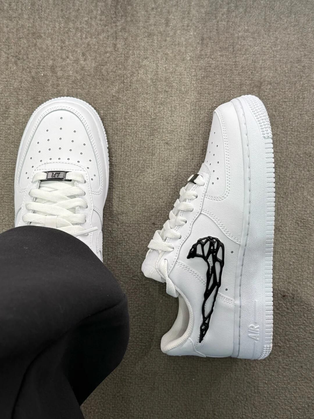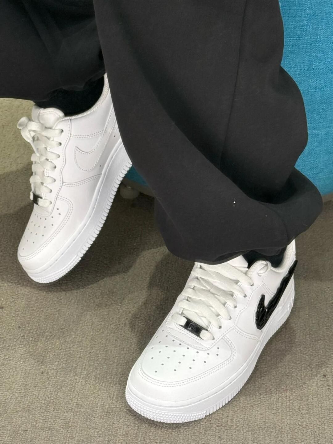 黑勾配白色的空军一号真的百看不厌! 流动金属线条logo很有设计感☑️ 瞬间摆脱路人感 细节感直接拉满~ 经典空军鞋型 脚感软糯巨巨巨百搭☺️ 搭牛仔/束脚裤也巨显腿长 谁穿谁好看就完事儿了😎