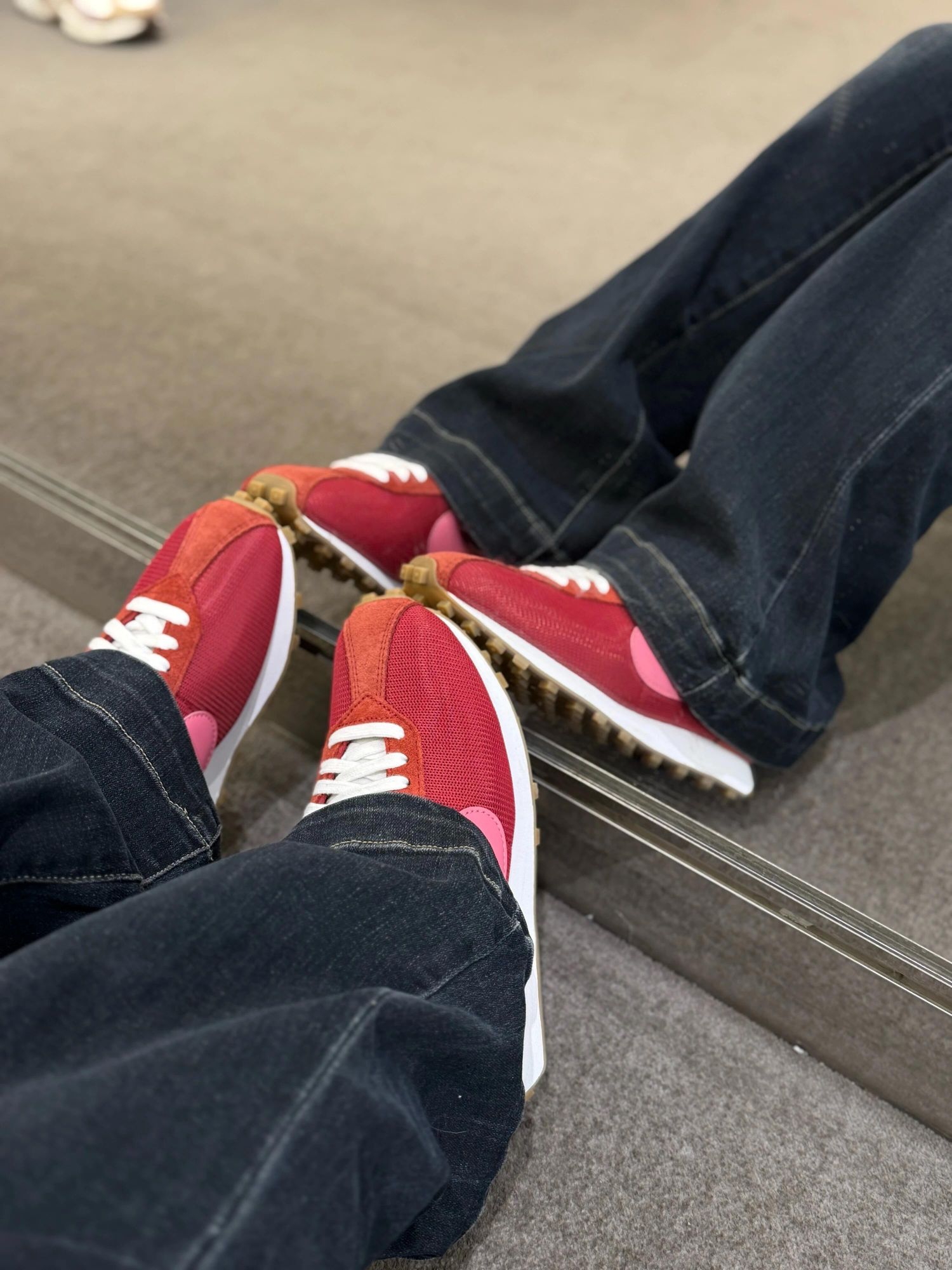 这款老爹鞋直接戳中我的心巴💕 米白➕浅卡其拼酒红点缀的复古调调 低饱和配色温柔又高级🧣太有新年氛围了~ 搭裤子/鲨鱼裤/裙子都巨显腿细! 复古老爹鞋型鞋型 厚底增高不笨重~ 上脚轻盈柔软 暴走一天都不累脚☺️ 百搭又好穿 2026年的本命鞋就是它了!