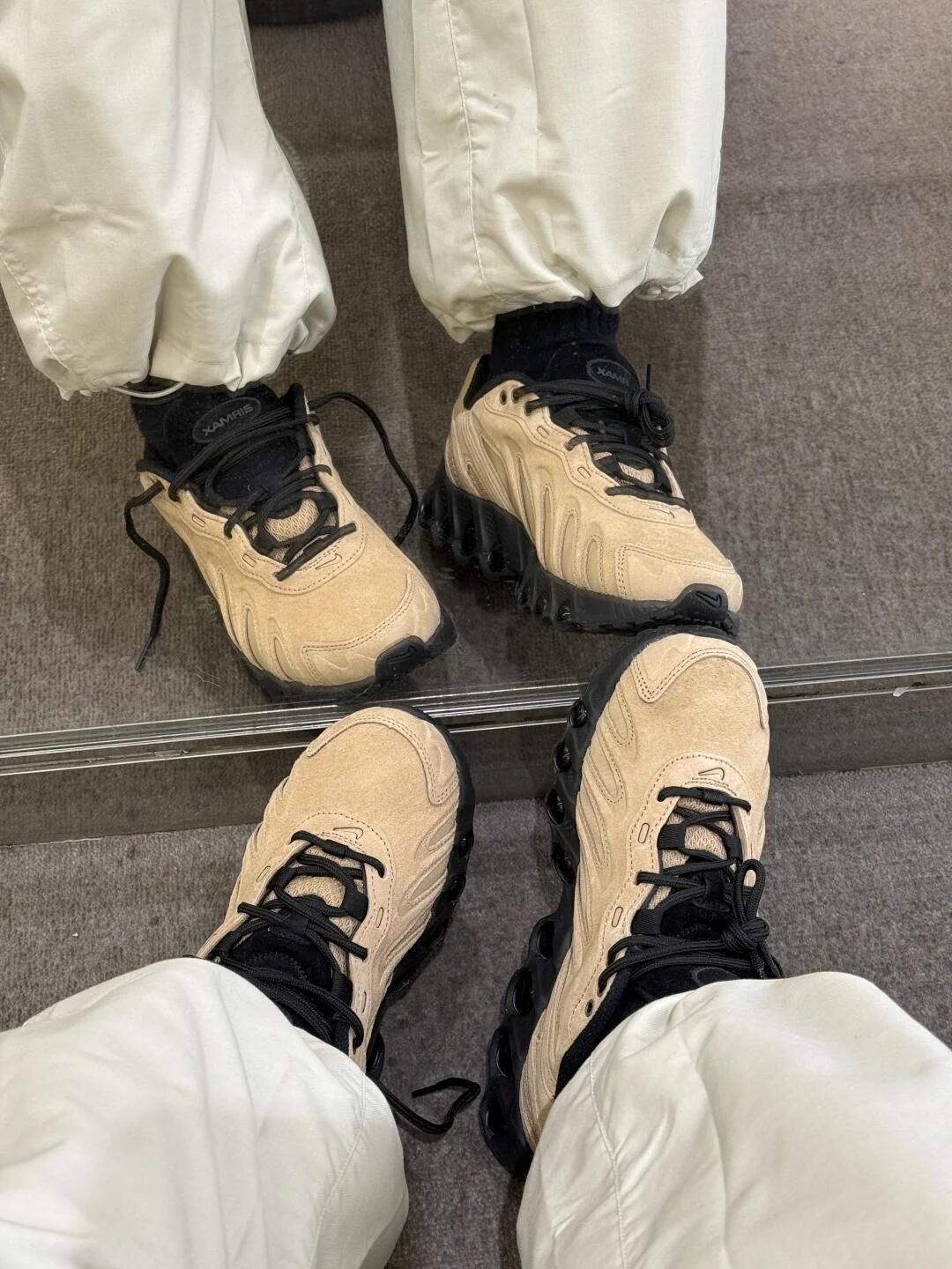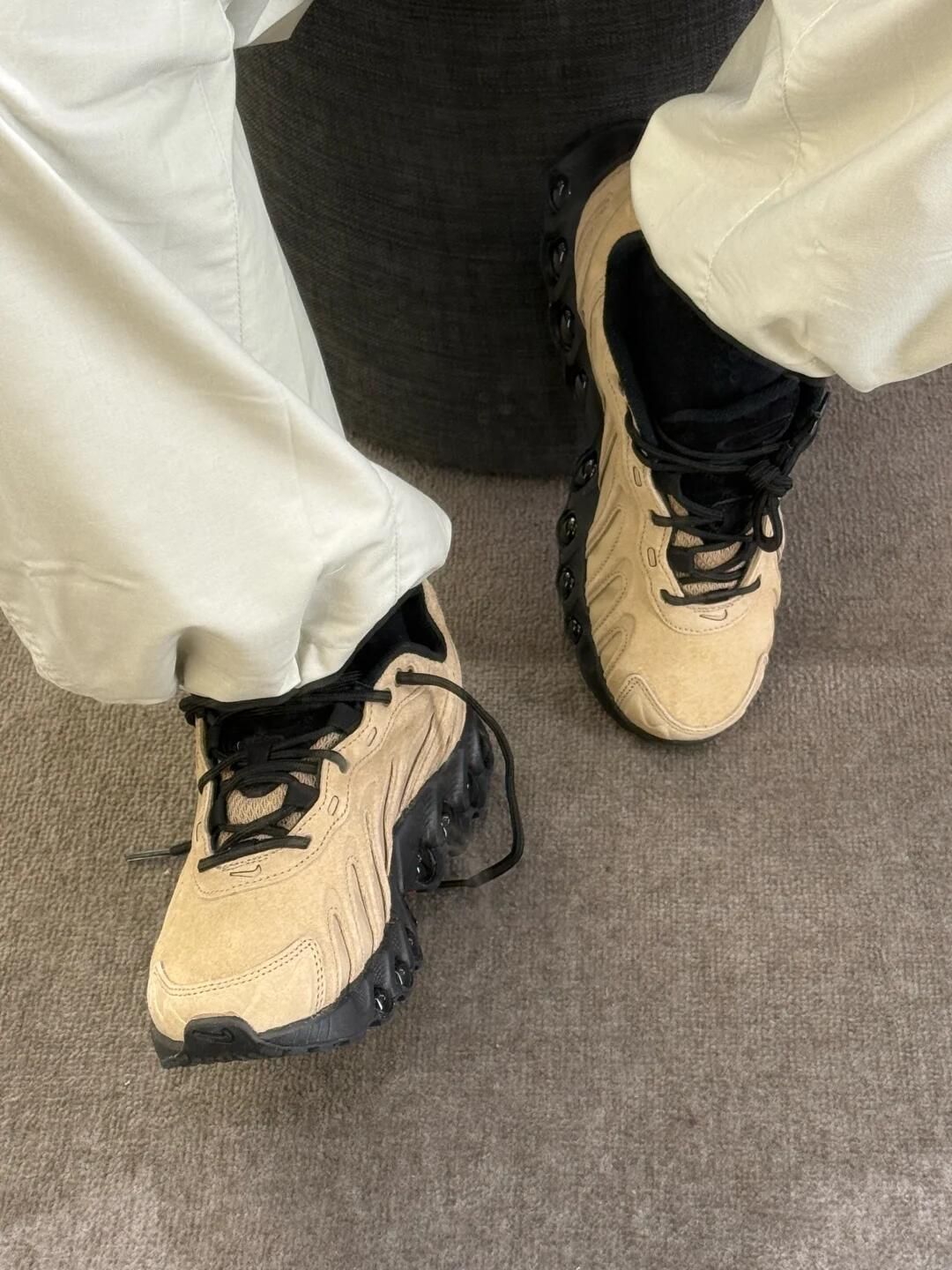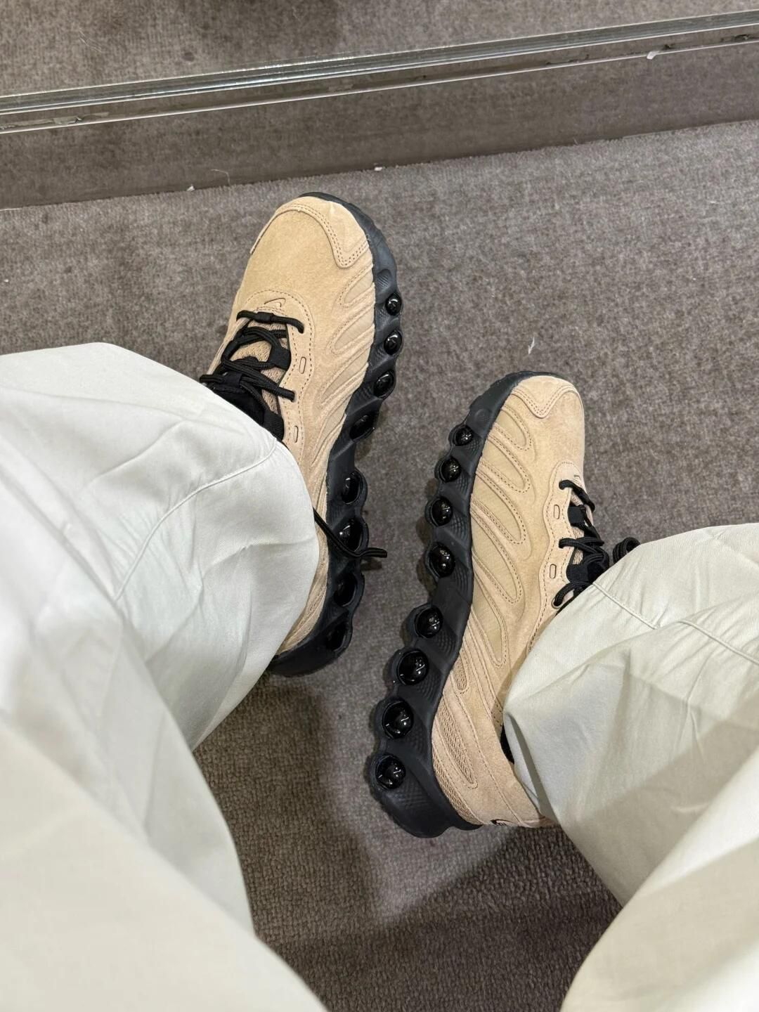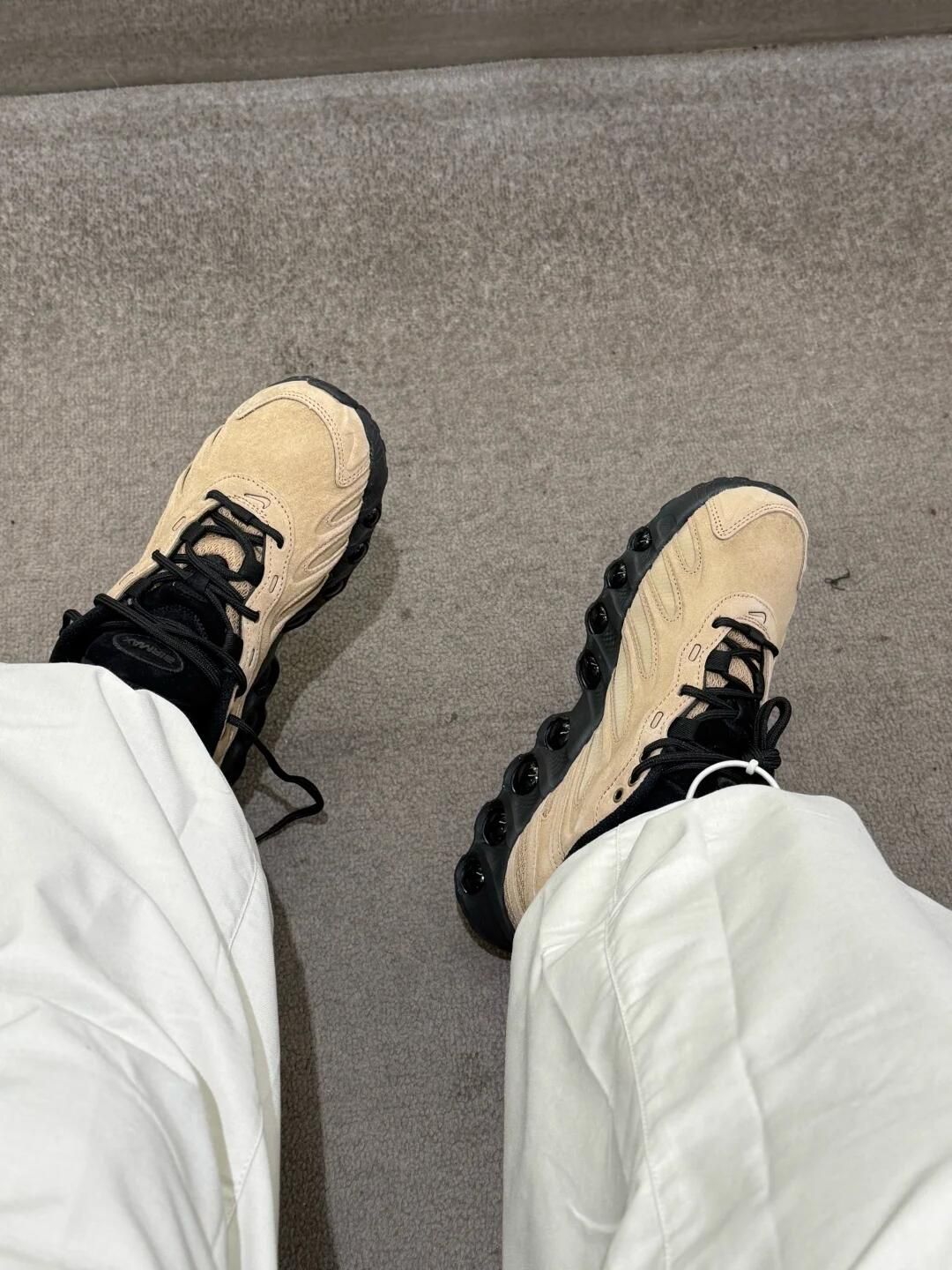 大地色系配黑色的Dn8真的高级呀! 麂皮材质显贵不浮夸 版型超级好🤙🏻 全掌气垫软弹不累脚 配白裤好休闲松弛~ 脚感也很舒服 暴走一天都不易累! 感觉搭工装裤或牛仔裤也超有范 真的挖到宝了🤩