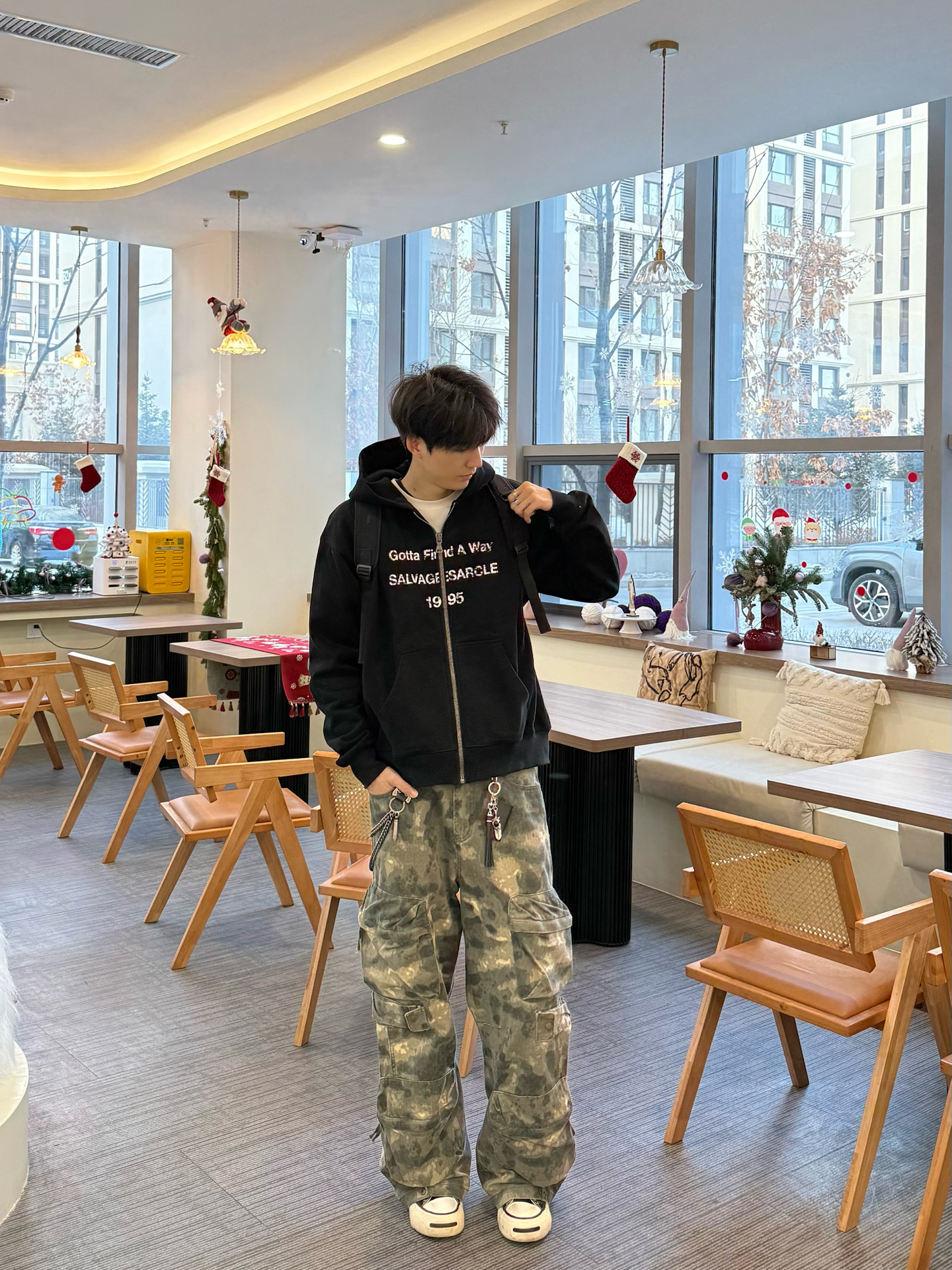 论帅这一块 还是美式权威😎 今天搞一套早春的街头穿搭 上身salvages的黑色字母卫衣👔 大帽兜的设计 刚好提升氛围感 加上胸口的字母 美式元素抓住了 搭上我的迷彩的工装裤👖 不得不说 黑配迷彩 可以说绝配了 下摆抓了条裤链 提升氛围✅ 最近这天确实暖和许多 但天气总是忽冷忽热的 看来还得注意保暖啊 #卫衣终于开窍了 #预习一下春季穿搭 #我的卫衣够潮 #男大学生春日OOTD #这么搭配卫衣包...