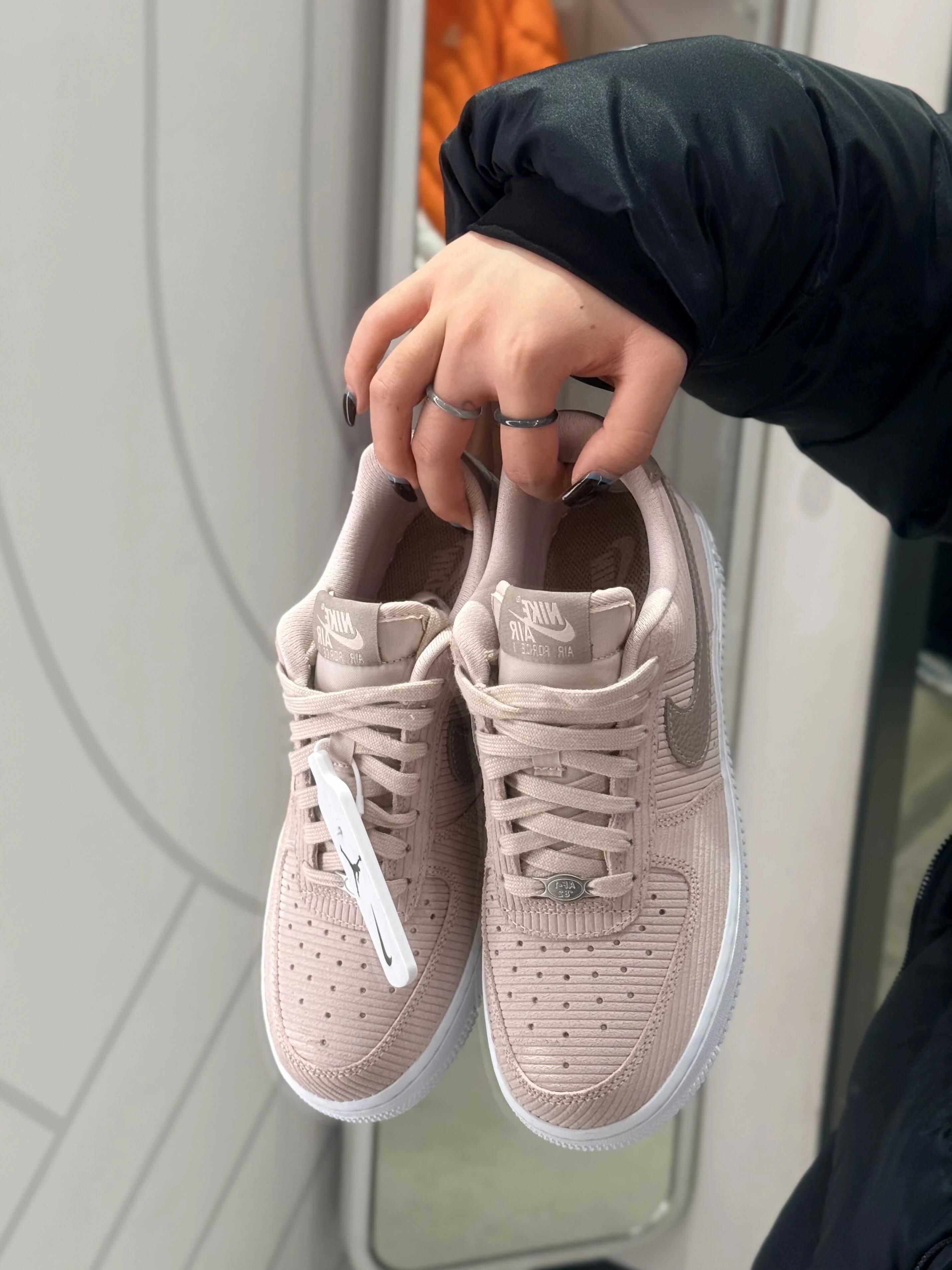 暖调裸粉➕灯芯绒纹理好好看啊! 秋冬氛围感直接拉满啦💓 配阔腿裤软乎乎的慵懒感谁懂啊… 经典空军鞋型 脚感舒服又百搭☑️ 这波温柔感小板鞋我先冲了💨狠狠爱啦!