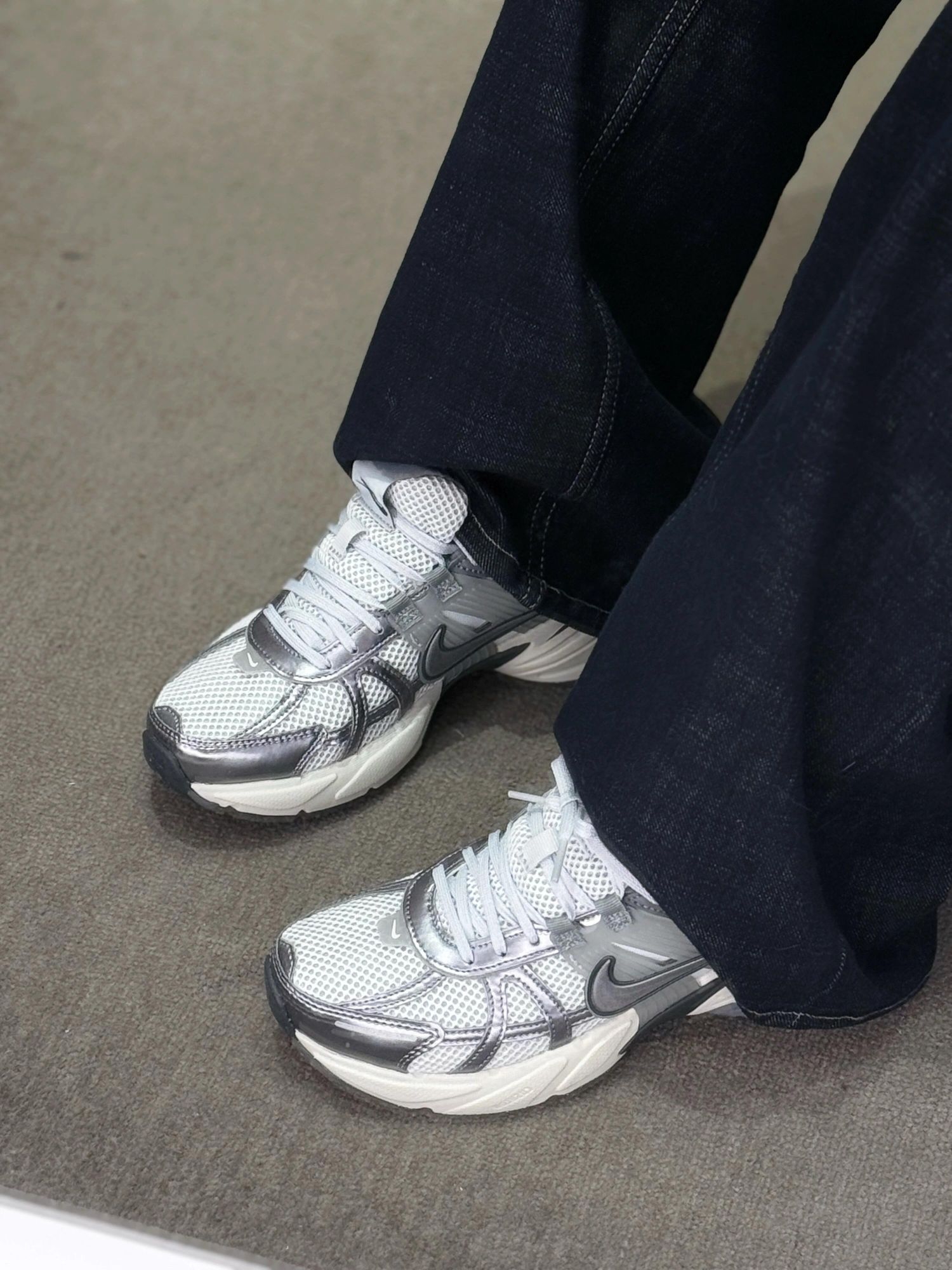 这双银灰拼色的v2k也太戳我了✨ 厚底设计超显腿长 复古y2k感太爱啦! 脚感轻盈鞋面透气 舒适度满分💯 搭配阔腿牛仔裤慵懒又时髦 哪怕搭大衣、羽绒服也能撑起来~ 走在路上就是C位 秋冬不可缺少的老爹鞋🤙🏻
