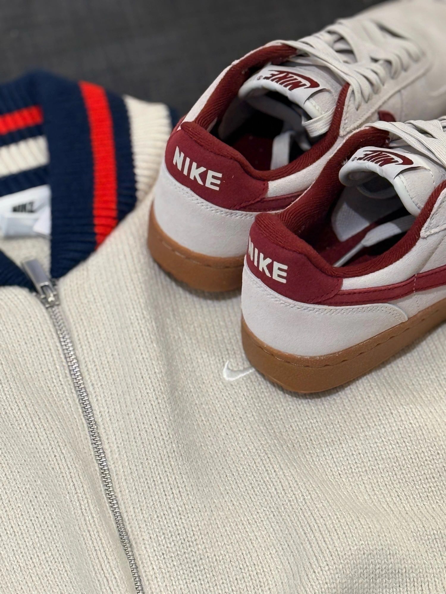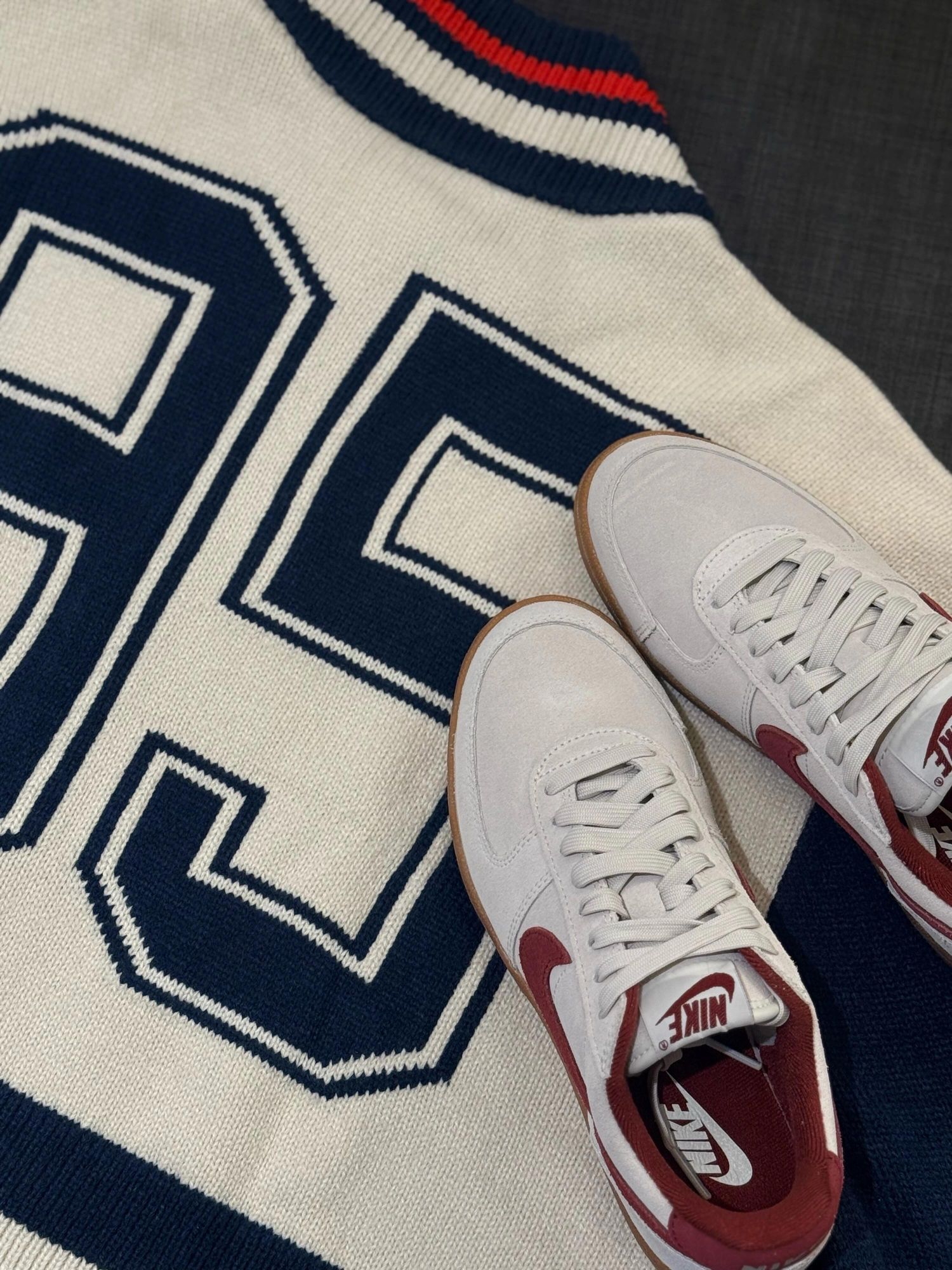 谁懂啊!一眼爱上这款复古德训了! 奶白麂皮➕酒红logo➕生胶底 这搭配直接温柔到骨子里🧸 麂皮质感软fufu的 上脚巨显脚小! 搭配偏复古毛衣 梦回90年代校园~ 日常配牛仔裤、百褶裙都很适配‼️ 好看到让闺蜜追着问链接!