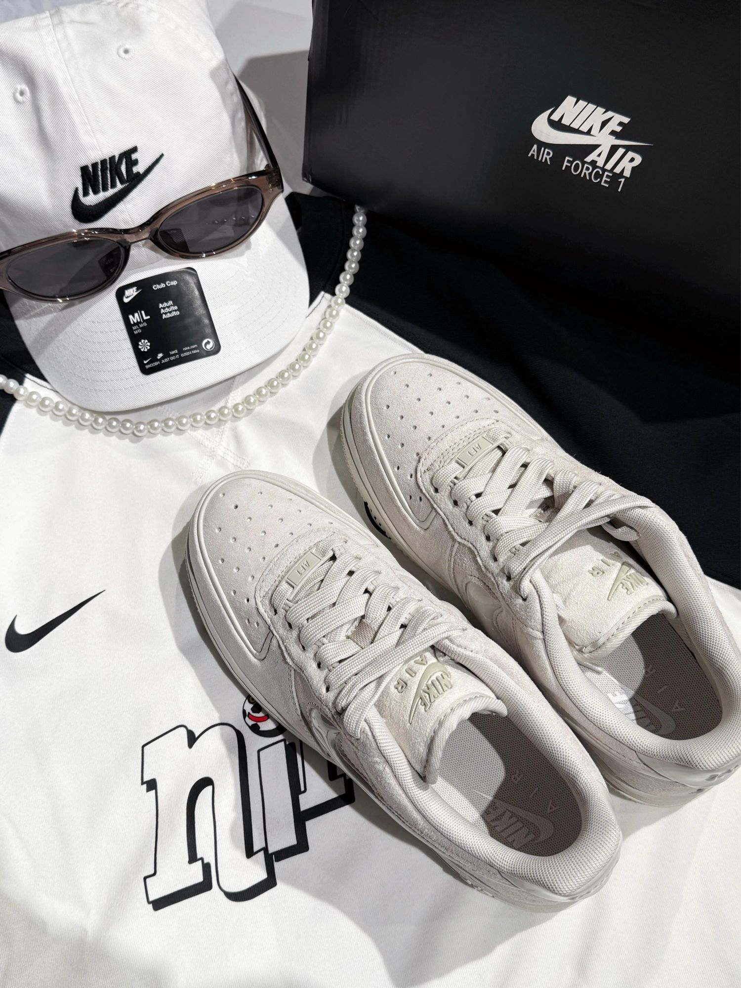 这双麂皮灰AF1也太会了!直接戳中我的心巴💓 麂皮材质AF1真的太有质感啦🥹 鞋侧立体Logo好有设计感 很Q~ 秋冬季节穿搭的实穿性非常高❗️ 复古墨镜一戴 整个look的氛围感拉满! Nike女孩的日常就是这么时髦🤙🏻