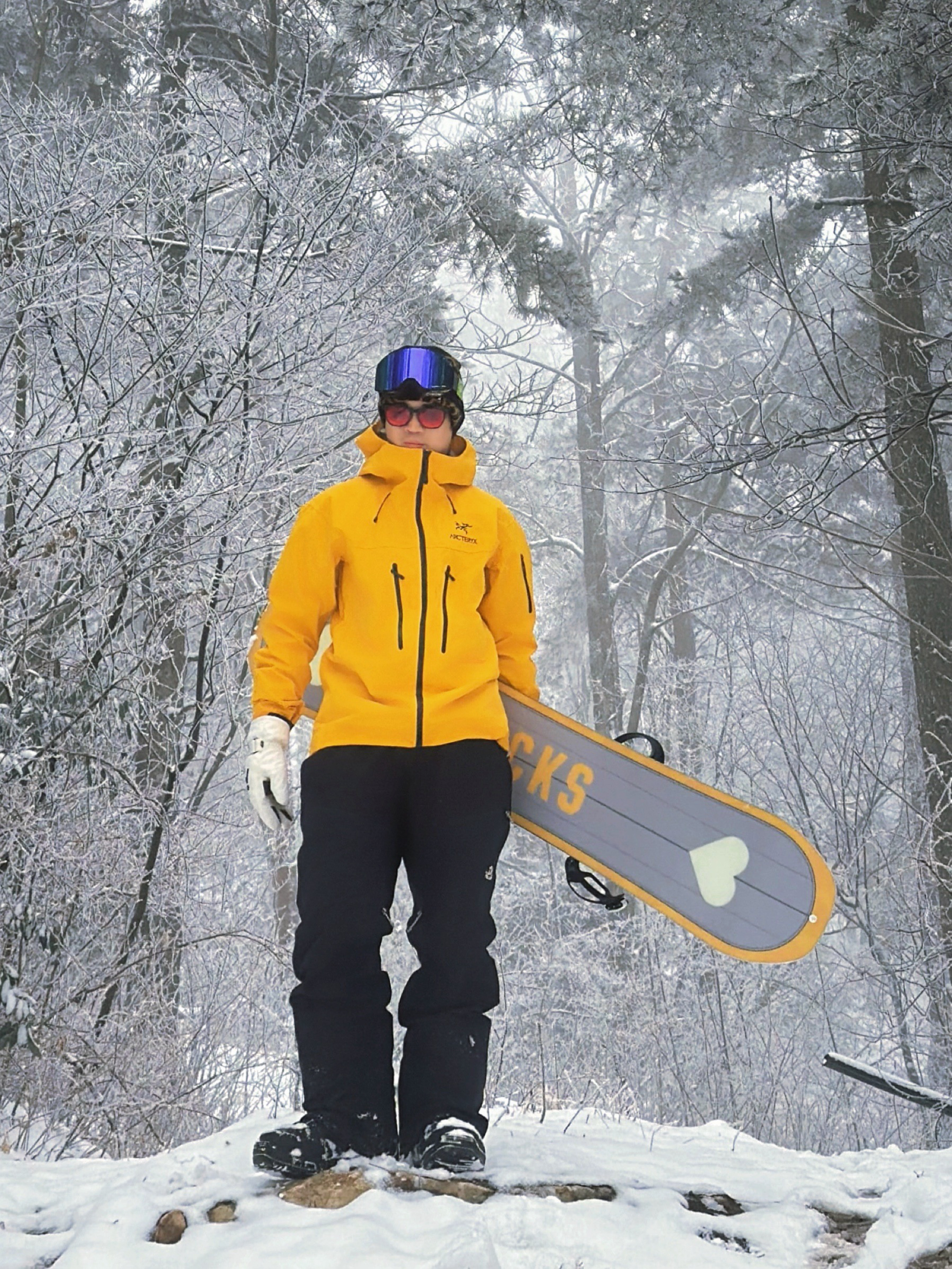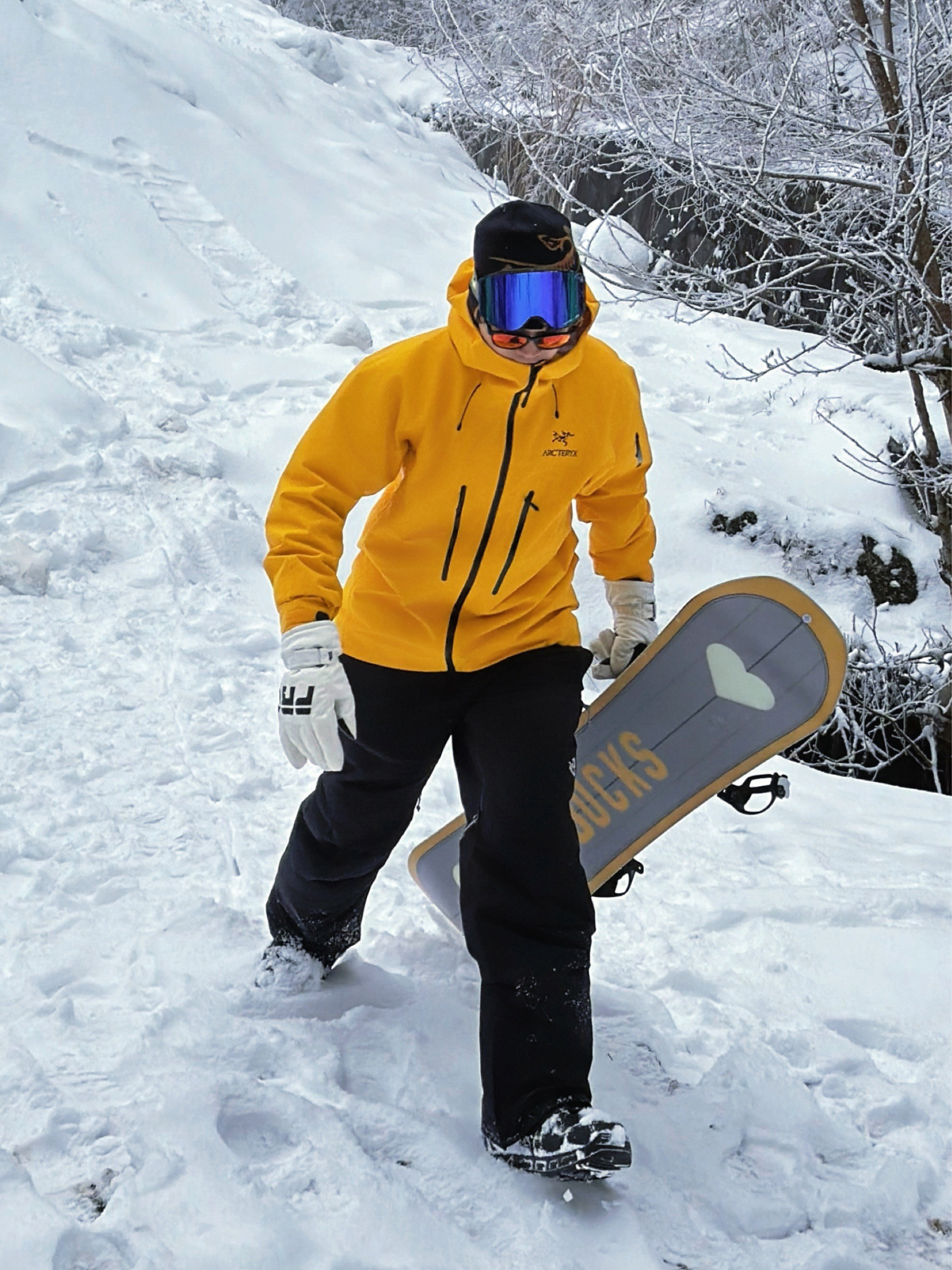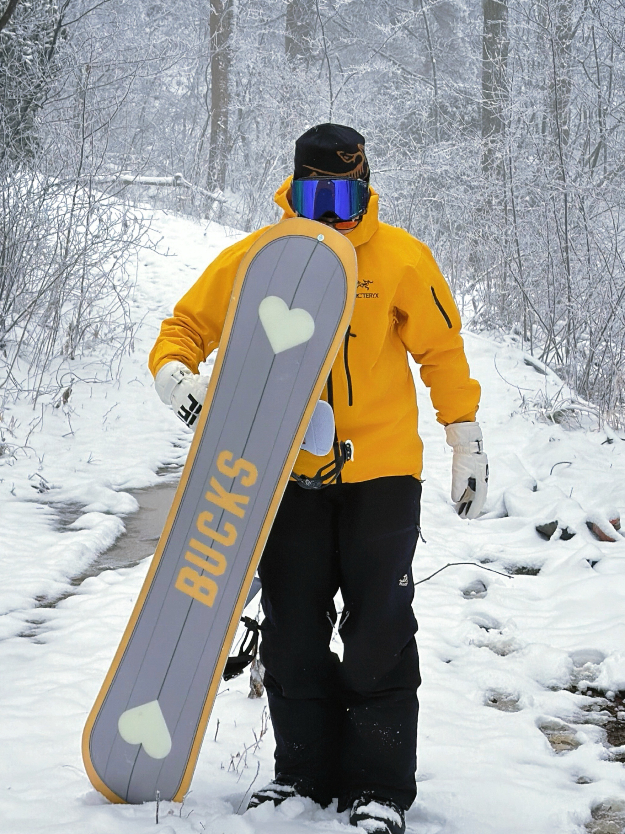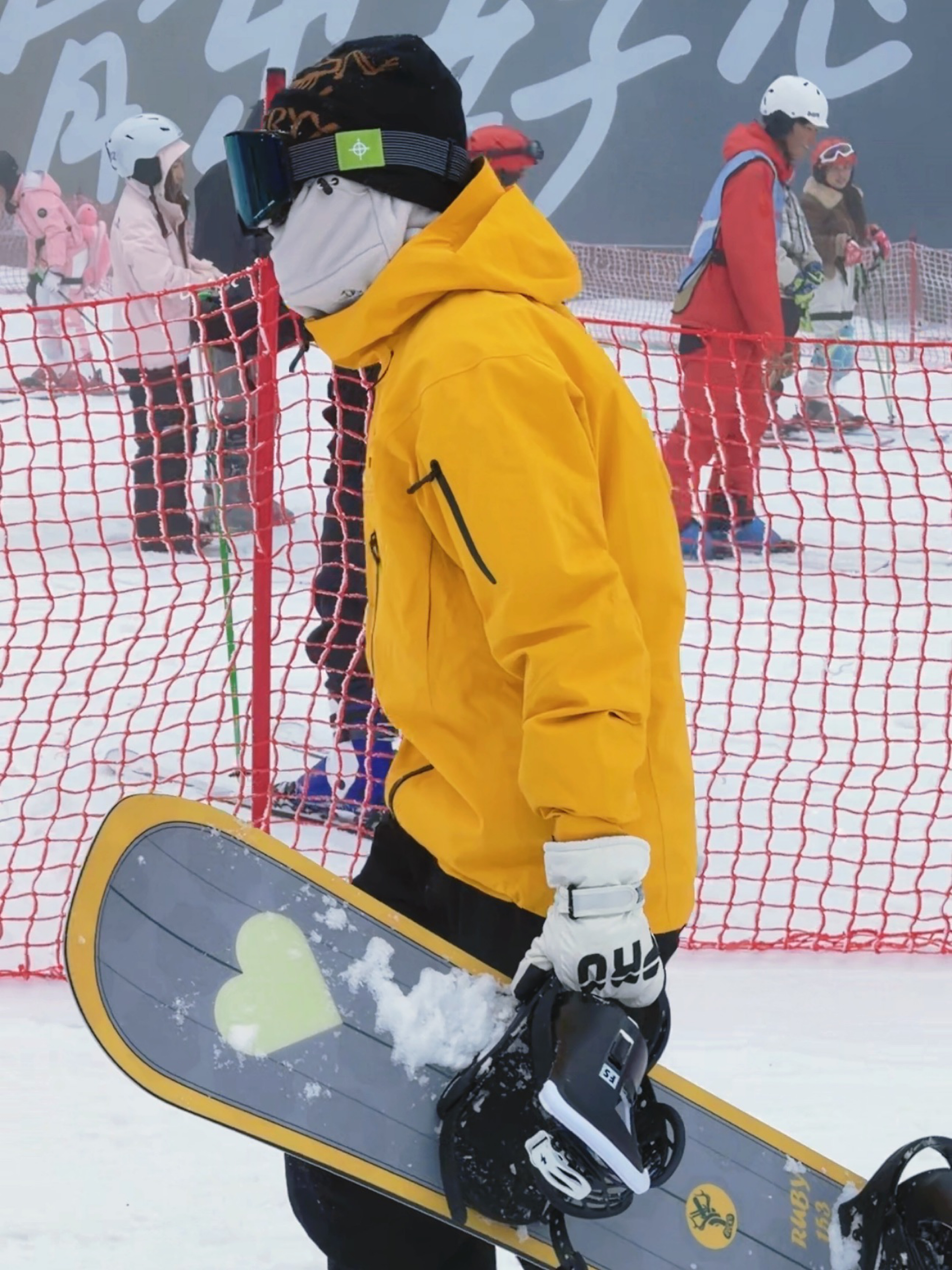 滑雪场里白茫茫一片, 穿对颜色真的超级出片!📸 ·亮黄连帽冲锋衣外套 ·黑色滑雪裤 ·蓝紫色反光滑雪镜 ·BUCKS字母+爱心图案滑雪板🏂 这一套在雪地里特别醒目💛 保暖又上镜,运动起来也方便 随手一拍就是活力满满的滑雪氛围感🎿 雪景配亮色,拍照真的绝! 快@你的滑雪搭子一起安排~✨