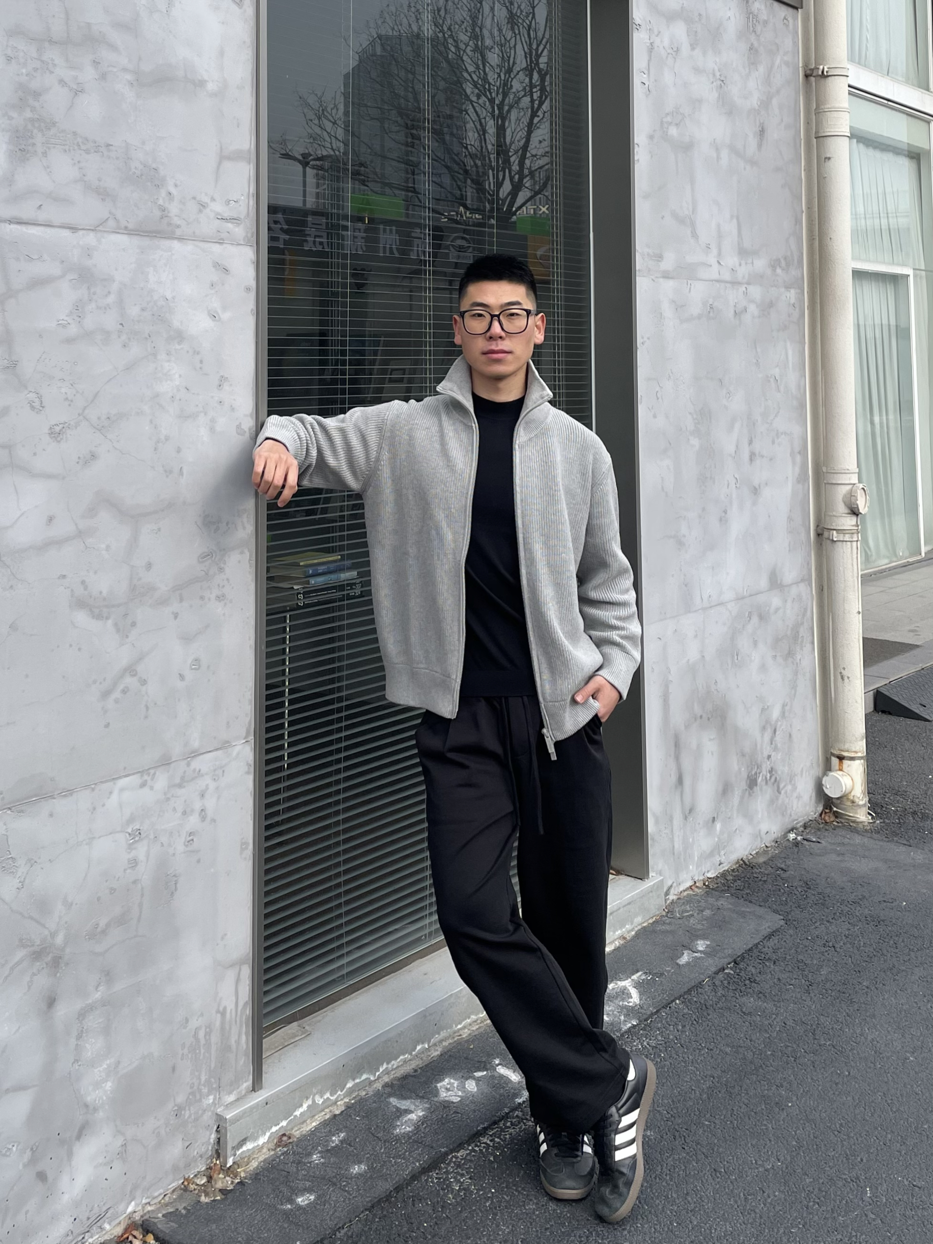 韩系穿搭秘诀就是灰色高领开衫喽😎 🩶灰色高领毛衣开衫➕🖤宽松针织卫裤➕🖤板鞋🟰轻松拿捏韩系氛围感穿搭😇 我个人很喜欢🩶灰色,随意搭配衣服都很干净,而且显气色,上身就很清爽🤟🏻 🧥毛衣的版型是偏合身一些的,所以上身比较有型💪 不会拉垮✌️ 针织的小弯刀卫裤,上身垂感还挺好的,用料也挺扎实的,上身挺阔,不会软塌塌的🧐 👖裤子是宽松的版型,冬天里面穿个秋裤也不会显臃肿✌️ 我的身高是181cm 体重...