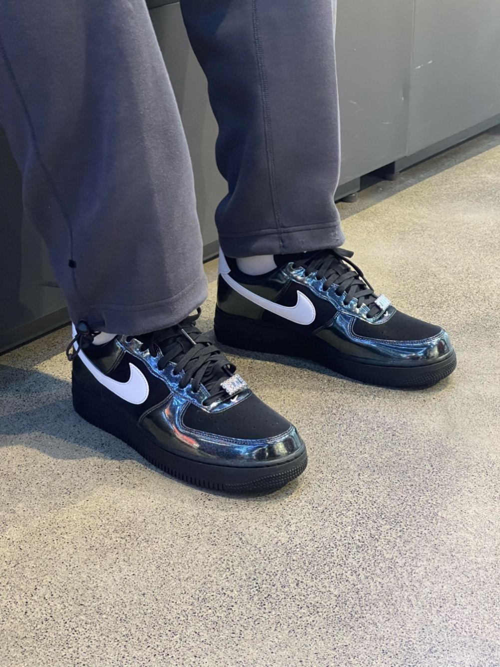 这双黑白漆皮Air Force 1真的长在我的审美上了😭 黑银撞色+漆皮质感,低调又自带高级感,酷飒风直接拉满! 黑银控闭眼冲!这双真的是年度宝藏球鞋,颜值和实用性双在线💥