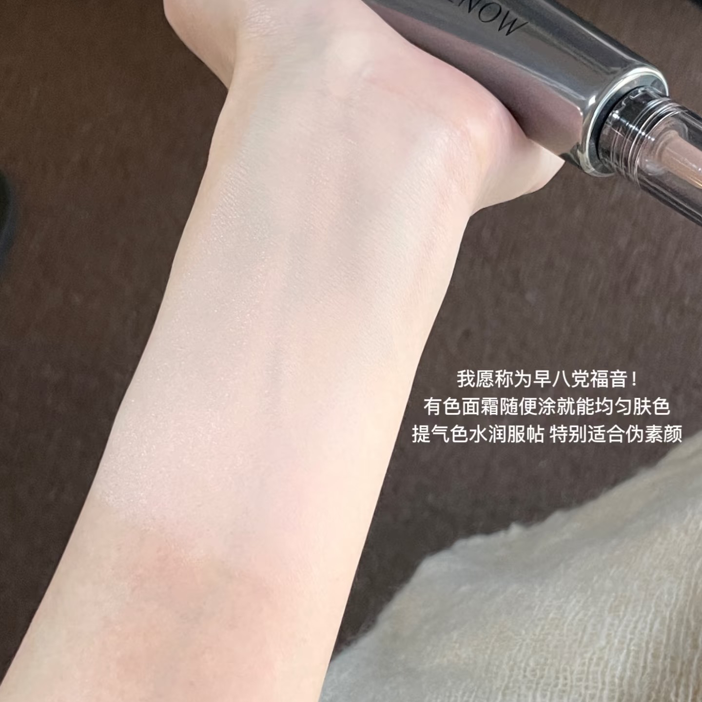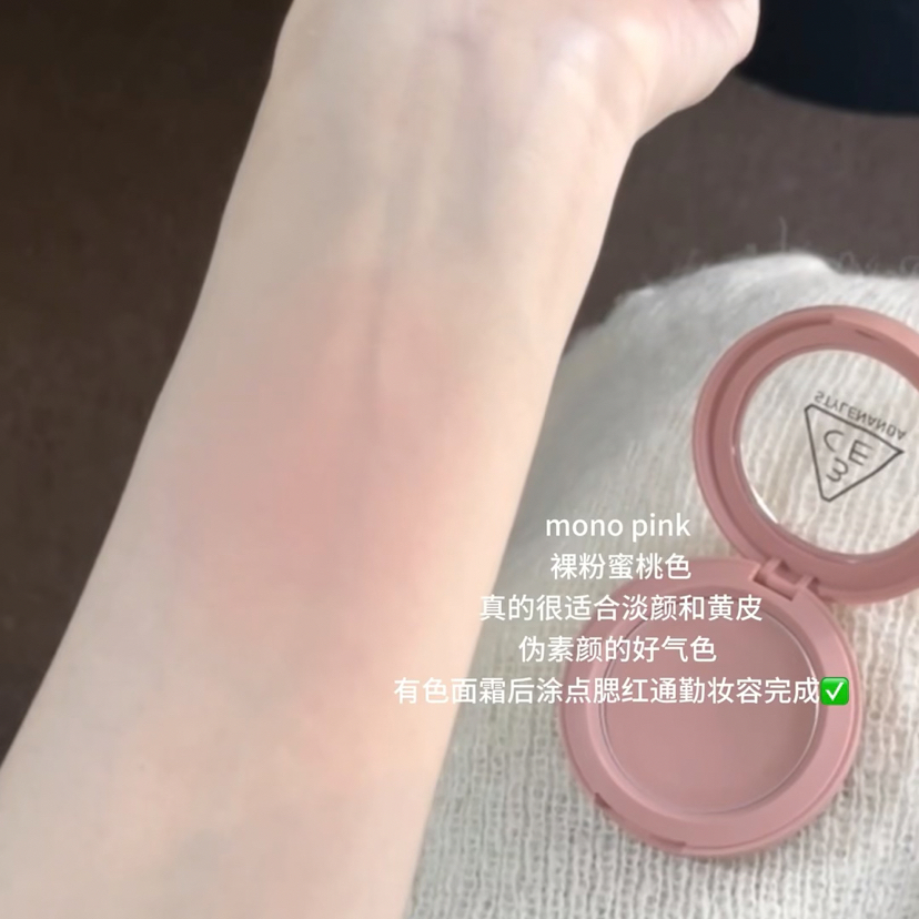 这三个小宝藏真给早八懒人用爽了! 🤍美诺有色面霜 这支有色面霜完美诠释了什么叫融在皮肤里的奶油感!! 奶霜质地像面霜一样水润到不行!!早八懒人随便抹抹就有漂亮的裸光肌!上脸就是带点光泽感又润又很服帖!没啥粉感!像开了柔光滤镜一样!! 就是那种清透素肌的好皮感~它还添加了玻色因养肤成分+五重保湿精华,秋冬用也很水润!! 🩰腮红:3ce monopink ✨口红:Hera401