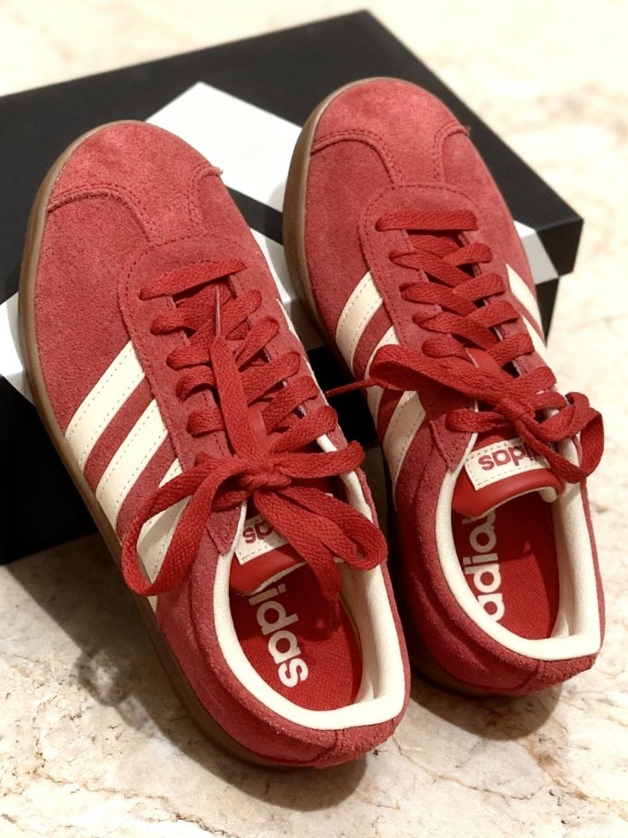 #ADIDAS #新年穿红鞋发财一整年🧧🧨 #穿搭开红运✨ #新年就要穿点红 Adidas复古红麂皮,氛围感直接拉满! 合成革绒面新年就该来点不一样的红!这双Adidas复古红麂皮真的戳中我心巴💘,上脚直接变身氛围感美女,不管是日常出街还是新年聚会都超吸睛! - 颜值暴击:正红色麂皮+米白三条杠+生胶底,经典复古配色,自带滤镜,怎么拍都好看! - 百搭王者:配牛仔裤是美式复古,配百褶裙是甜妹学...