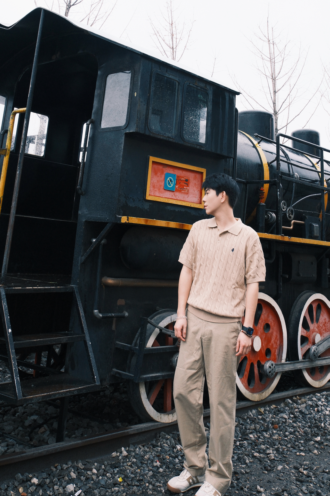 早春的松弛感,从一套不费力的同色系穿搭开始。 选择了Teenie Weenie Men的CleanFit系列短袖Polo衫,复古老钱风的绞花纹理自带质感,合体的版型不挑身材,轻松穿出利落感。 搭配的是同品牌的零压裤,卡其色真的太百搭了。高弹力的面料穿着毫无束缚感,耐磨又抗皱,免烫易打理的特性,不管是日常出行还是轻度商务都能hold住,男女同款的设计也很适合做情侣装。 在复古的火车场景里,这套...