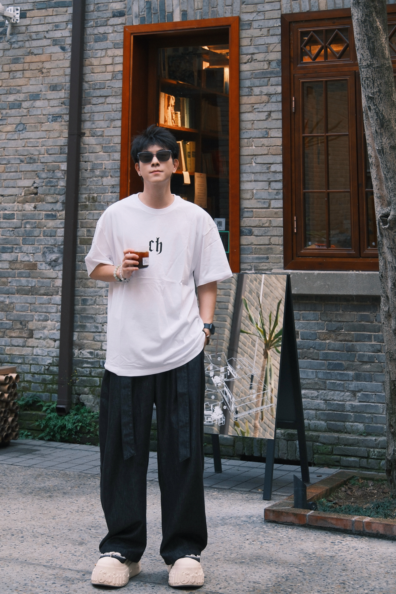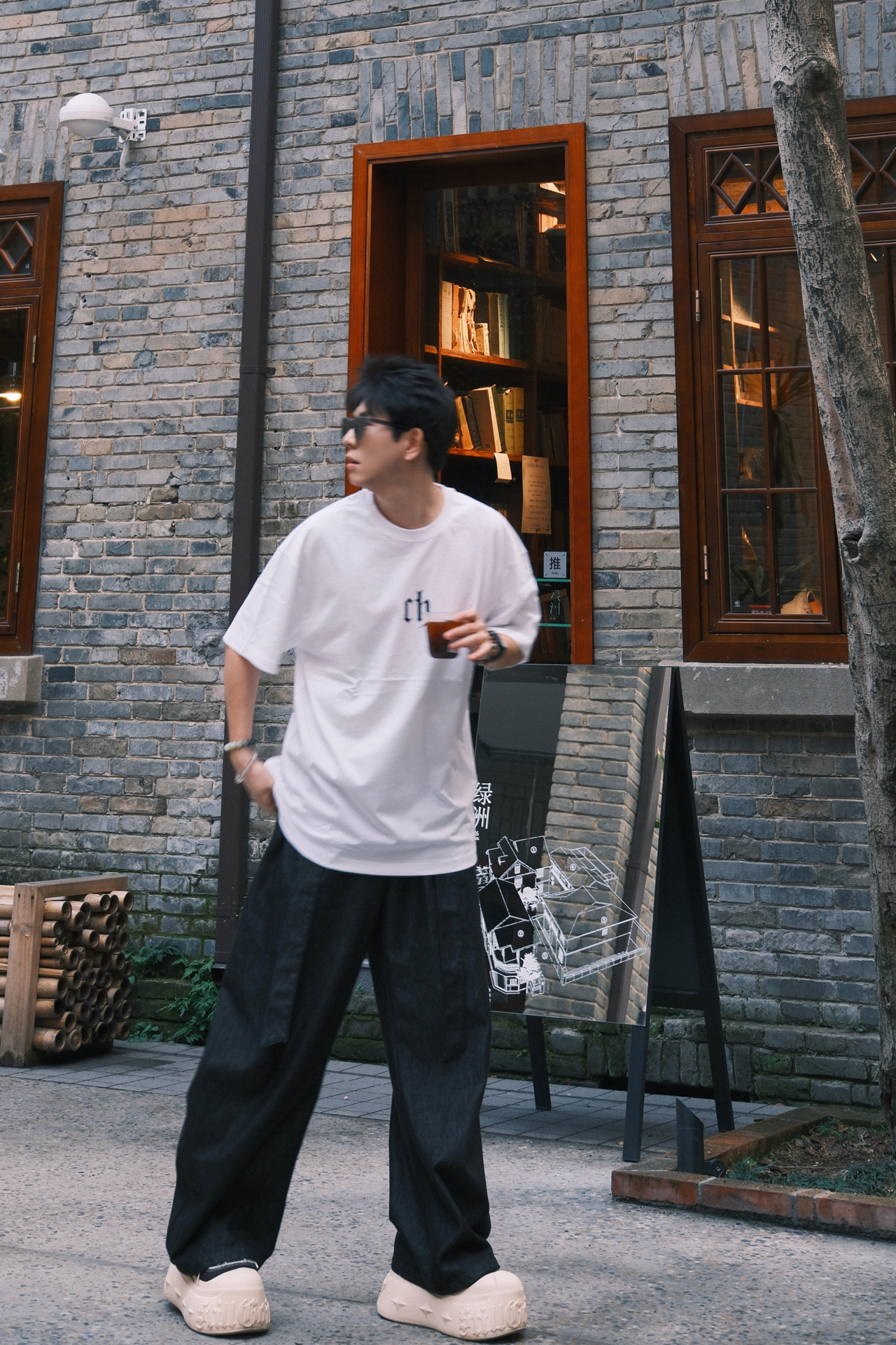 用一套松弛感穿搭开启星年营业模式吧✨ • 上衣:CHINISM CH基础字母印花白T,干净利落的纯色,胸前的小logo低调又有辨识度,男女同款的版型,单穿内搭都很顶。 • 下装:膨胀潮牌阔腿裤,垂感和版型都在线,把腿型修饰得又直又长,走路带风的感觉谁懂。 • 鞋子:1807厚底鞋,增高又百搭,和整套的松弛感完美适配。 早春穿搭不用太复杂,白T+黑裤的经典组合,再配上一杯冰美式,就是今日份的...