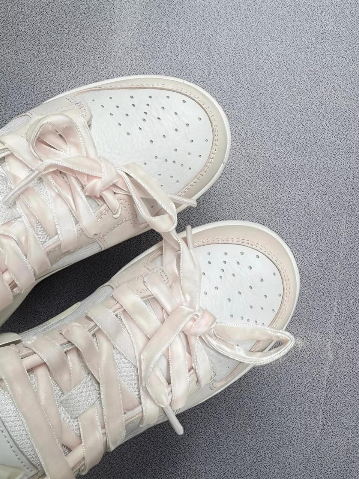 原本的鞋带总觉得少了点味道,换上缎带鞋带直接封神!柔滑的缎面质感和浅粉调适配度拉满,系起来松松垮垮的慵懒感,甜妹氛围直接拉满~ 鞋身是米白拼浅粉的设计,皮质软乎乎的上脚超舒服,不管搭牛仔裤还是小裙子都很绝,日常出街回头率超高而且这种低饱和度的粉色一点都不挑皮,黄皮姐妹也能放心冲!感觉这双鞋承包了我整个春夏的温柔,已经焊在脚上不想脱了