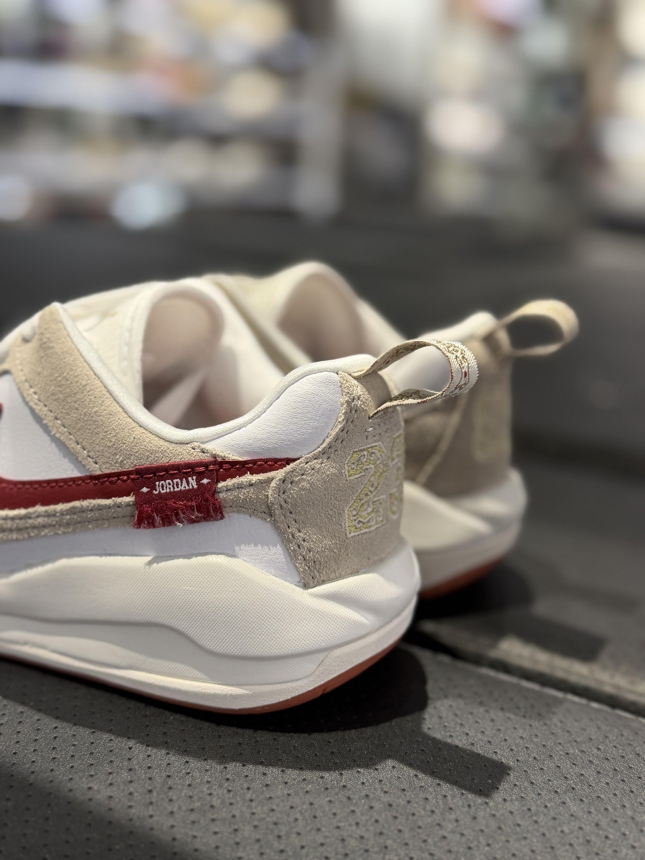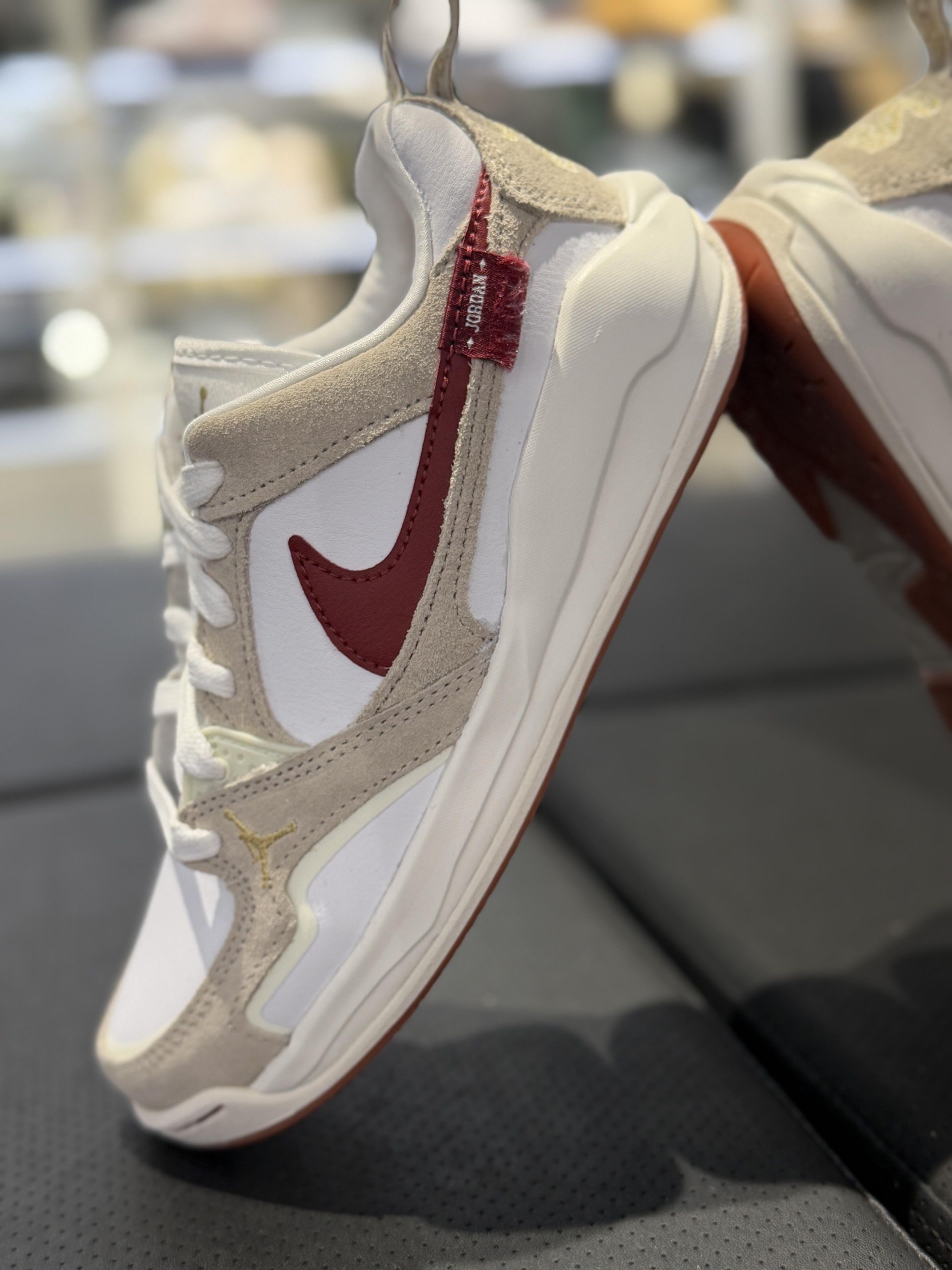 一眼就被这双Jordan戳中了😭 米白+浅卡其的麂皮拼接,再配一抹酒红勾子,温柔又带点复古调调,马年穿真的超应景! 鞋型是那种偏休闲的老爹鞋款,上脚脚感软软的,走路完全不累脚,日常搭牛仔裤、运动裤都巨百搭~ 细节也超用心,鞋侧的Jordan标和后跟的提拉带,小设计感拉满,真的越看越爱! 已经预感这双会成为我新年出门的本命鞋了,姐妹们闭眼冲!