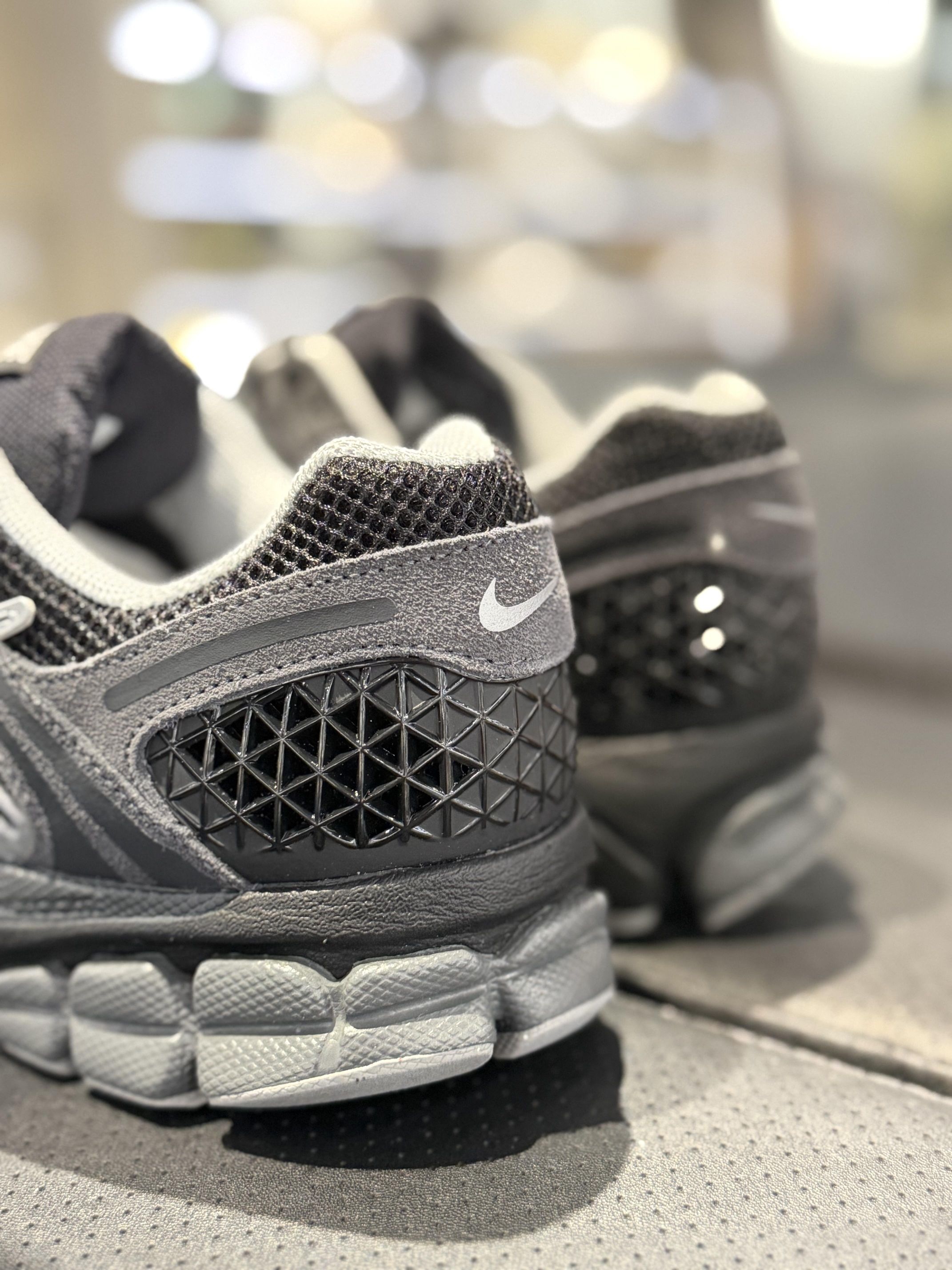谁懂啊家人们!逛店一眼看中这双 Nike Zoom Vomero 5水泥灰,实物比图片好看一百倍 整体是深灰+黑的配色,网眼布拼接麂皮的质感超高级,鞋侧的几何纹理和流线型设计,复古跑鞋的味儿直接拉满!上脚脚感也很软,日常通勤或者搭休闲装都巨合适,百搭又不撞款的宝藏款说的就是它吧~ 已经预感这双会成为我接下来的穿搭主力了,水泥灰爱好者闭眼冲!