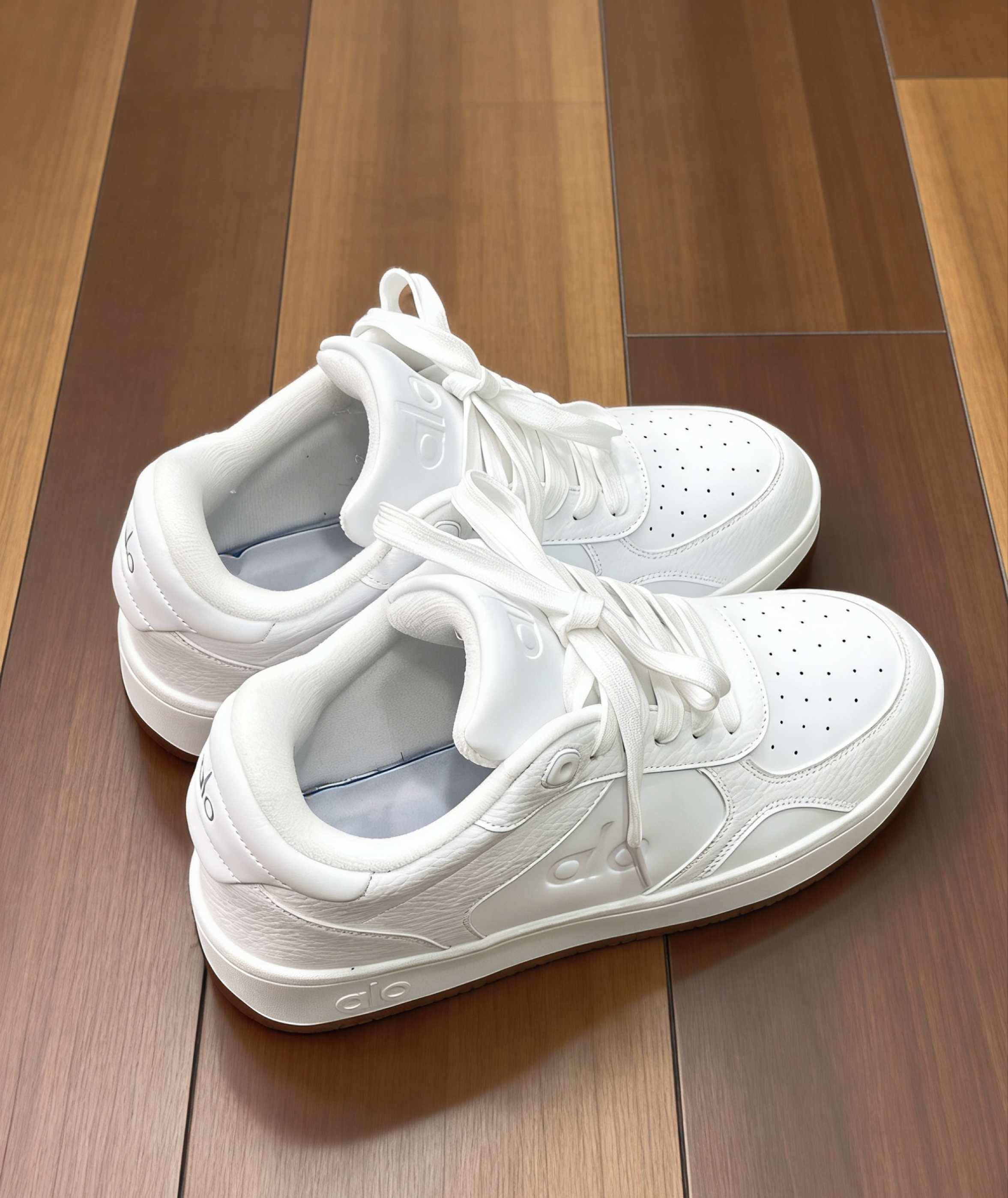 • 极简美学标杆:通体纯白荔枝纹皮革搭配标志性生胶大底,无冗余设计,上脚自带高级感,男女同款适配情侣出街。 • 轻运动全能属性:专为轻运动场景打造,兼顾alo品牌核心的瑜伽穿搭属性与日常通勤需求,健身、逛街、办公一脚搞定。 • 质感细节拉满:鞋面采用细腻荔枝纹皮革,耐刮易打理;鞋身立体压印alo标识,低调又有辨识度;生胶大底防滑耐磨,兼顾颜值与实用性。