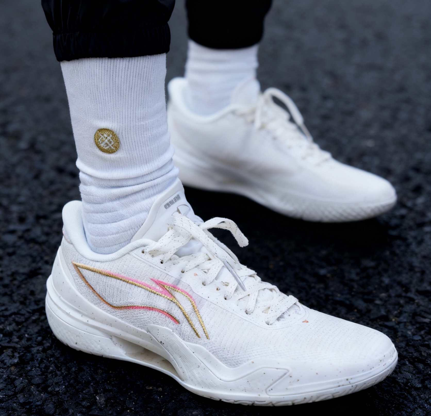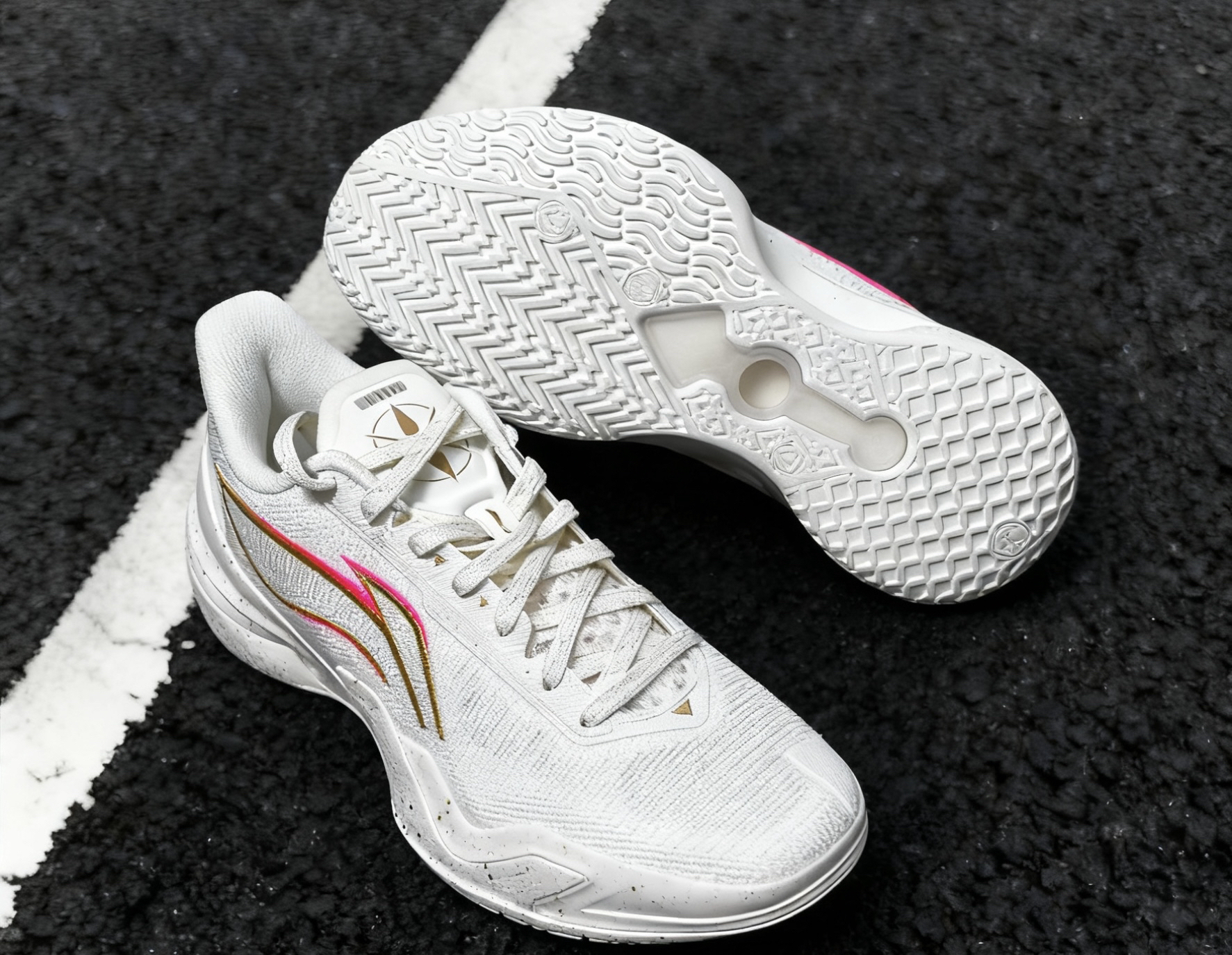 冲着对白色球鞋的执念,果断上脚这款白金配色的利刃5金戈~ 第一眼就看出区别!比起利刃4v2的流线型鞋身,这款利刃5的分离式镂空中底+弯折处V型TPU,外观攻击性直接拉满🔪 鞋面是织物网布材质,轻盈又透气,完全不闷脚~全白鞋身搭配少量金、粉点缀,吸睛度直接拉满👀 中底是分离式䨻科技缓震,前掌比后跟稍硬,再加上部分镂空设计,刚上脚可能会有一丢丢脱节感⚠️穿开后应该会缓解,据说这种设计更能助力爆发💥个人...