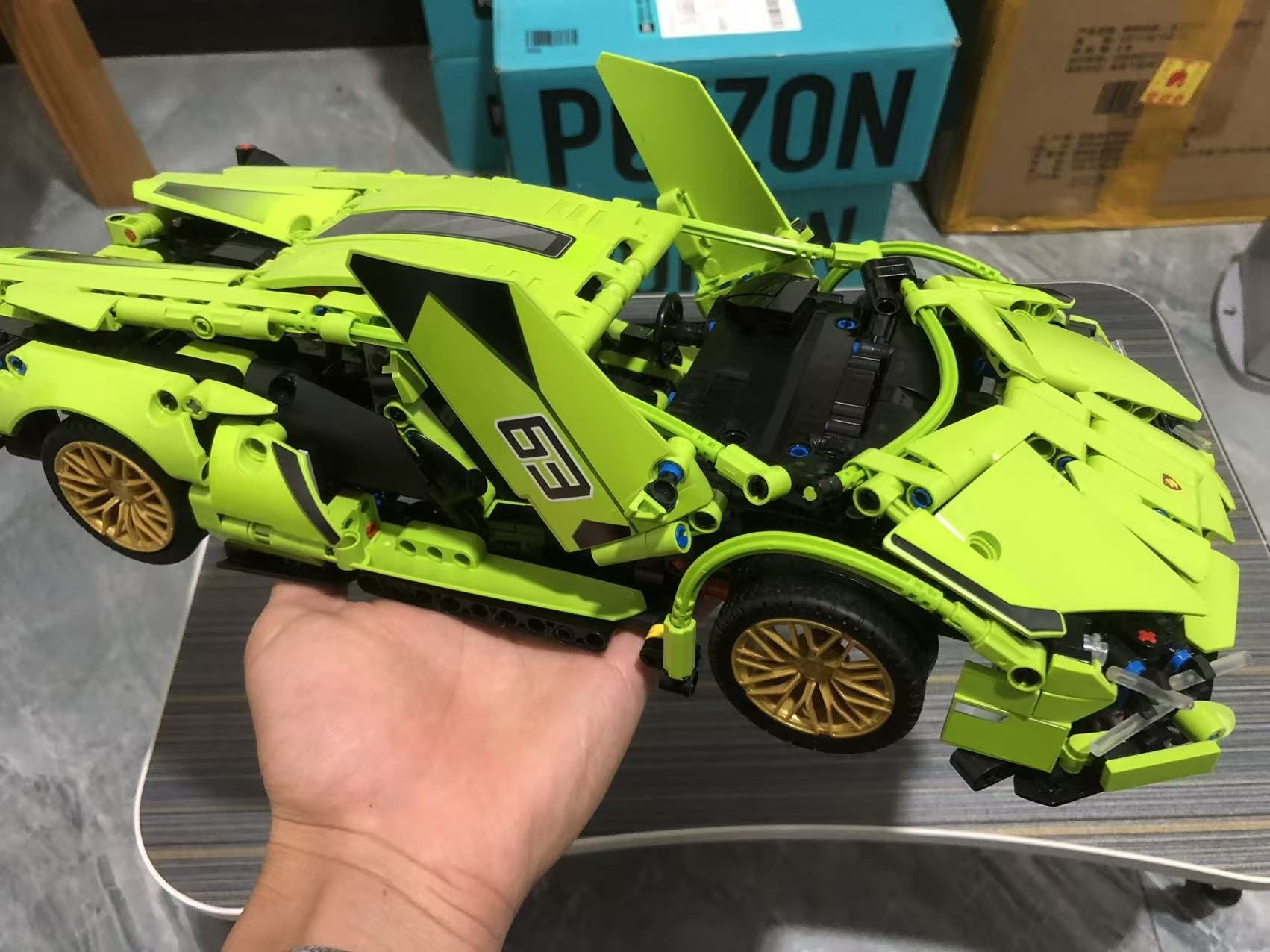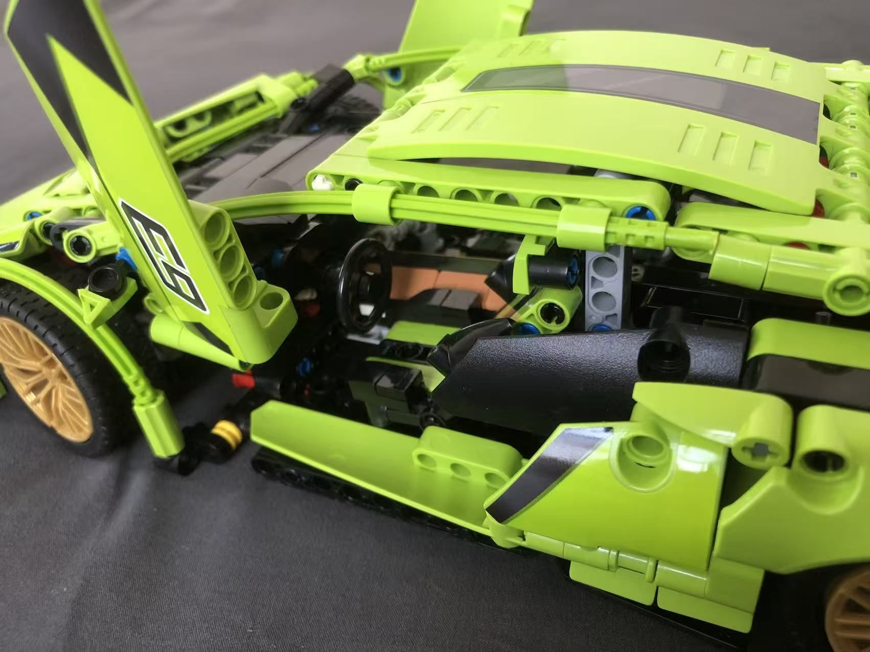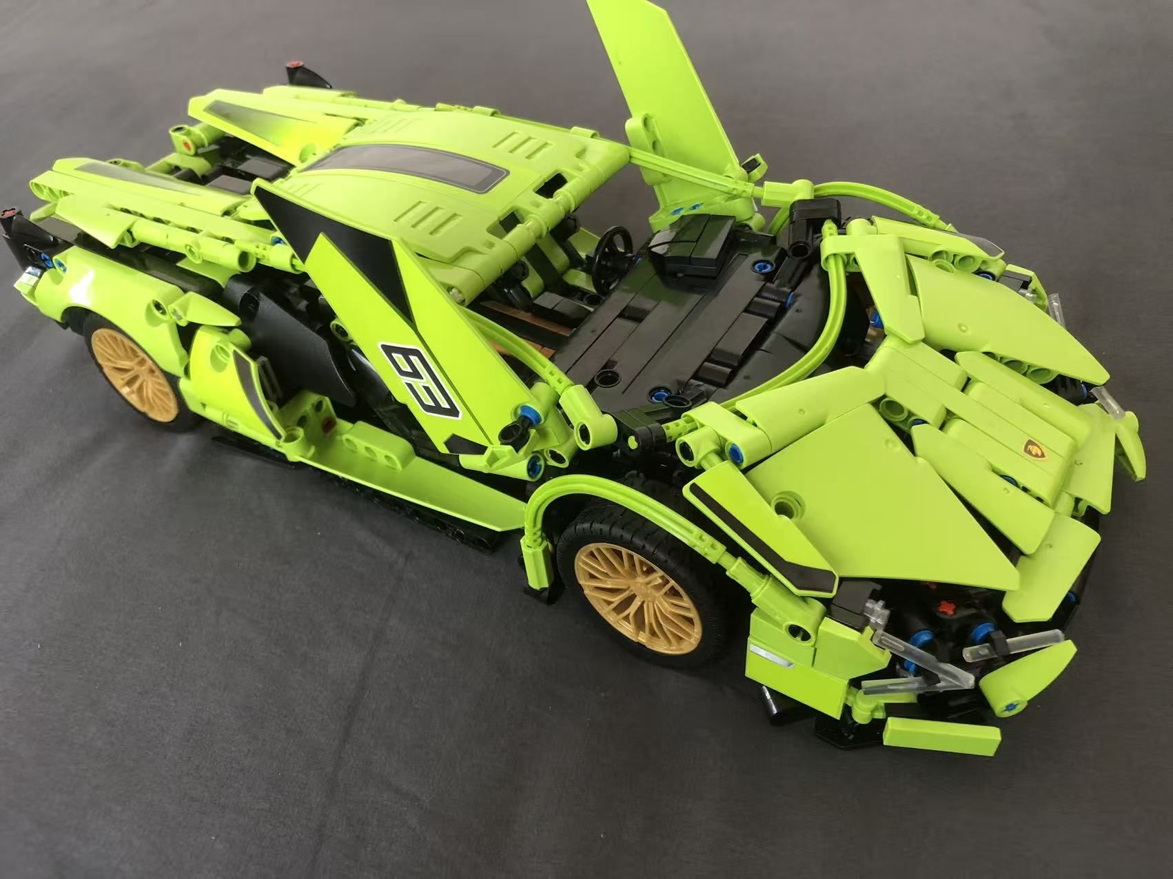 花了好 5 天时间,终于把这款兰博基尼赛博朋克积木拼完了。 零件咬合得很紧,拼的时候很扎实,不会松松垮垮。 拼好之后,超解压,成品细节拉满,还有剪刀门,真的太酷了,细节做得很到位。 摆在桌子上,看着就很有成就感,喜欢积木和跑车的朋友可以试试